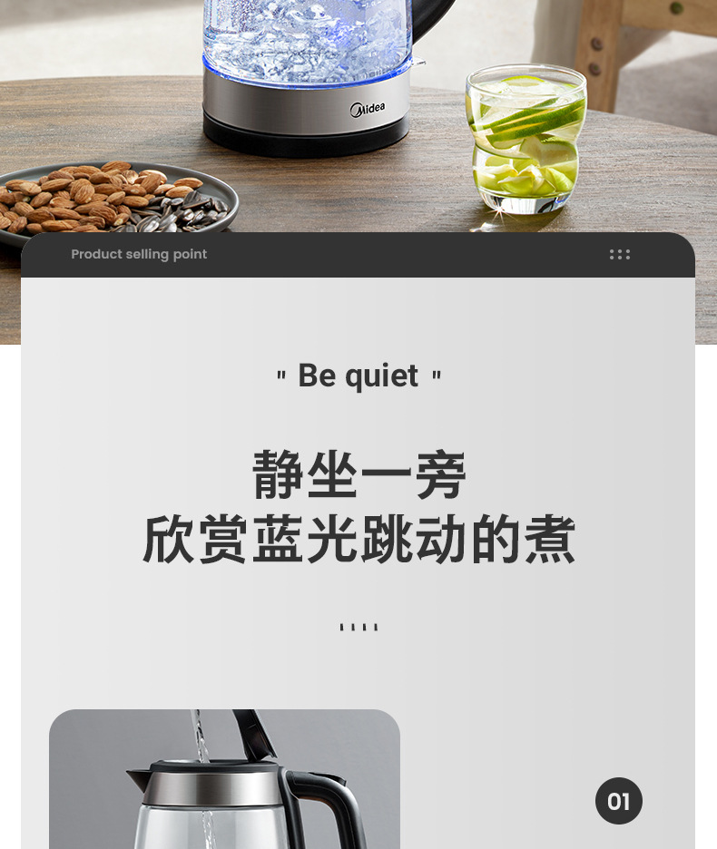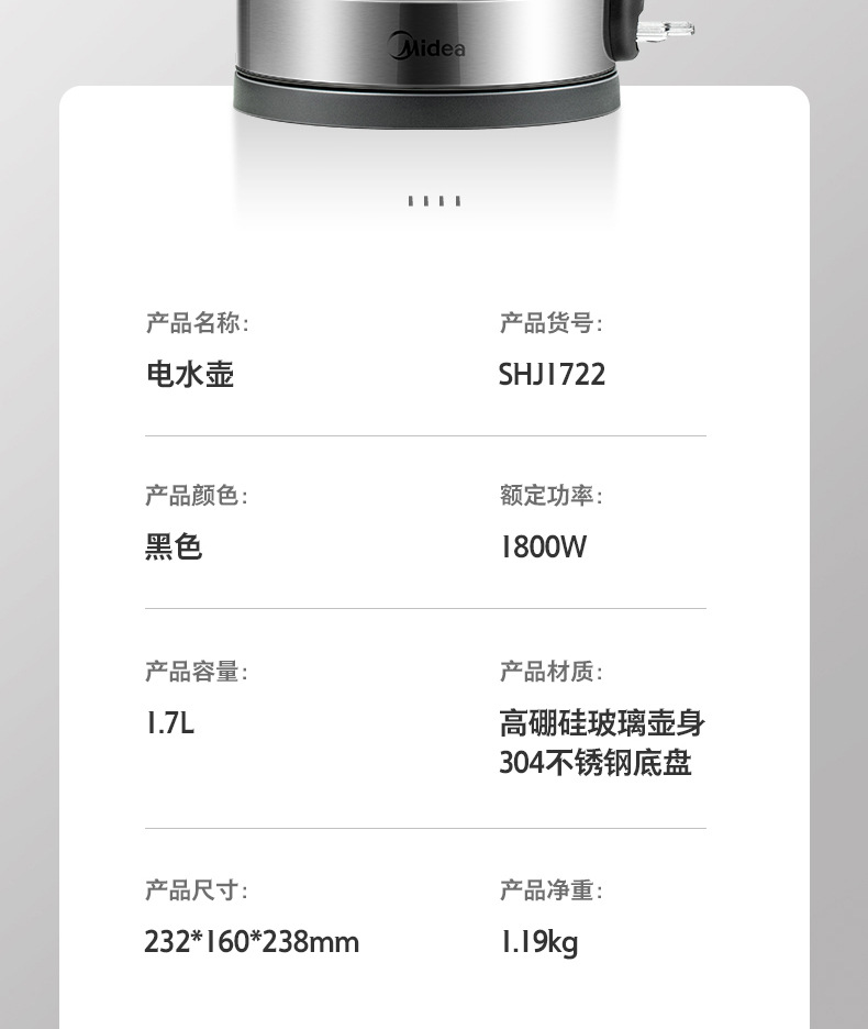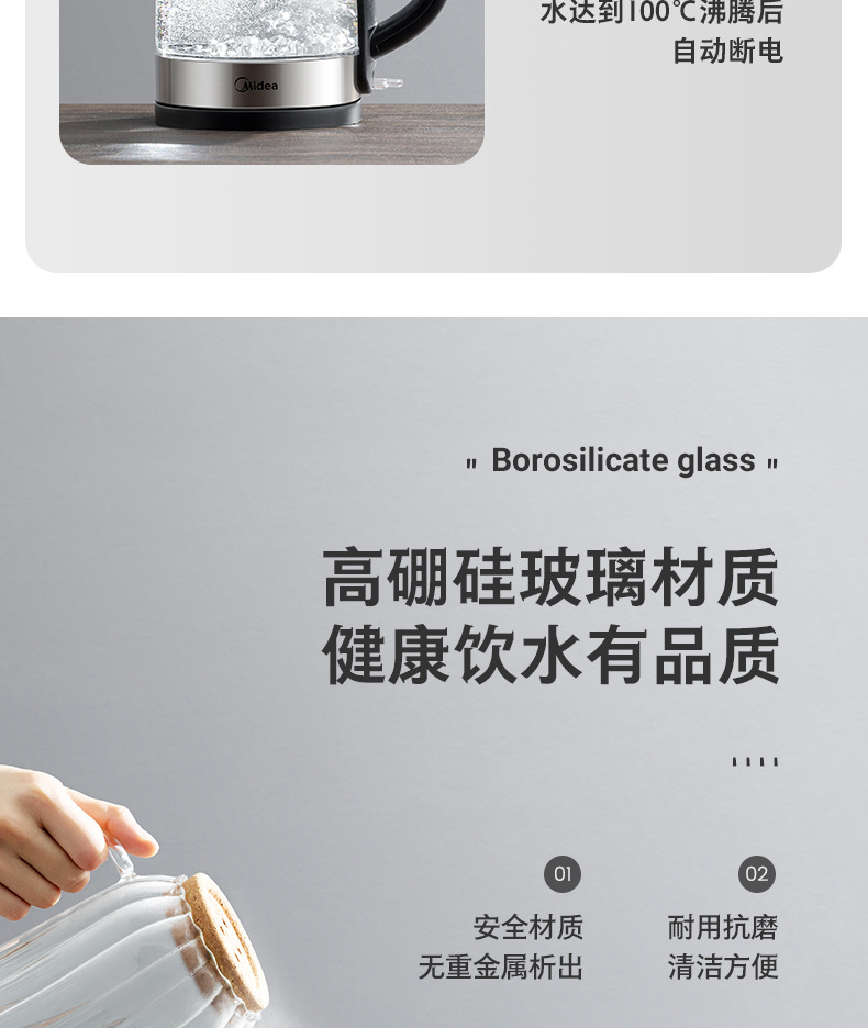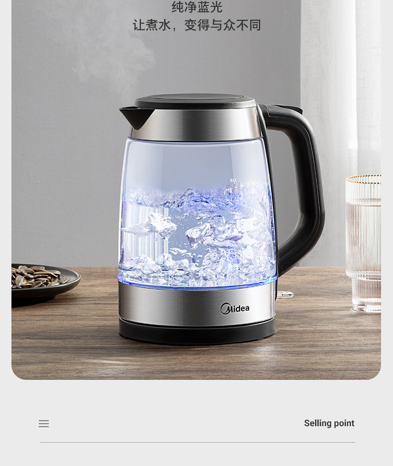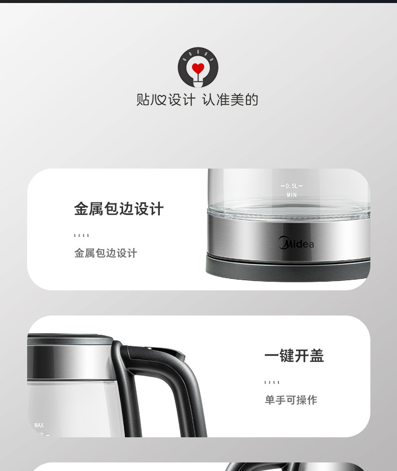 Midea 주전자 유리 전기 주전자 가정용 일정한 온도 차 보일러 사무실 기숙사 건강 냄비