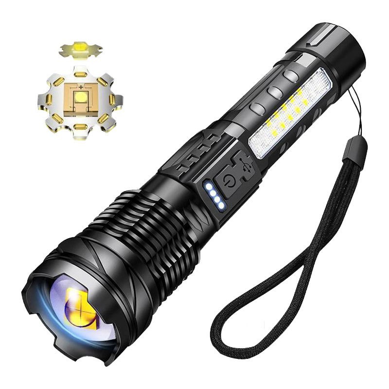 국경 간 새로운 손전등 강한 빛 야외 순찰 캠핑 usb 충전식 야외 조명 흰색 레이저 COB 손전등