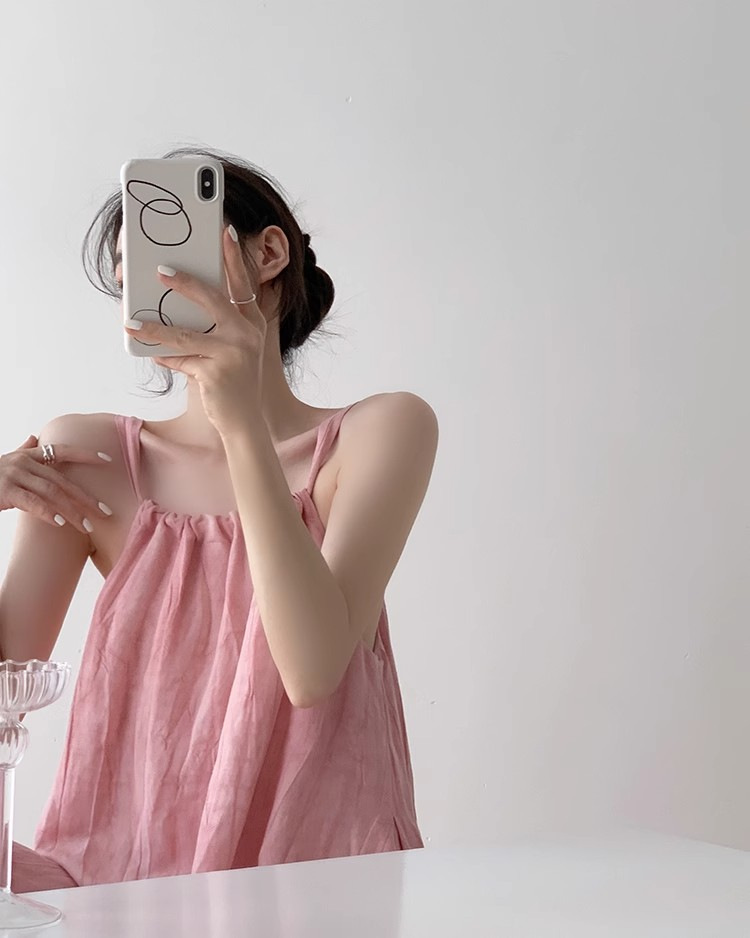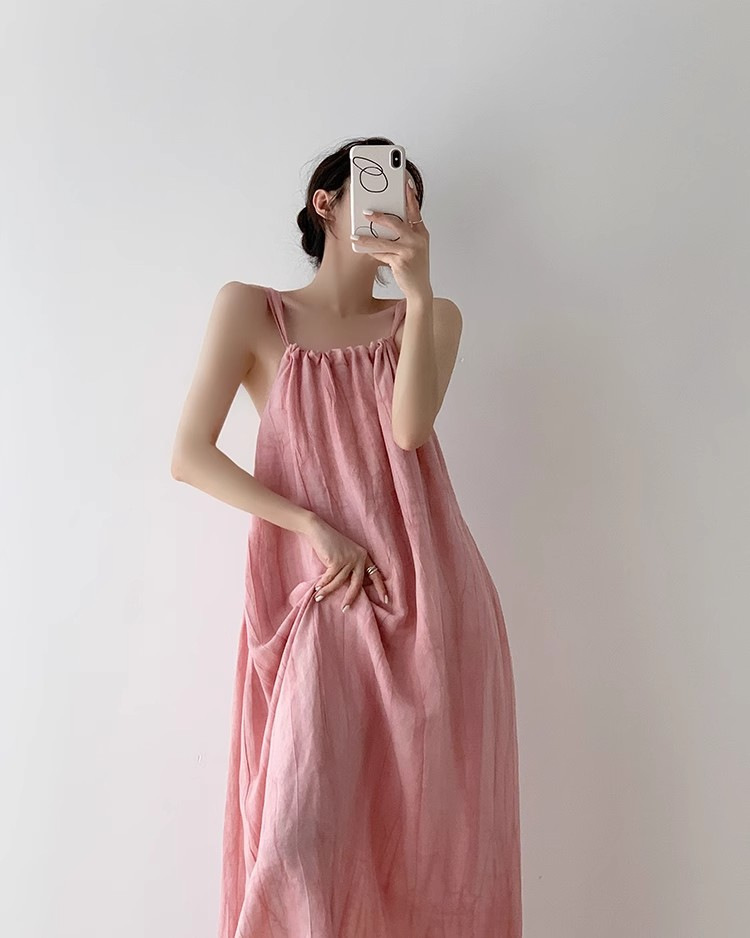 도파민 핑크 Sizzy 원피스 여성 여름 슬림 우아한 대형 스윙 스커트 민소매 해변 롱 스커트 휴가 슬립 스커트