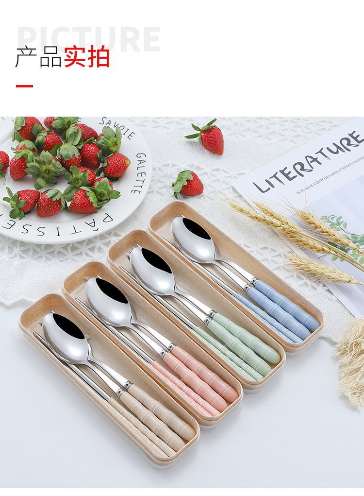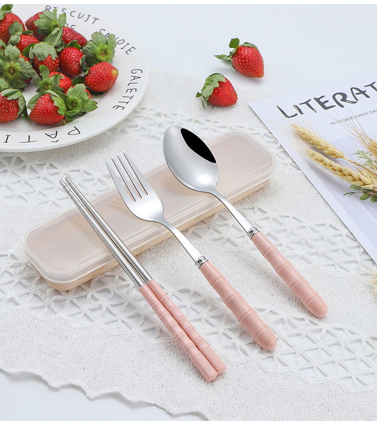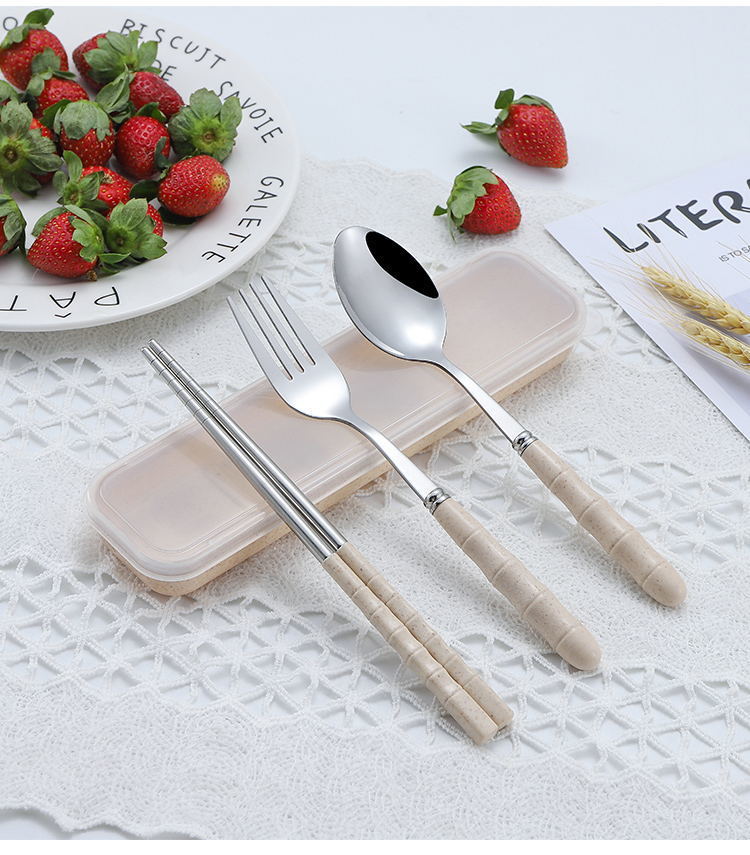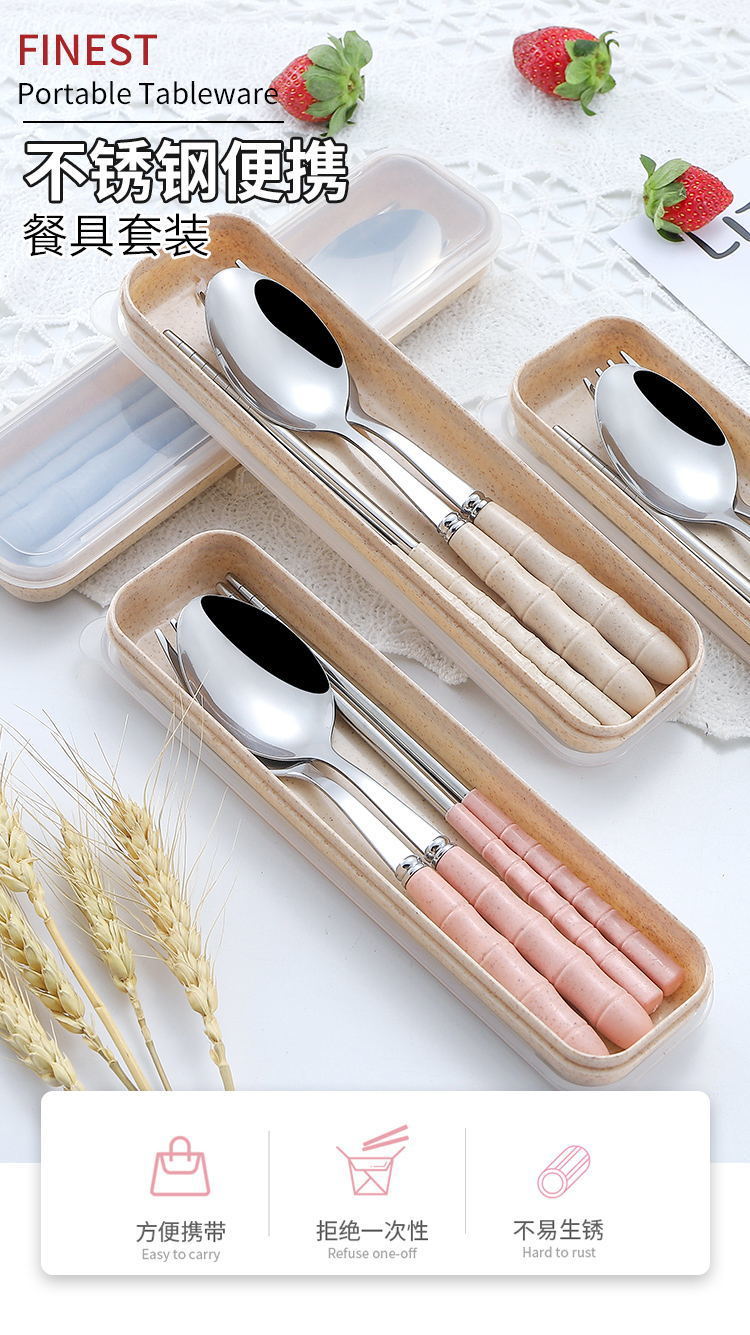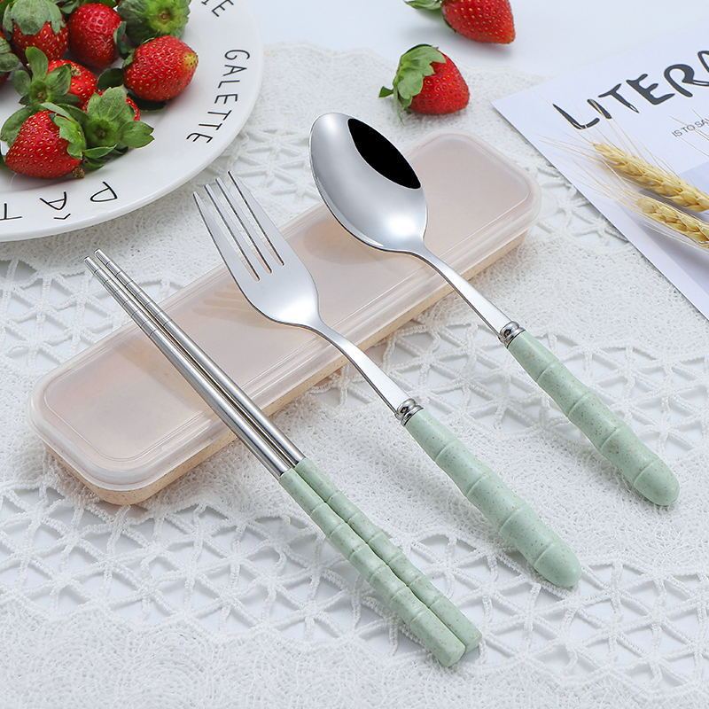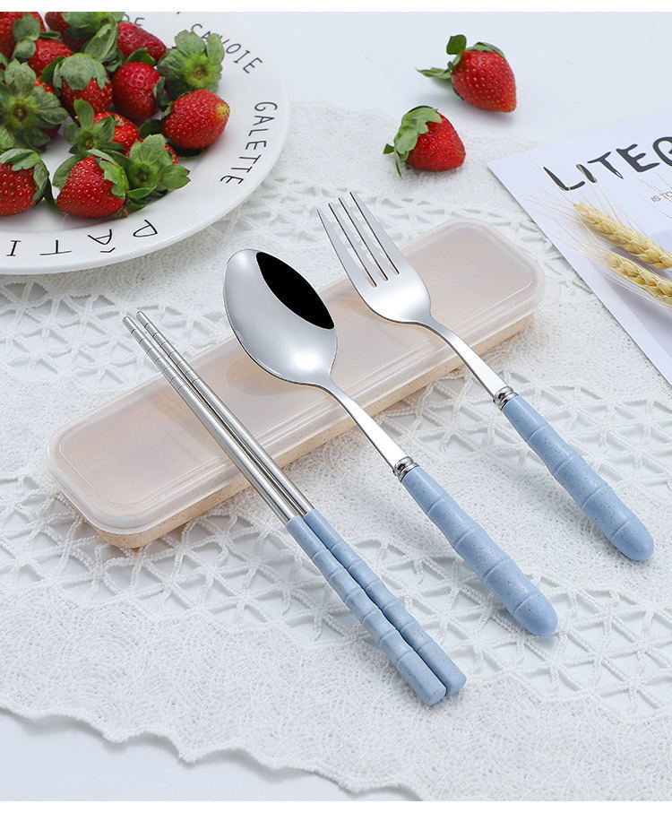 [3종세트] 스테인리스 밀짚 젓가락, 숟가락, 포크, 학생 성인 여행 수통 휴대용 식기
