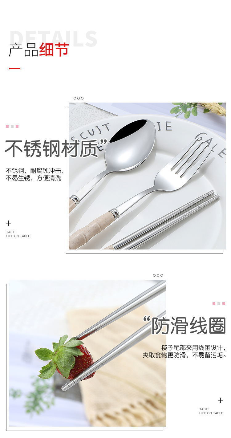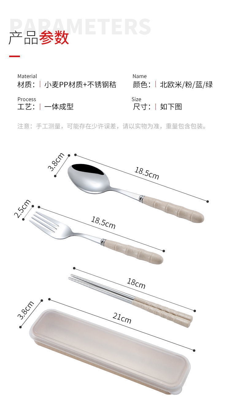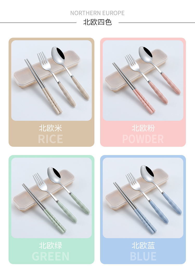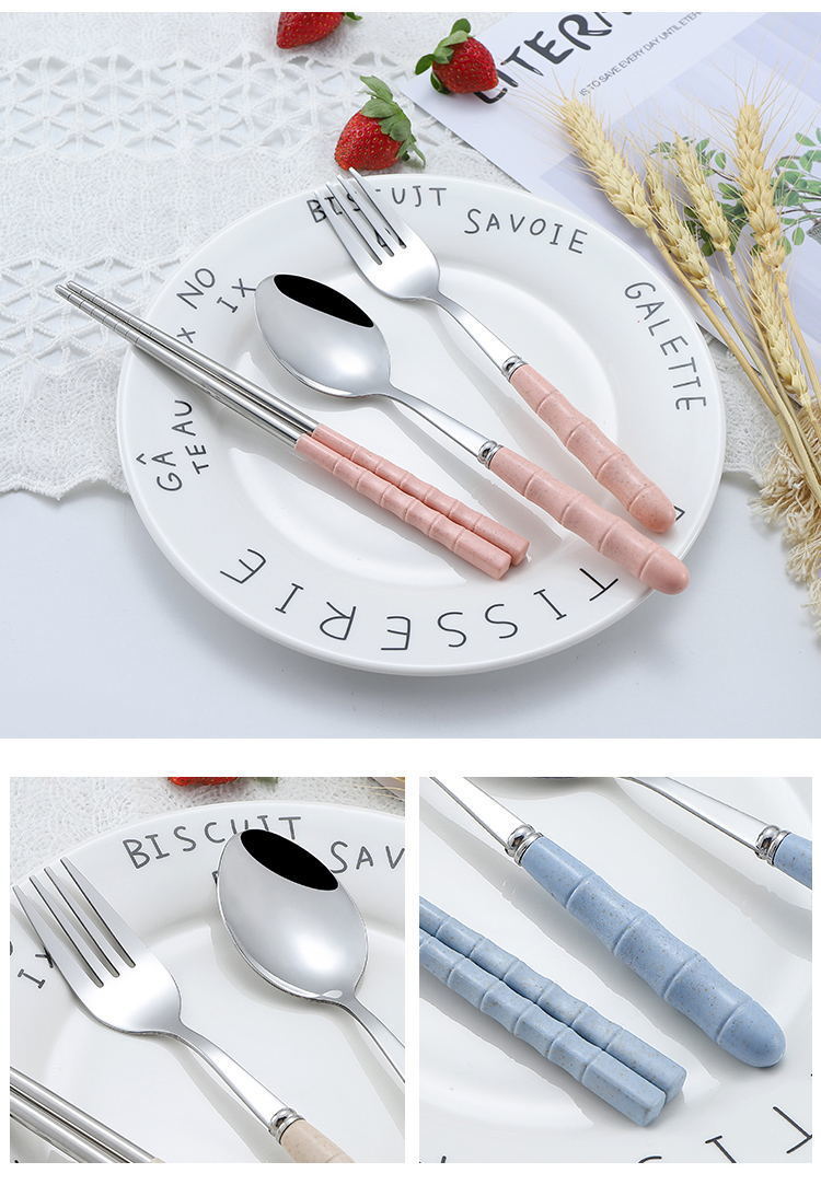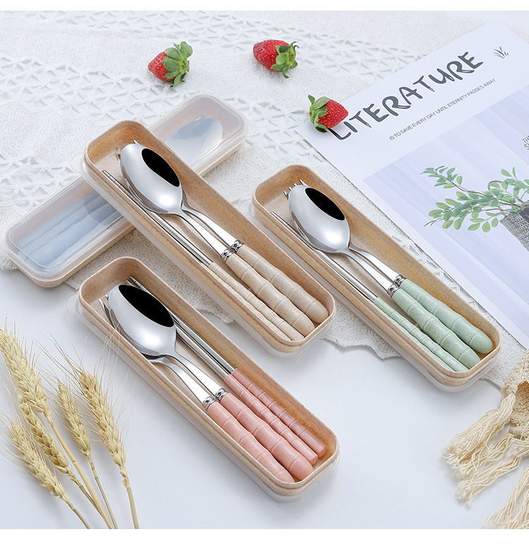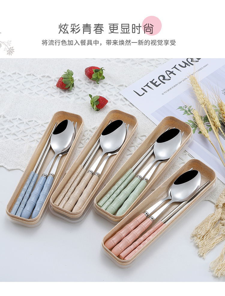 [3종세트] 스테인리스 밀짚 젓가락, 숟가락, 포크, 학생 성인 여행 수통 휴대용 식기