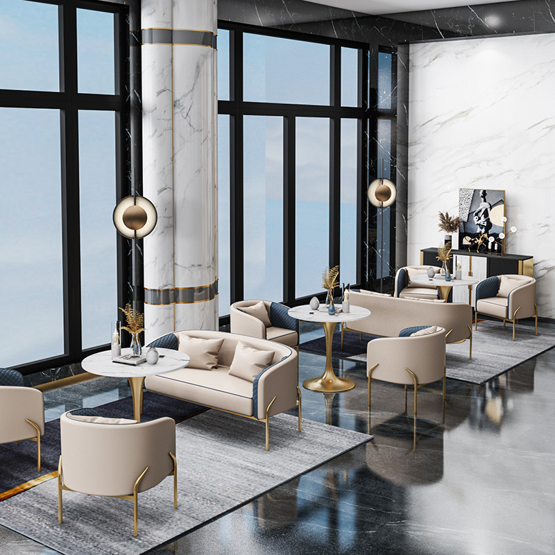 라이트 럭셔리 호텔 로비 클럽 티 하우스 리셉션 룸 사무실 소파 카드 시트 커피 숍 판매 사무실 협상 테이블 및 의자