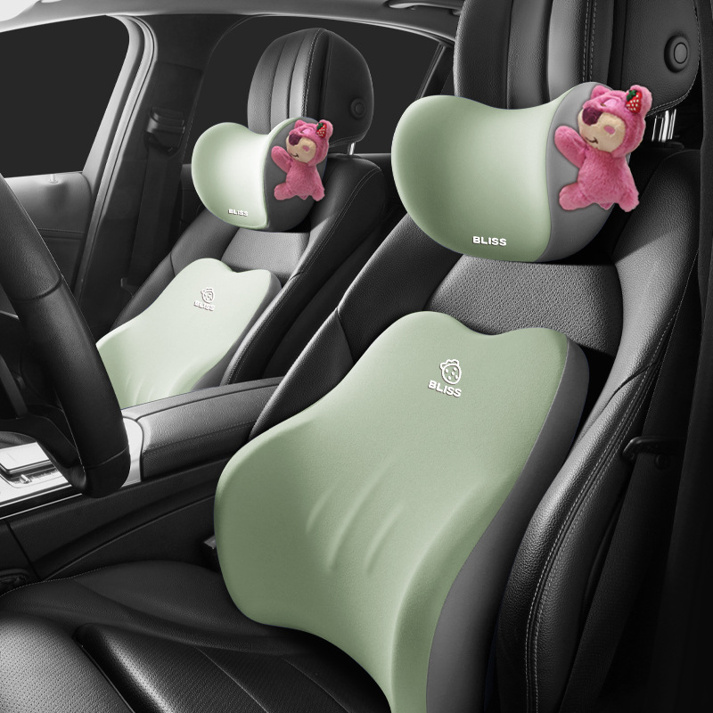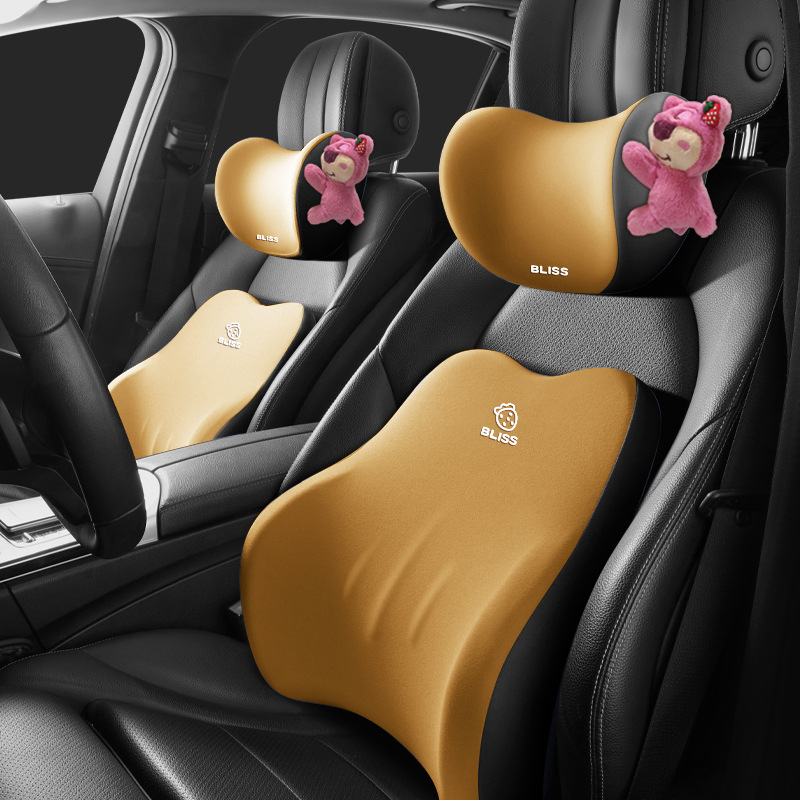 자동차 메모리폼 허리받침대 차량용 목베개 차량용품 시트 허리보호대 여성용 만화 목베개 경추보호