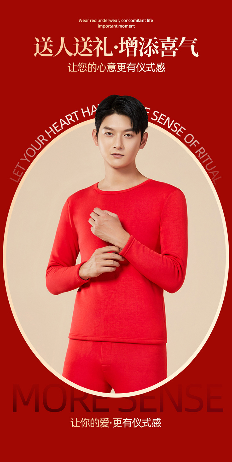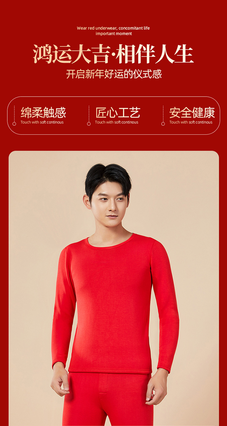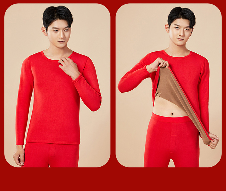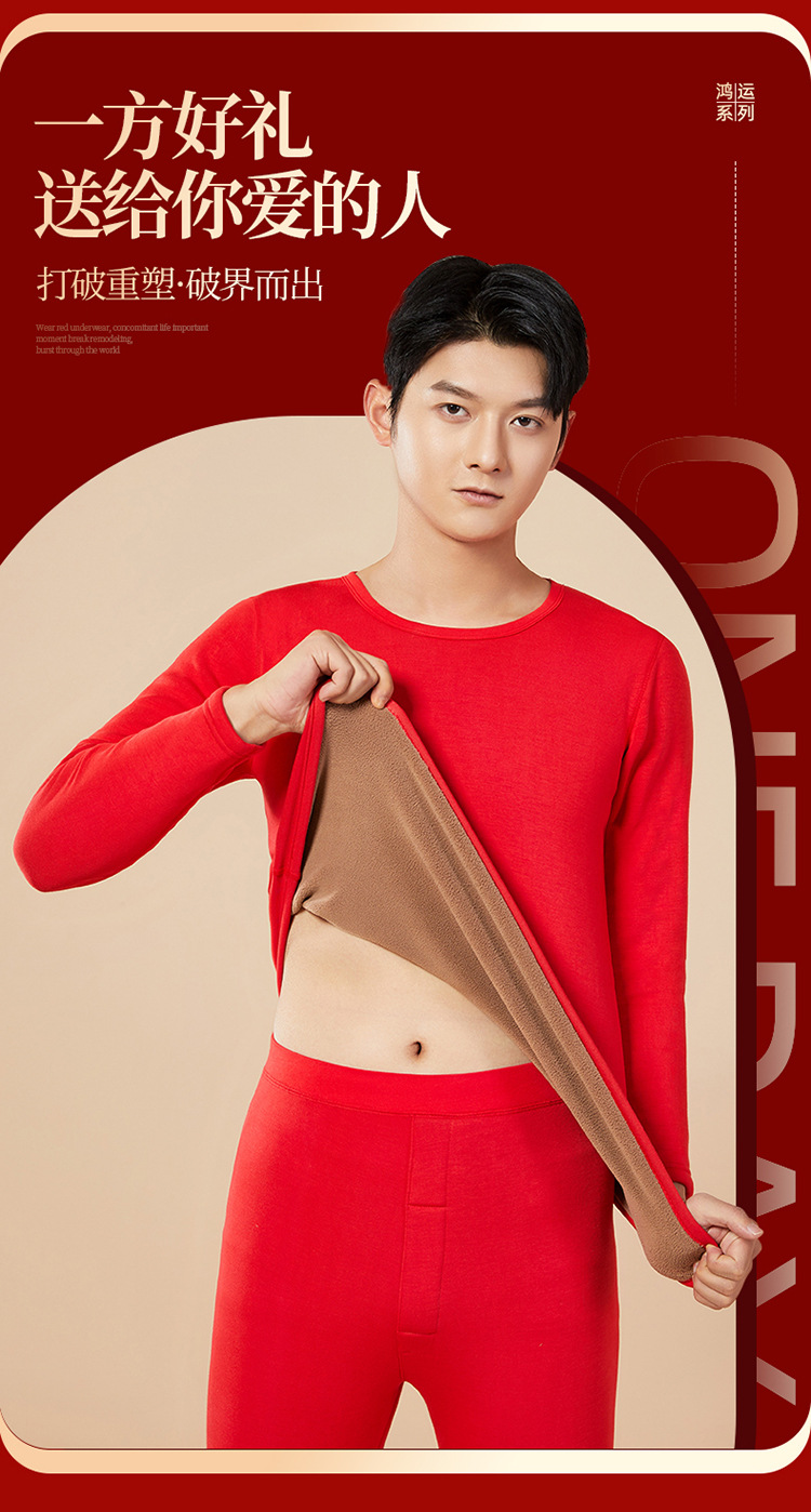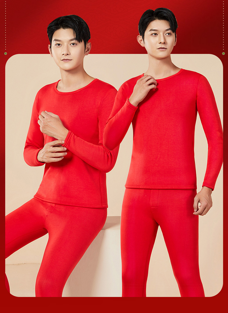 겨울철 남성용 면 보온 속옷, 두꺼운 벨벳 가을 옷과 긴 바지 세트, 큰 빨간색 결혼식과 생일
