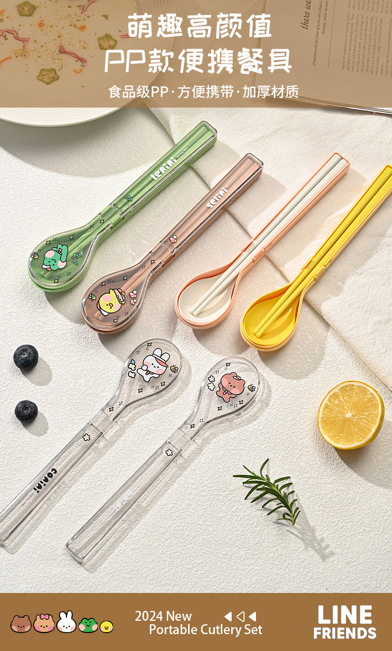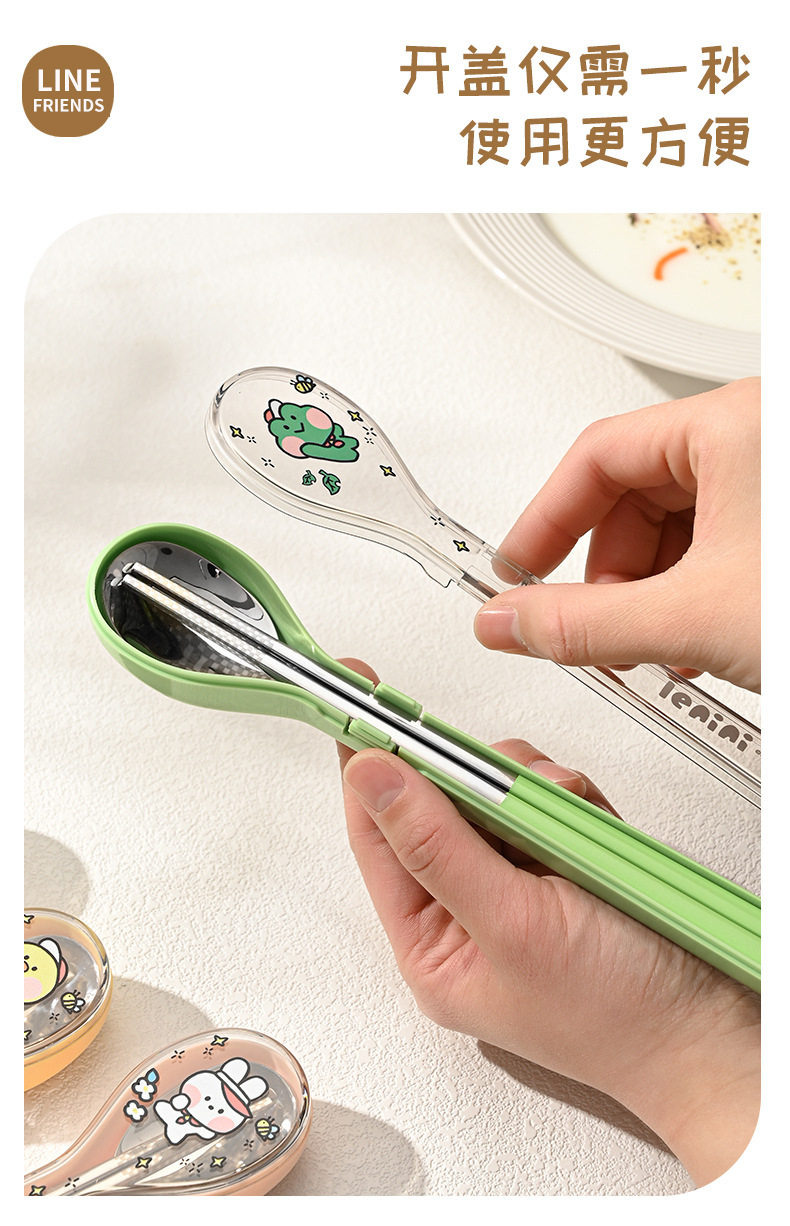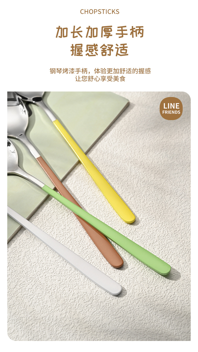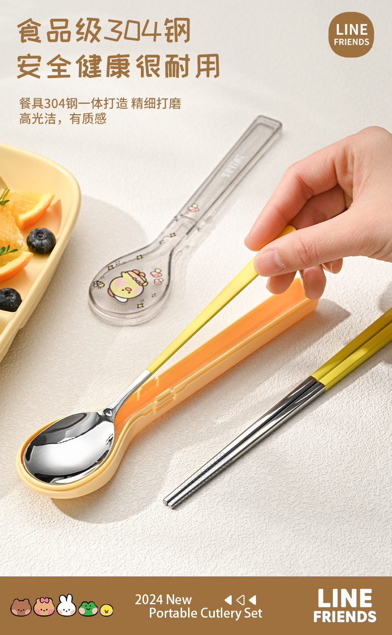 LINEFRIENDS 스테인레스 스틸 스푼 젓가락 휴대용 테이크 아웃 식기 학생 어린이 304 스푼 젓가락 세트