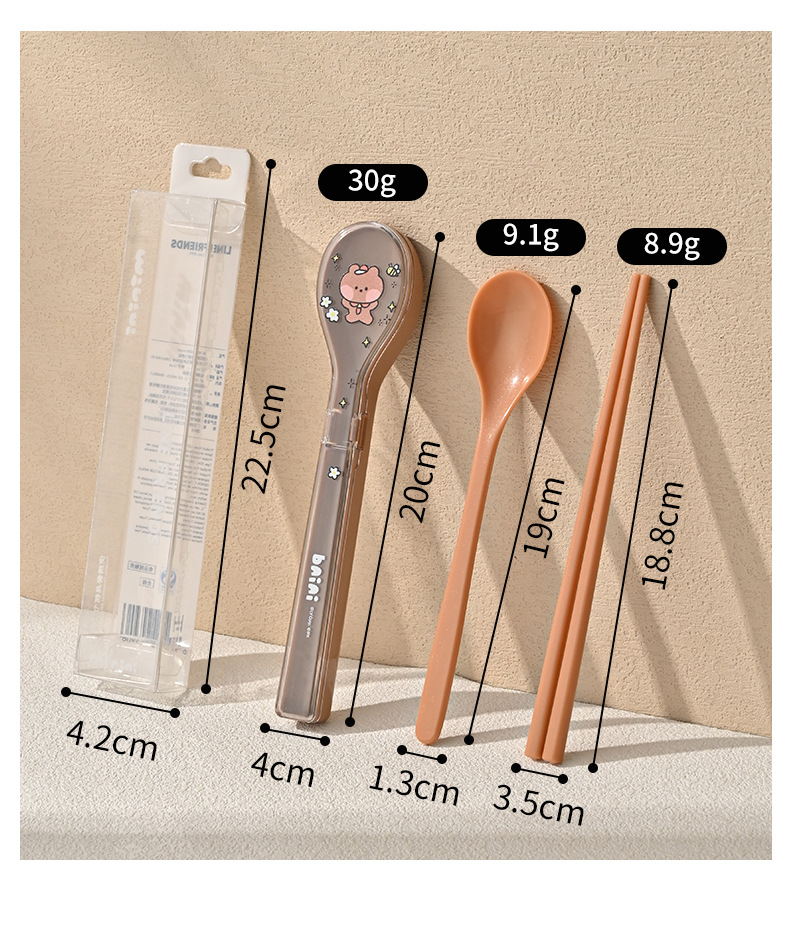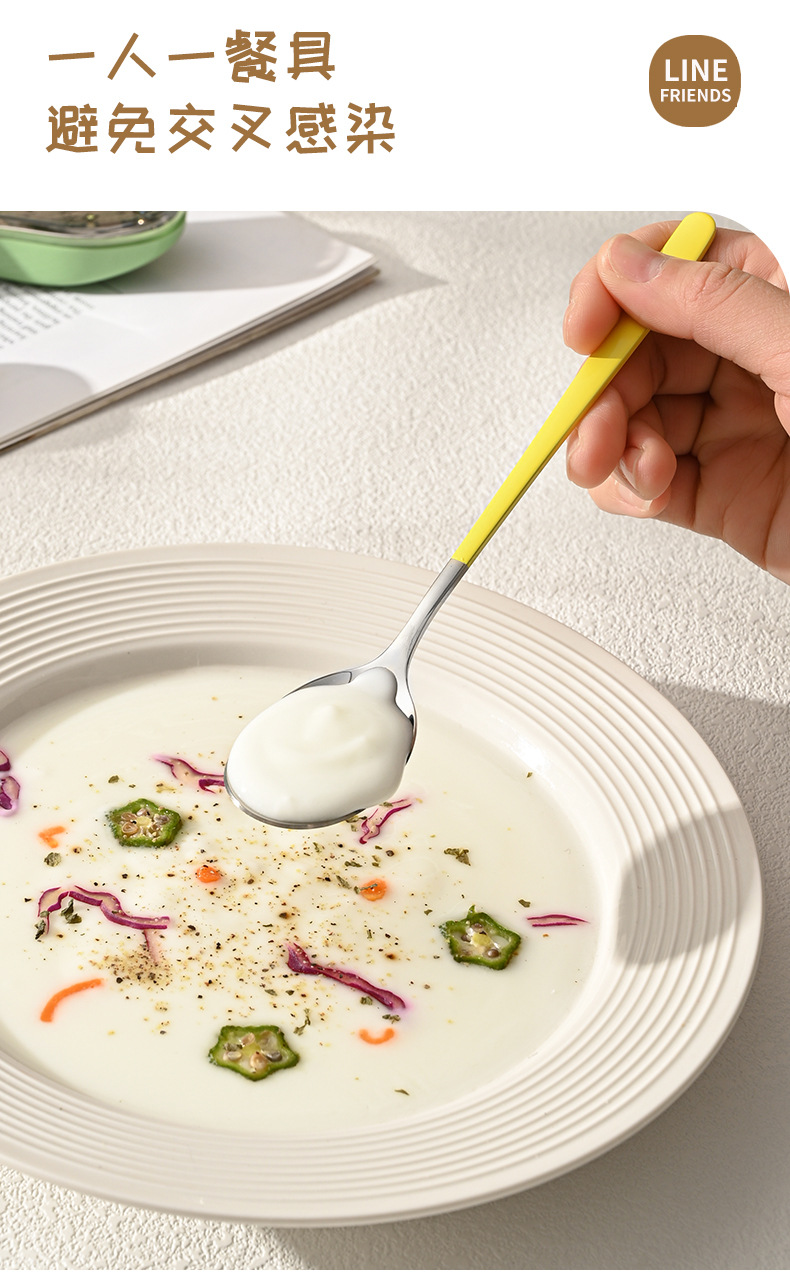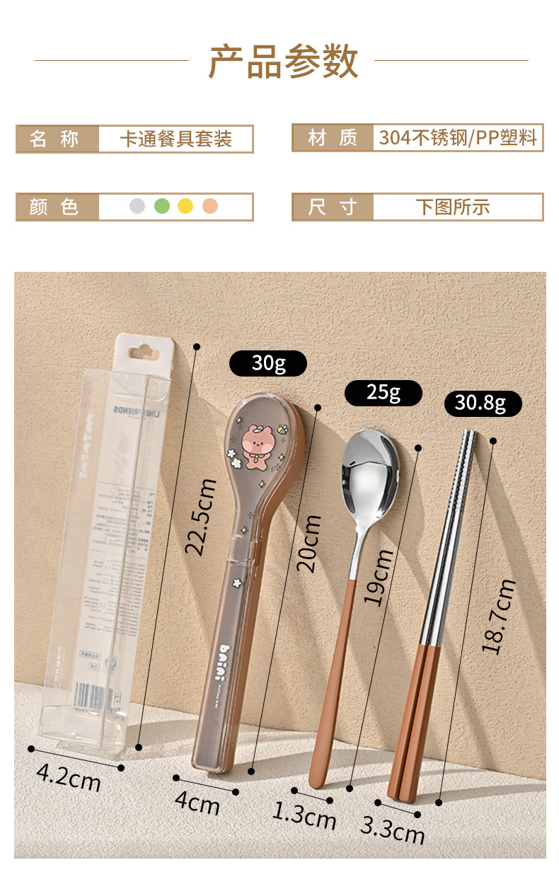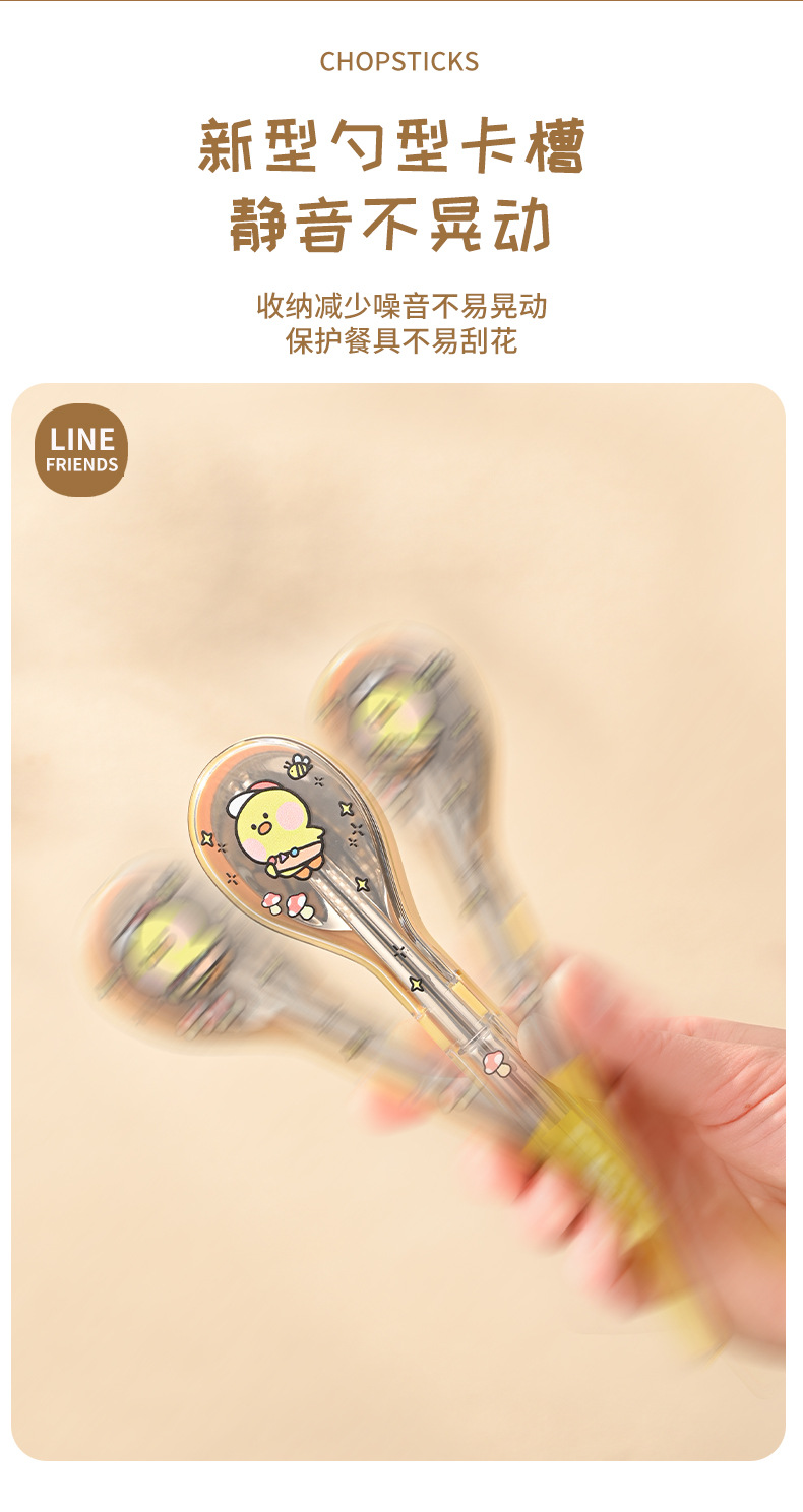 LINEFRIENDS 스테인레스 스틸 스푼 젓가락 휴대용 테이크 아웃 식기 학생 어린이 304 스푼 젓가락 세트
