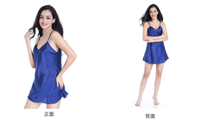 여성용 크로스보더 홈 잠옷, 여름 힙 스트랩, 새틴 루즈한 대형 브이넥, 섹시한 아름다운 등 가운, 짧은 스커트 포함