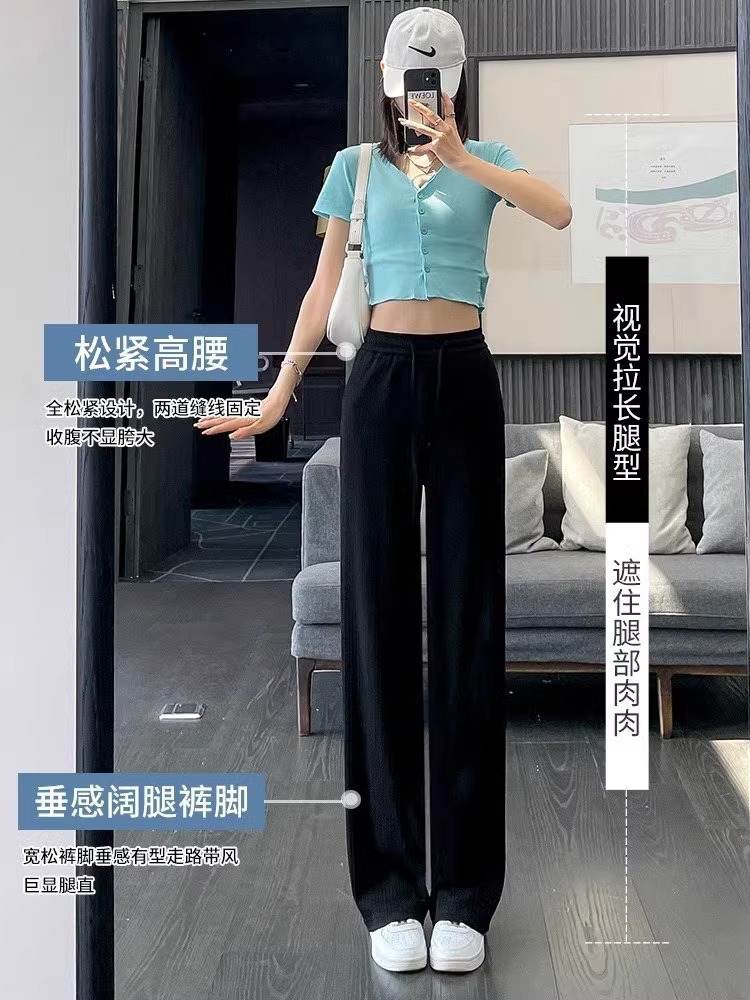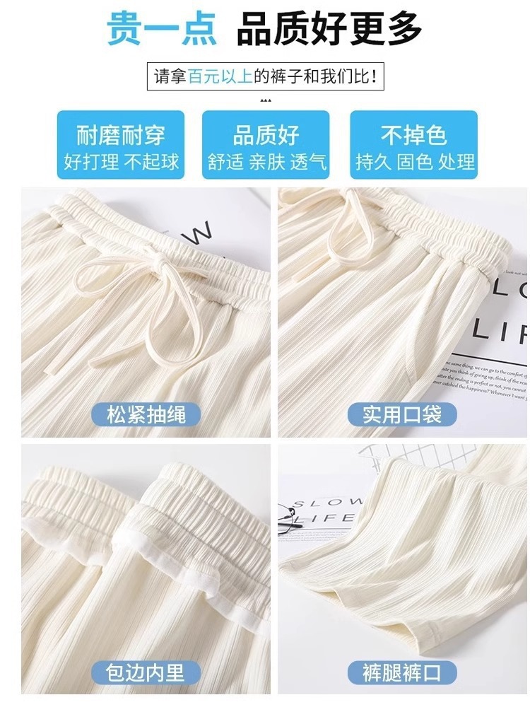 150.00kg 플러스 사이즈 통통녀 아이스 실크 넓은 다리 바지 여성 여름 얇은 높은 허리 엉덩이 덮음 좁은 슬림 선스크린 캐주얼 바지