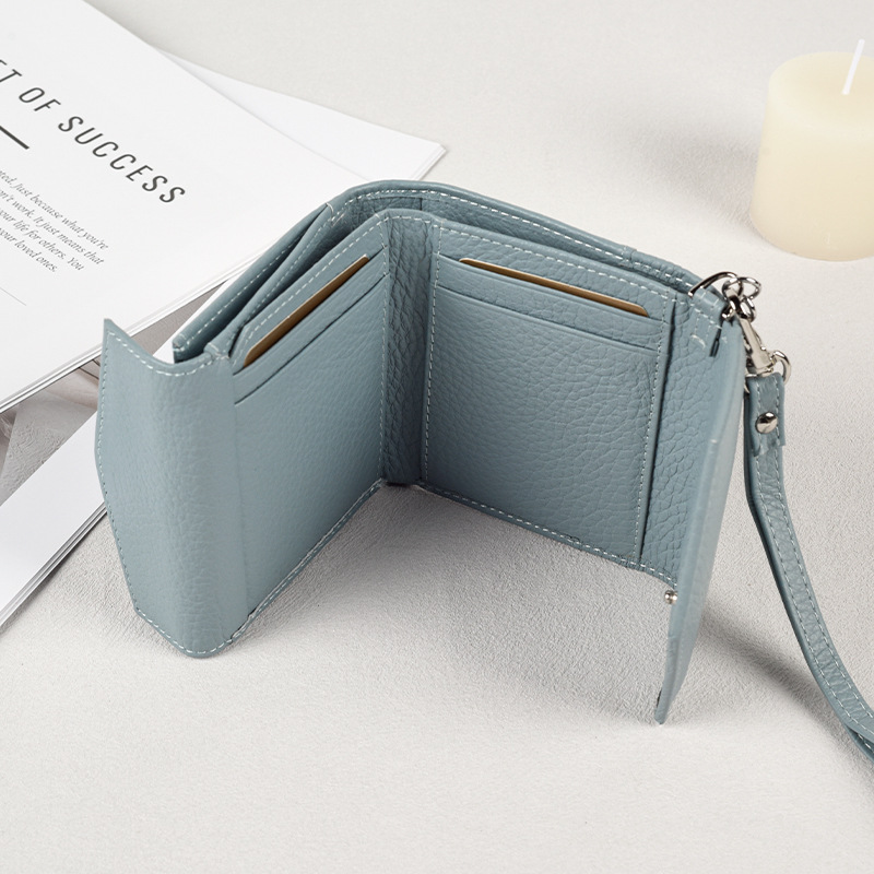여성 정품 가죽 짧은 카우보이 지갑 다기능 손목 스트랩 카드 홀더 동전 지갑 짧은 클립 동전 슬롯 작은 지갑