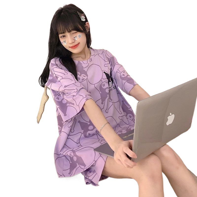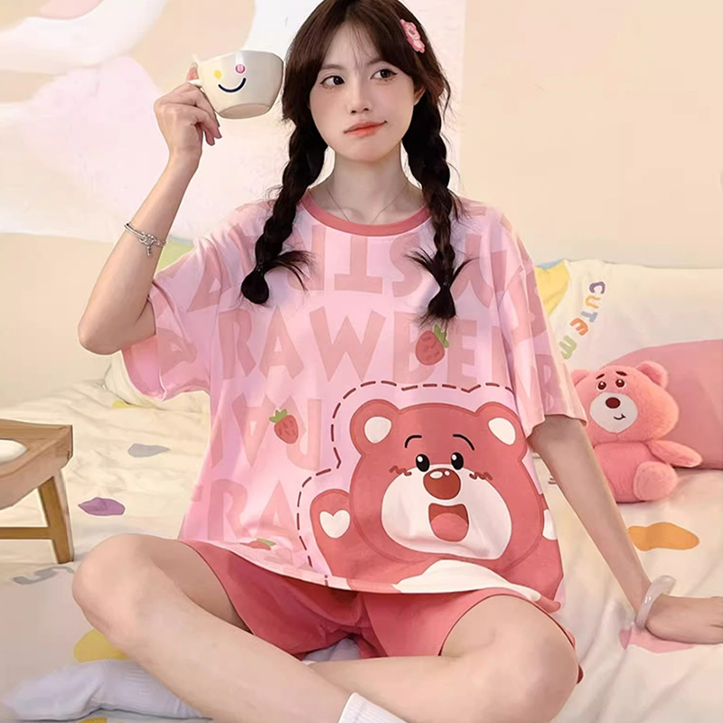 잠옷 여성 여름 2025 새로운 반팔 귀여운 만화 플러스 지방 플러스 사이즈 느슨한 얇은 홈 옷 투피스 세트
