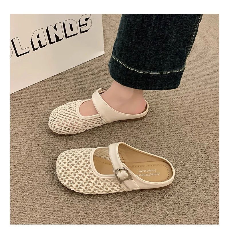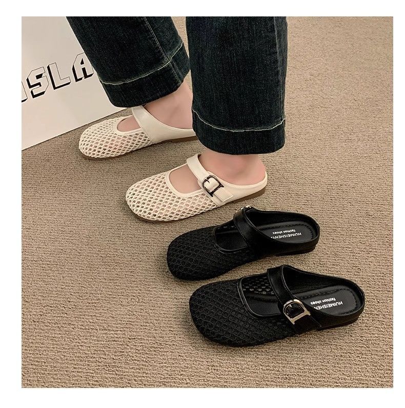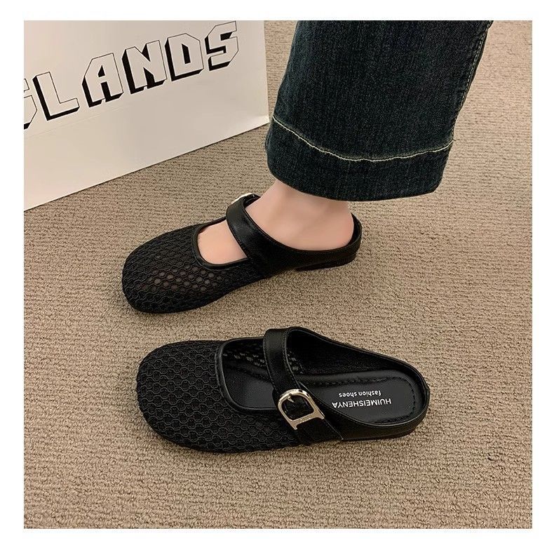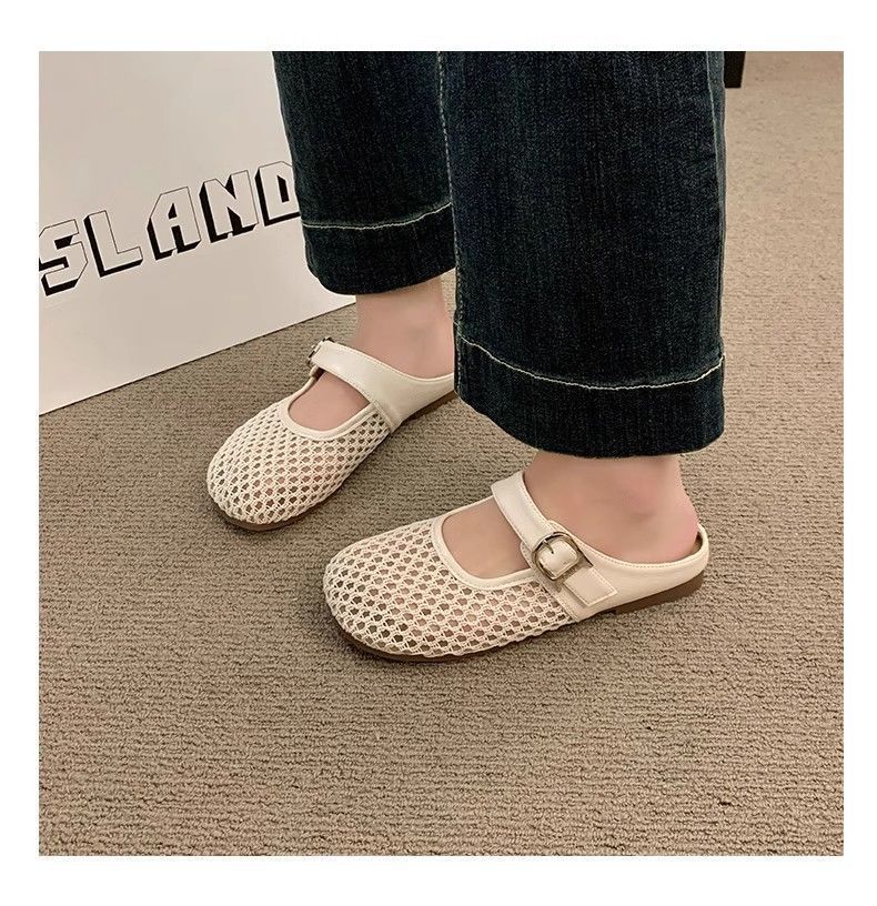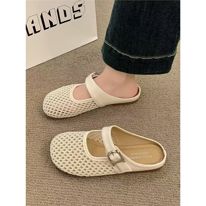 인터넷 연예인 할로우 아웃 샌들 스커트 2025 여름 새로운 핫 스타일 플랫 메쉬 하프 슬리퍼 Ins 통기성 Baotou 슬리퍼