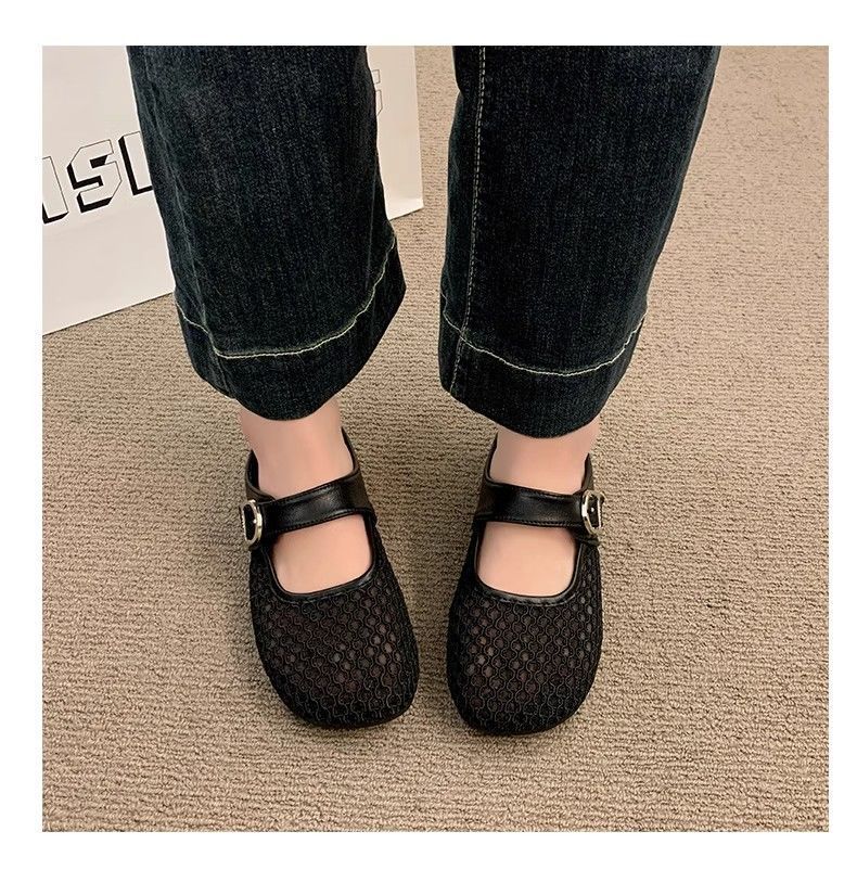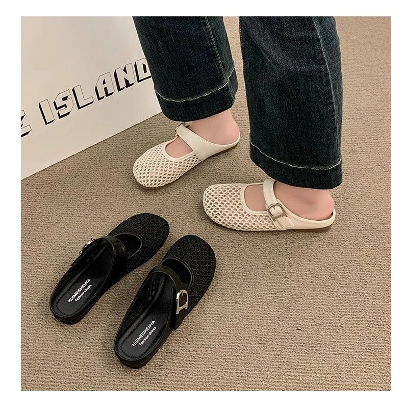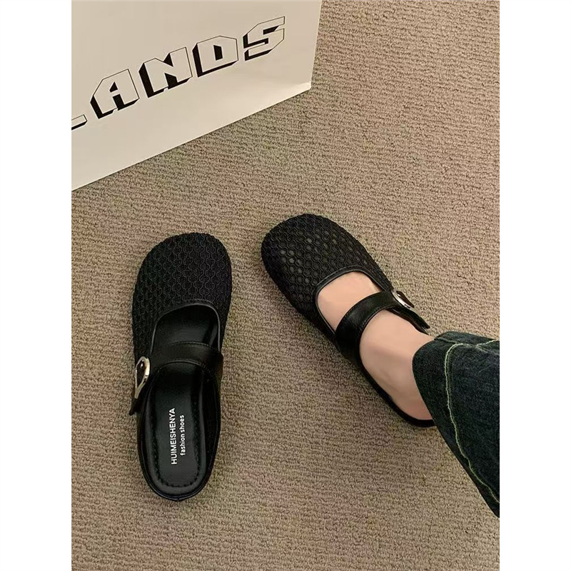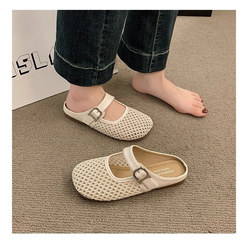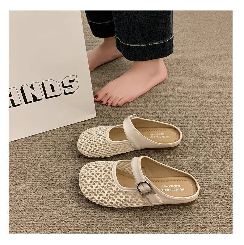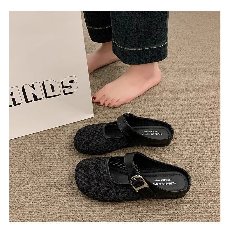 인터넷 연예인 할로우 아웃 샌들 스커트 2025 여름 새로운 핫 스타일 플랫 메쉬 하프 슬리퍼 Ins 통기성 Baotou 슬리퍼