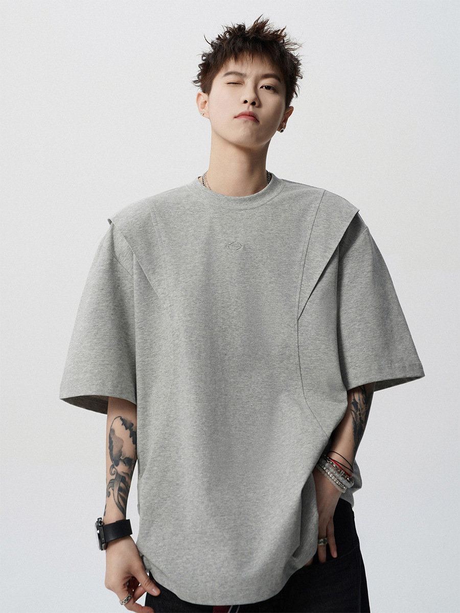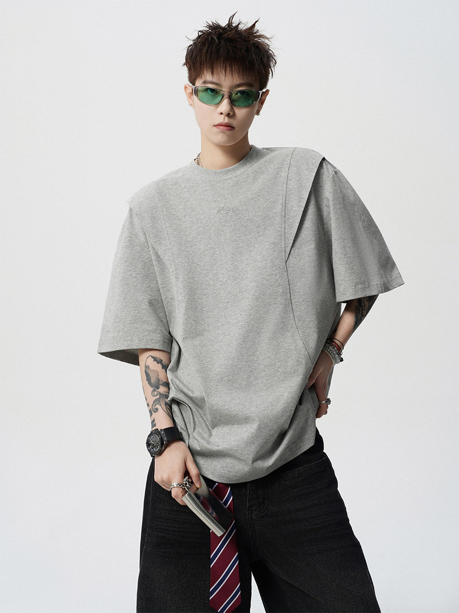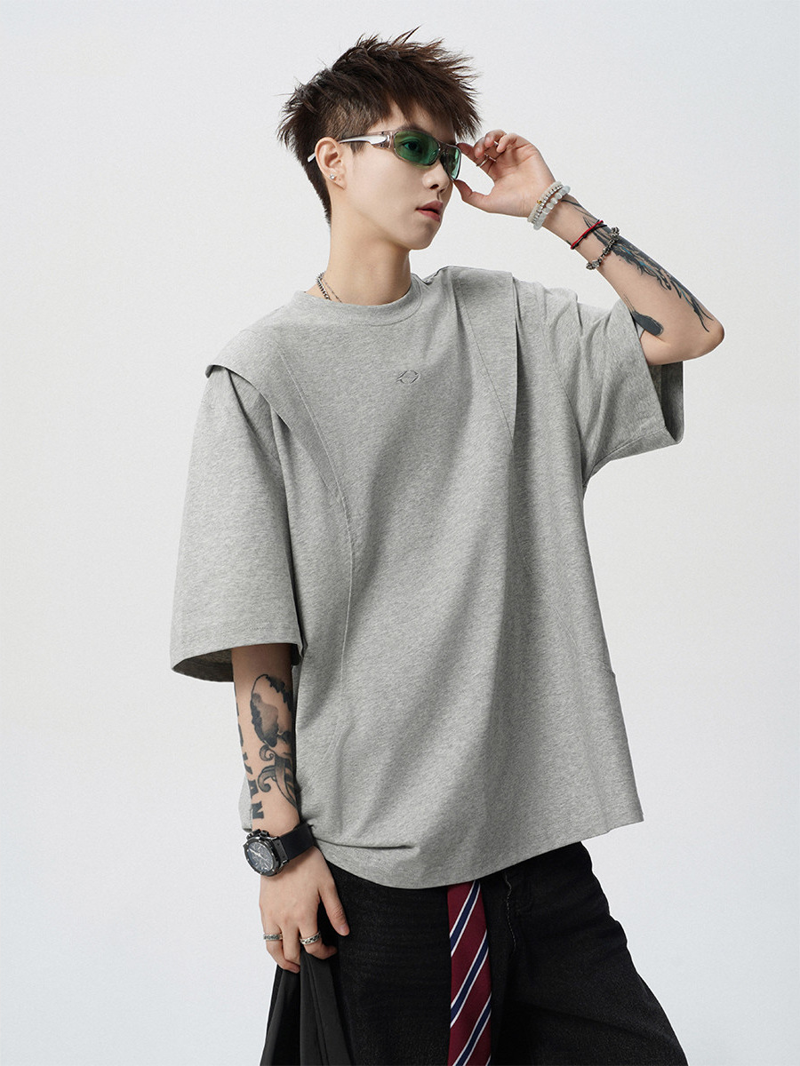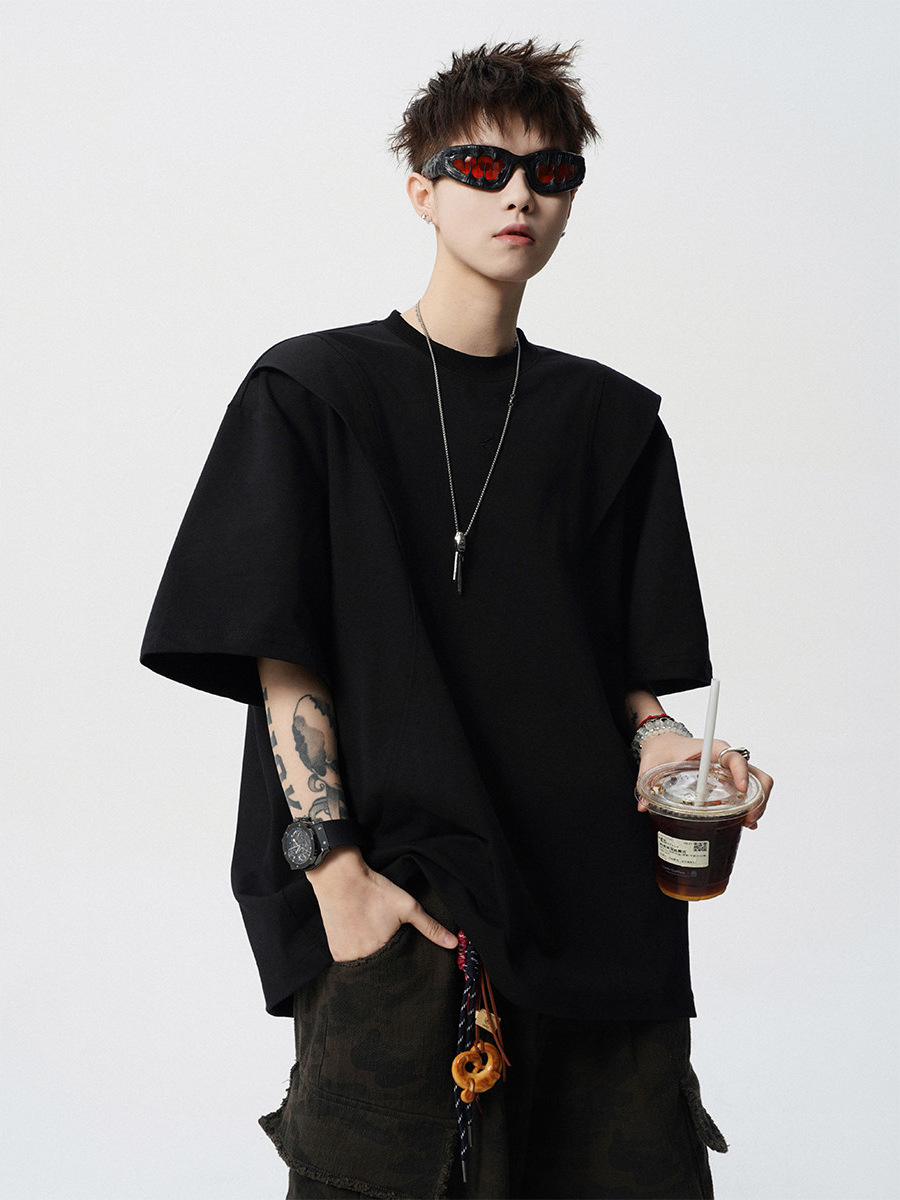 루즈 리프 컷 반팔 티셔츠 남성 여름 아메리칸 스타일 하이 스트리트 해체 크루 넥 풀오버 트렌디 브랜드 디자인 센스 루즈 티셔츠