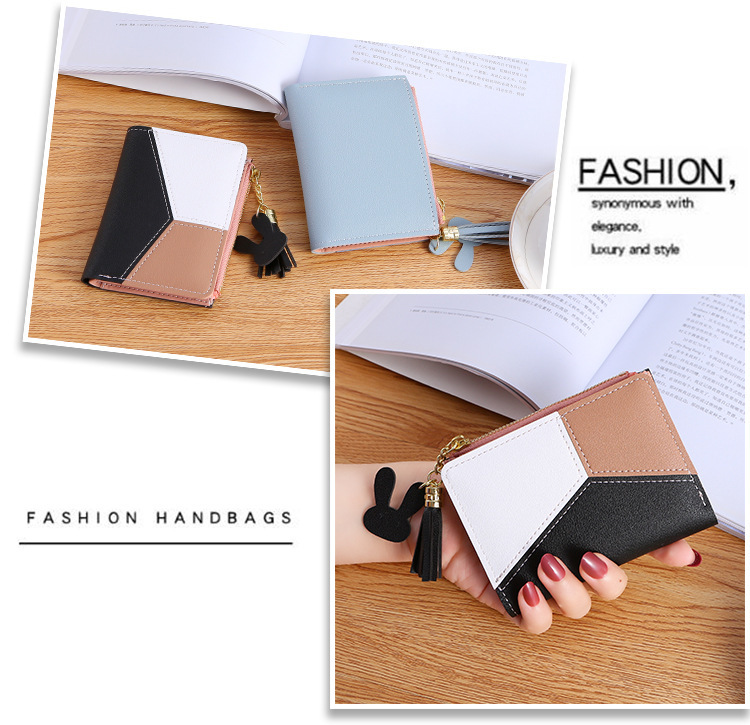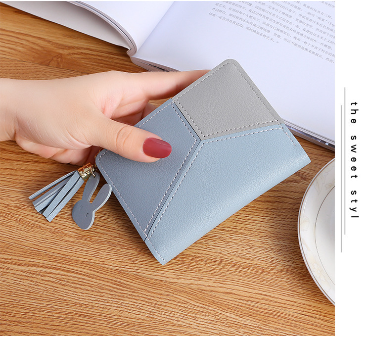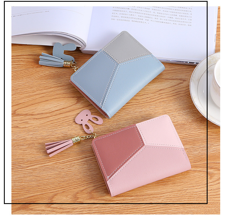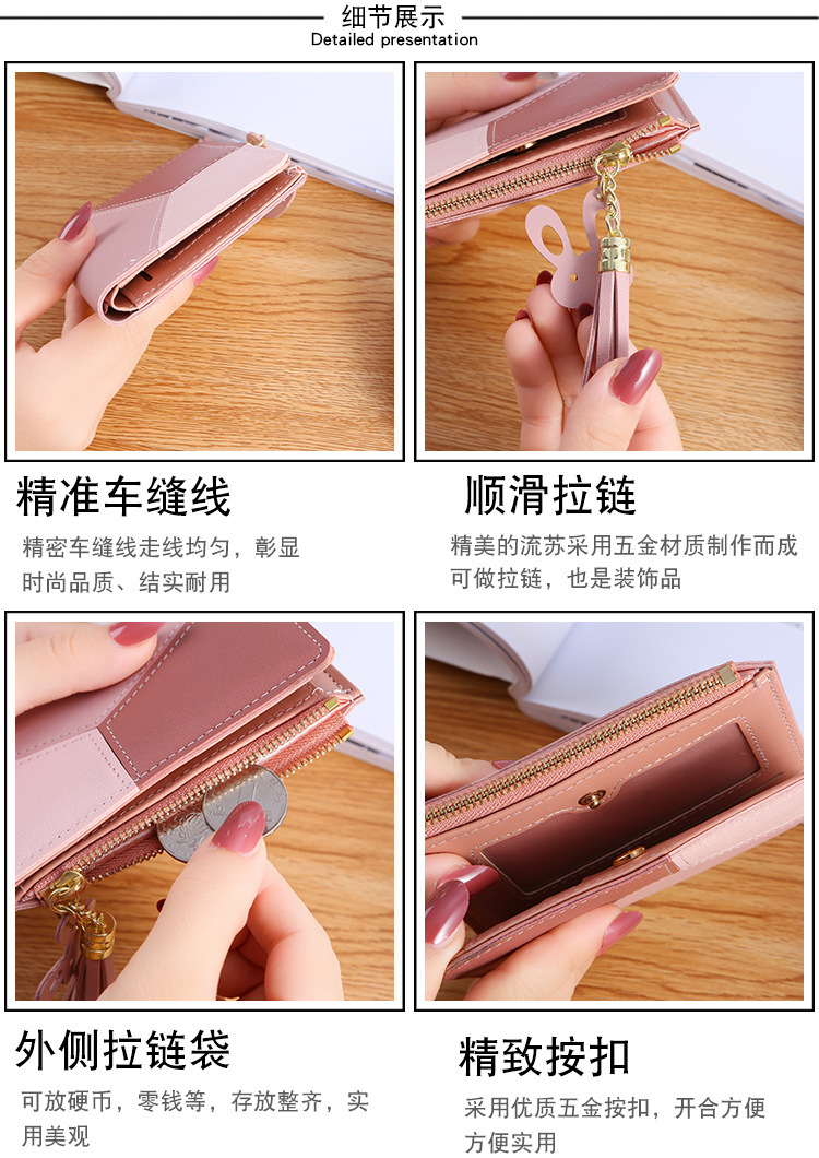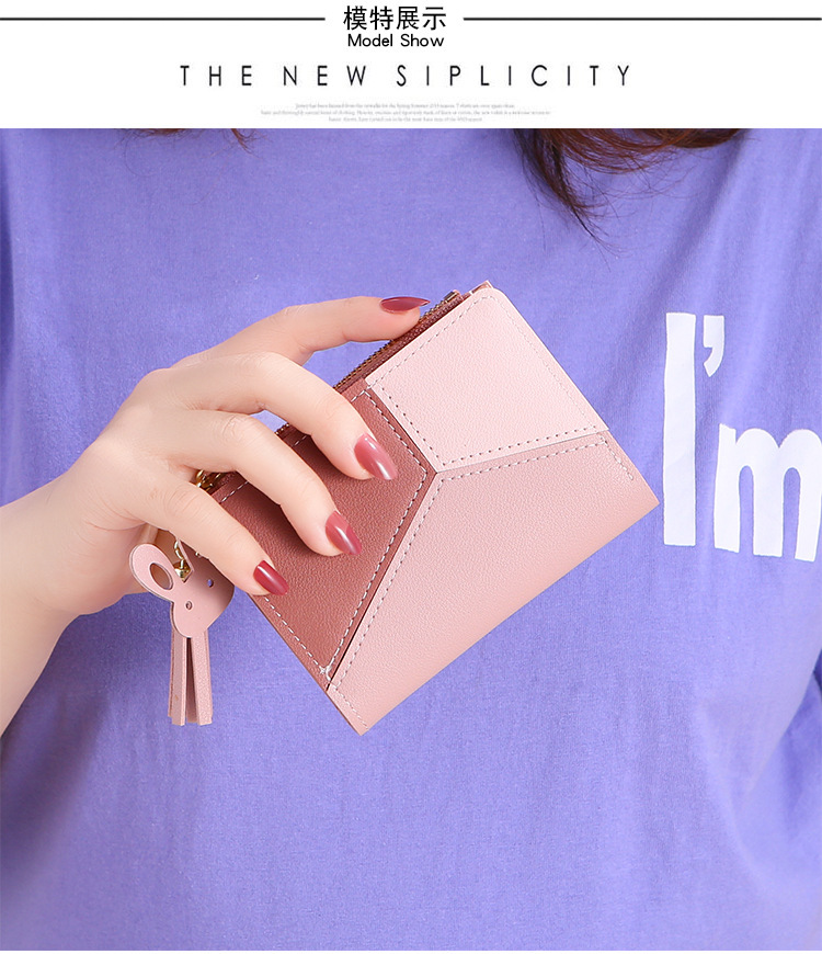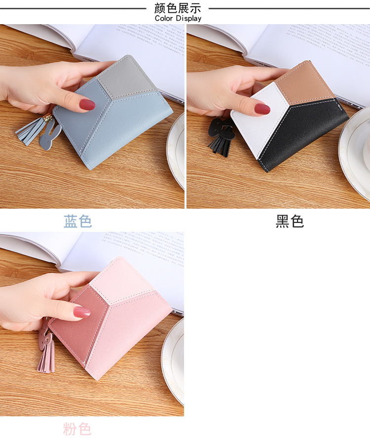 여자 지갑 술 짧은 작은 지갑 한국식 높은 가치 올매치 바느질 패션 작은 지갑 다기능 카드 홀더
