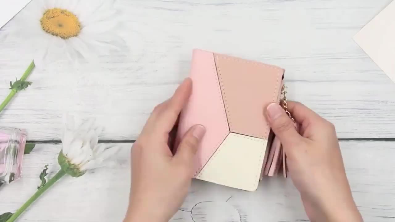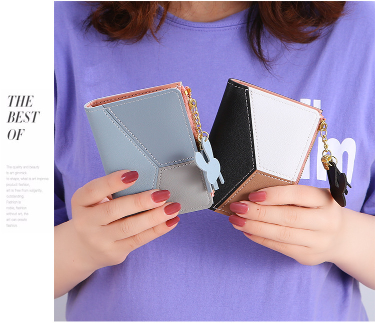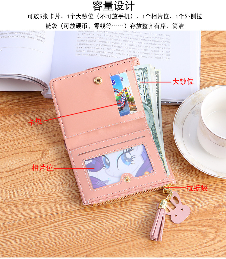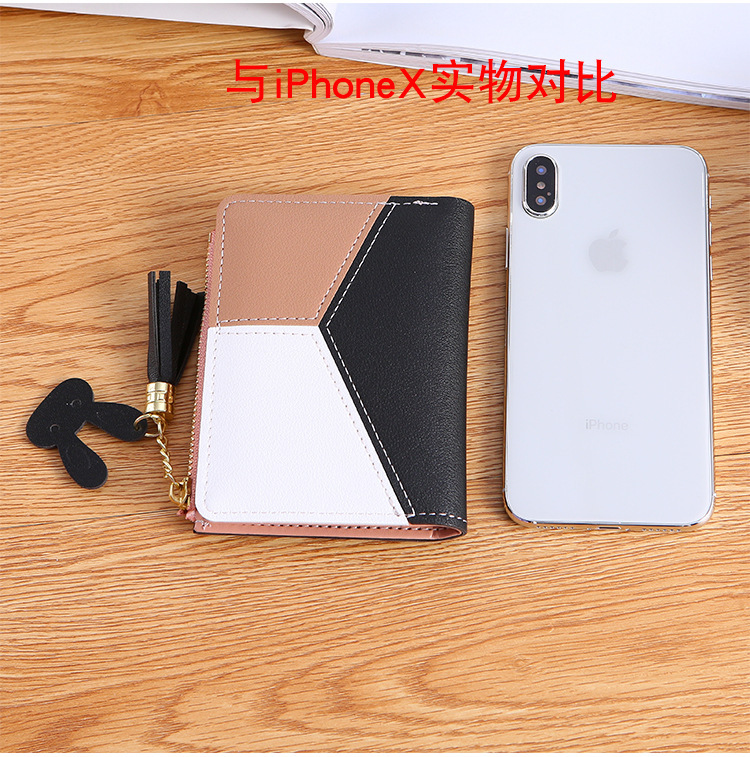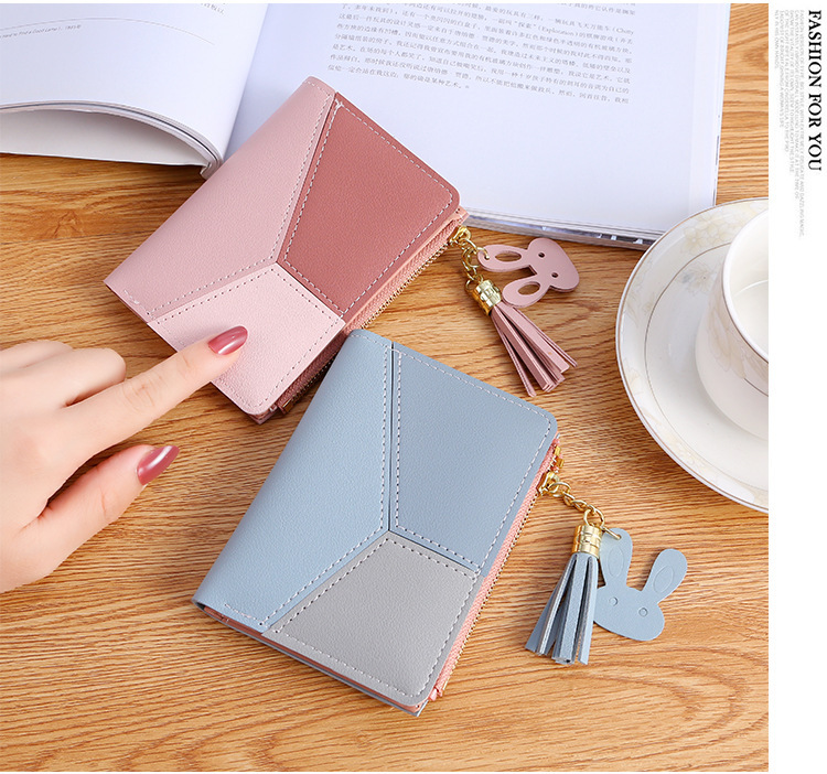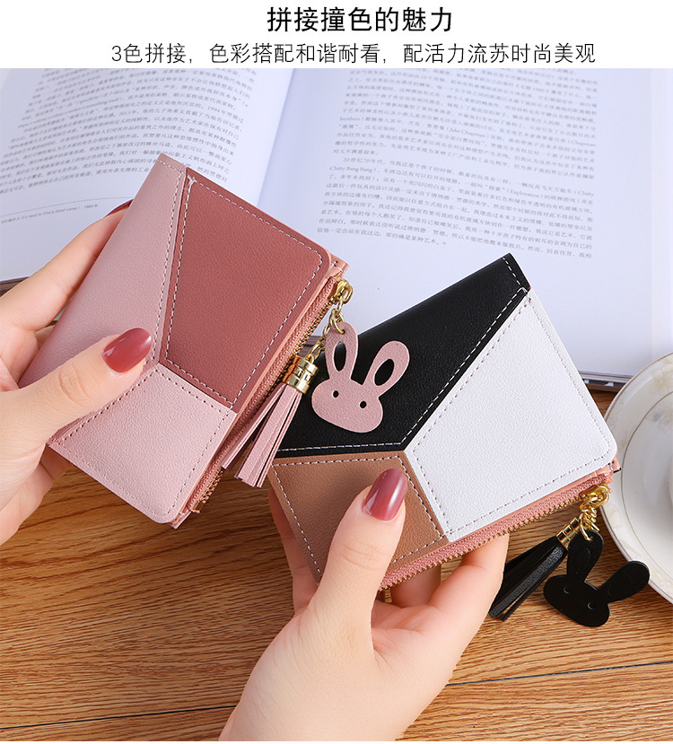 여자 지갑 술 짧은 작은 지갑 한국식 높은 가치 올매치 바느질 패션 작은 지갑 다기능 카드 홀더