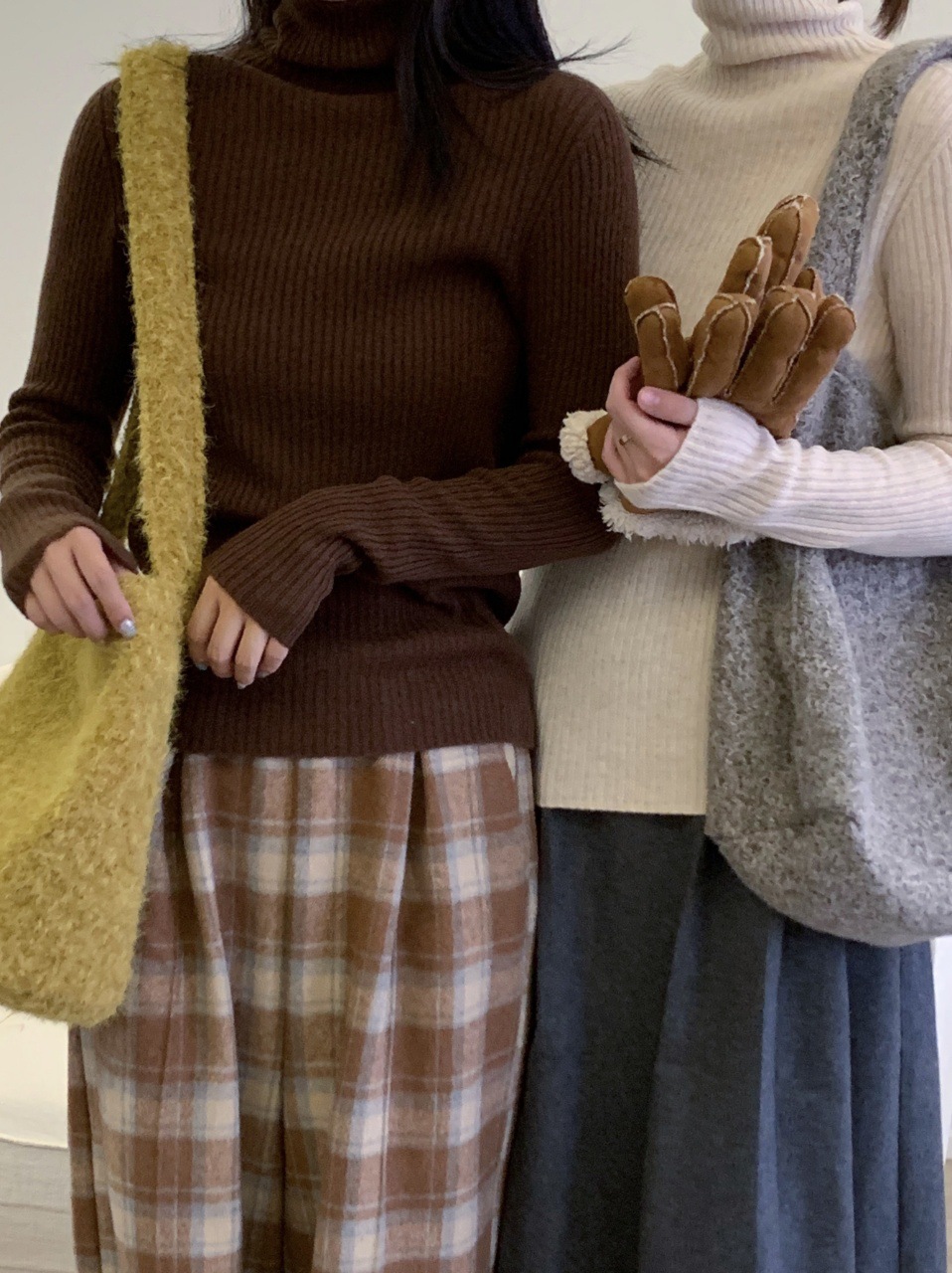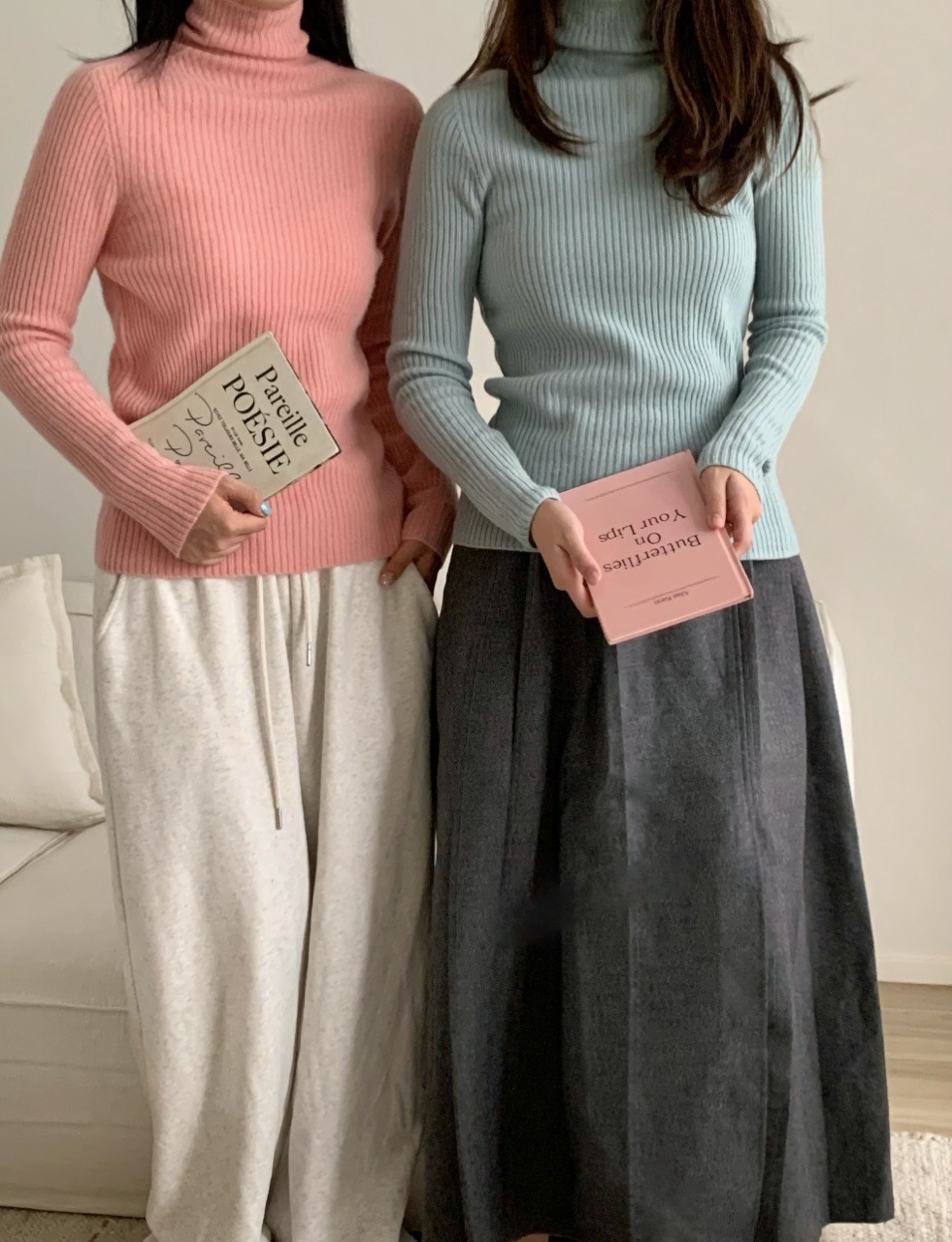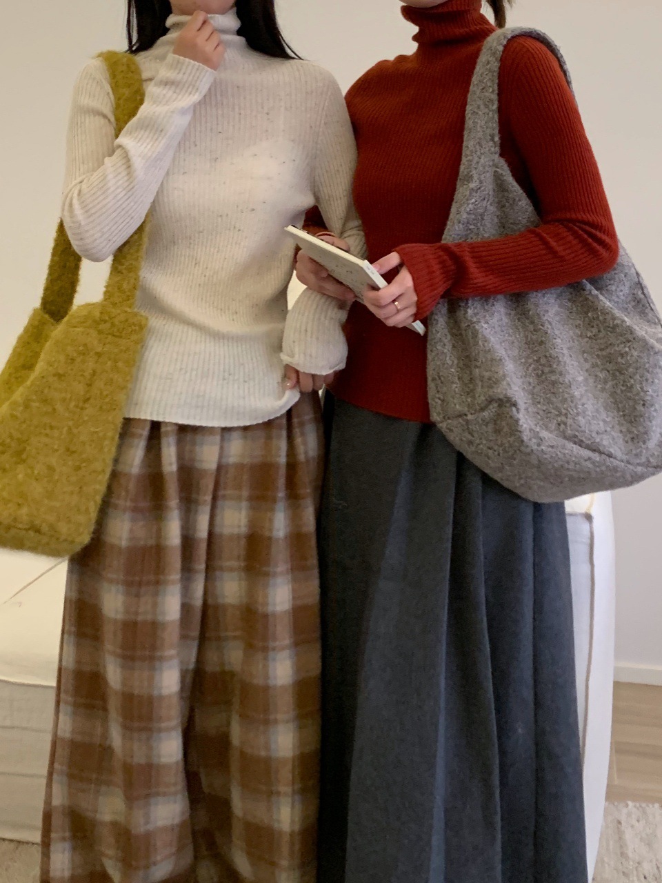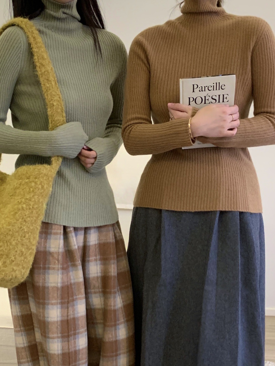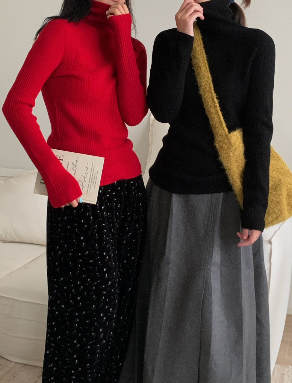 심리스 원피스 100 울 스웨터 2024 초겨울 신작 꽃무늬 타이드넥 스웨터 여성 오른쪽 어깨 긴팔 바닥 셔츠