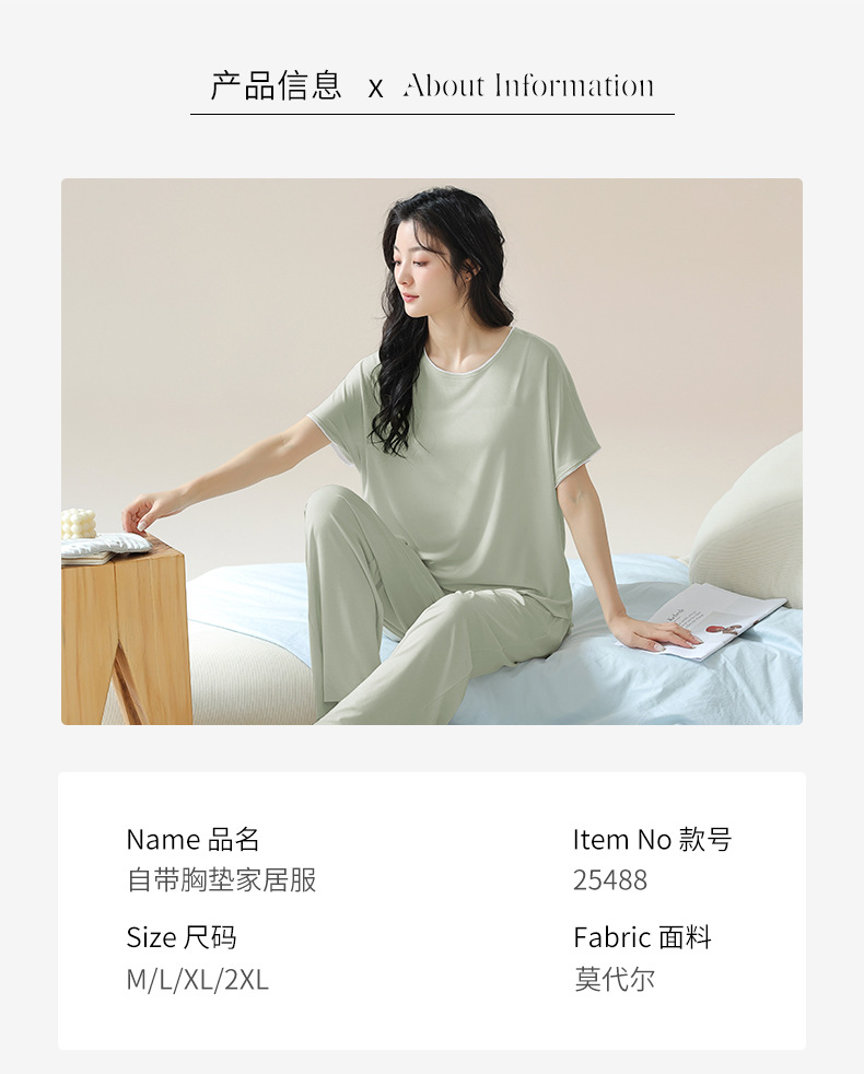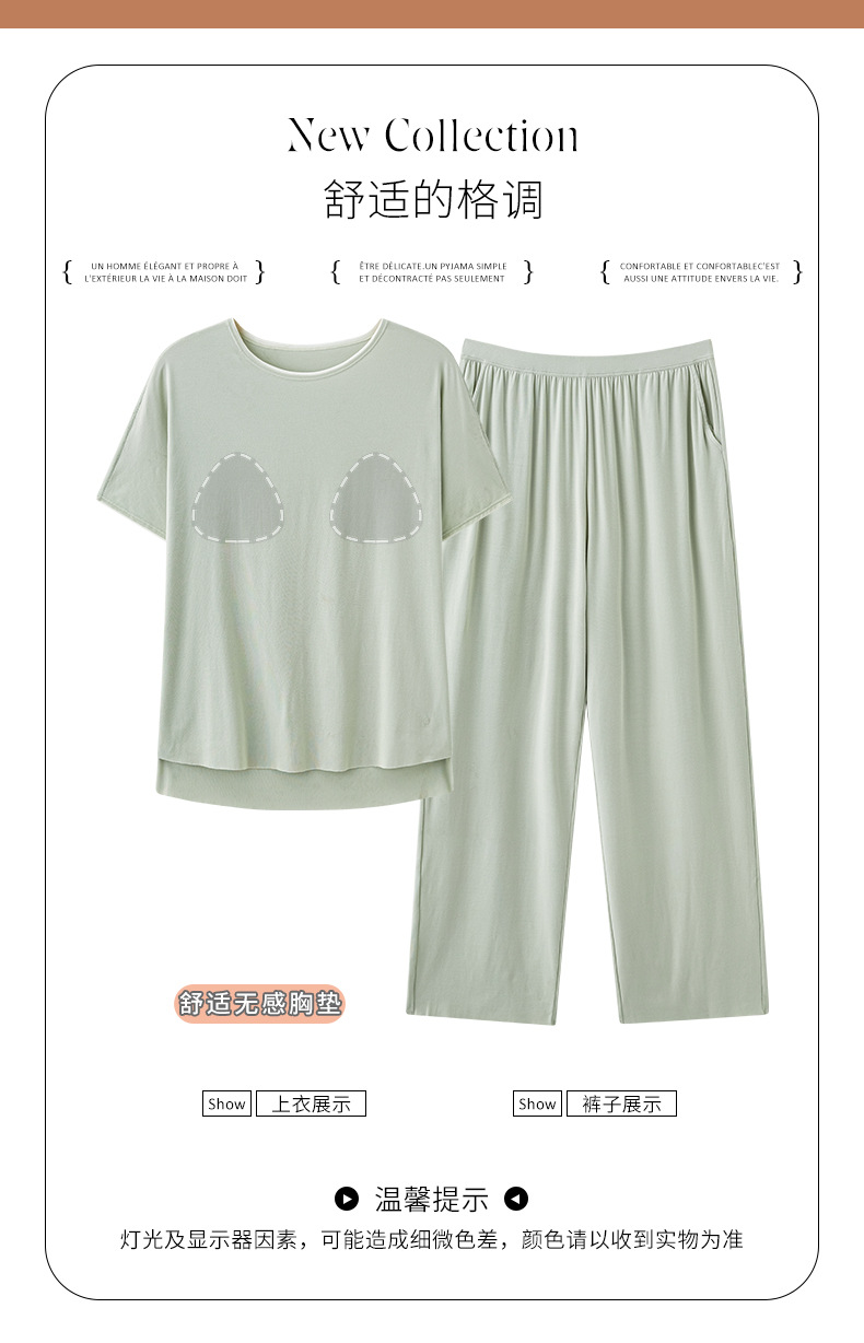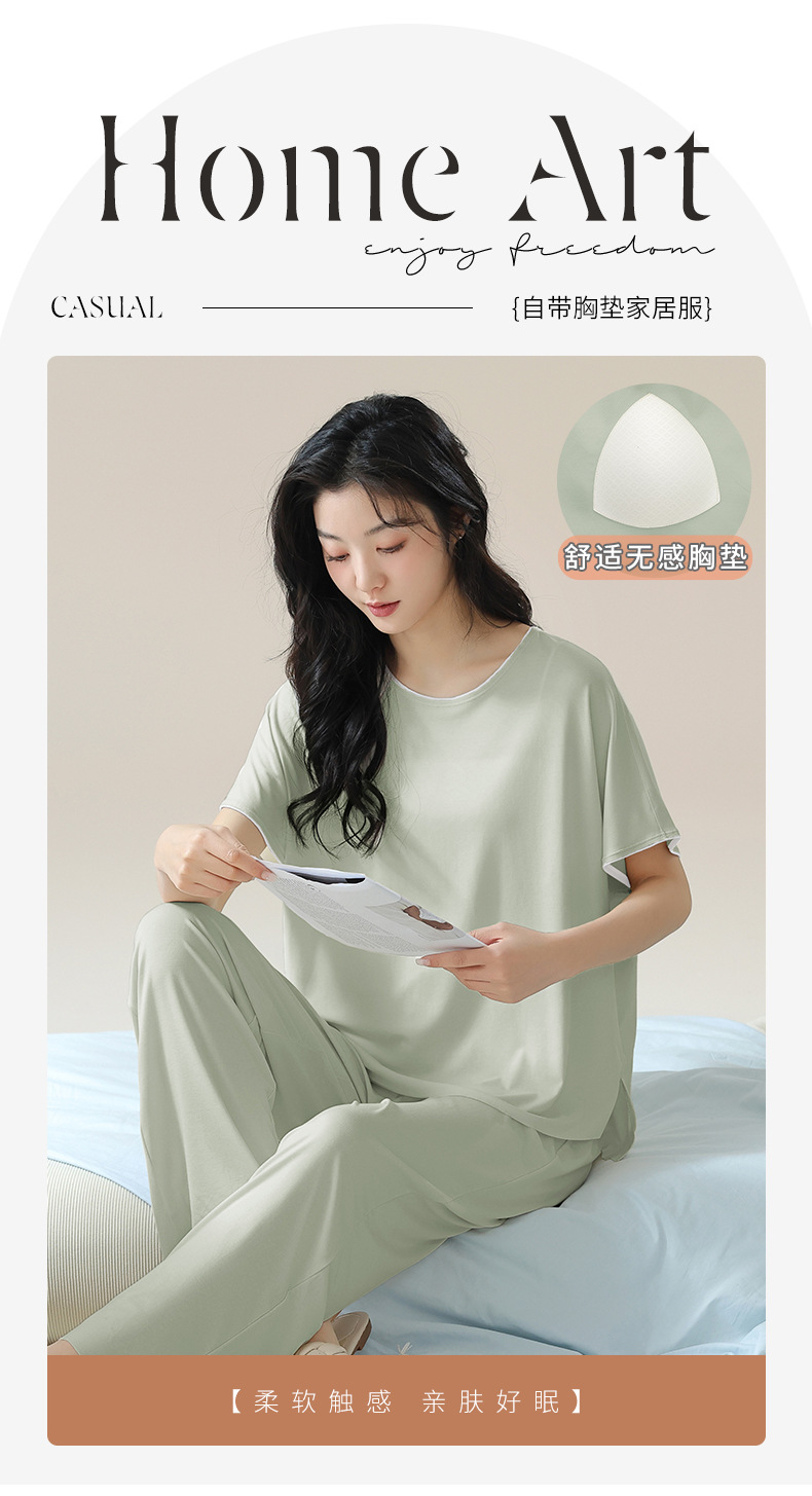 여성용 신상 잠옷, 가슴 패드가 있는 여름용 반팔 바지, 브라 프리, 여름 착용 가능, 홈웨어 세트