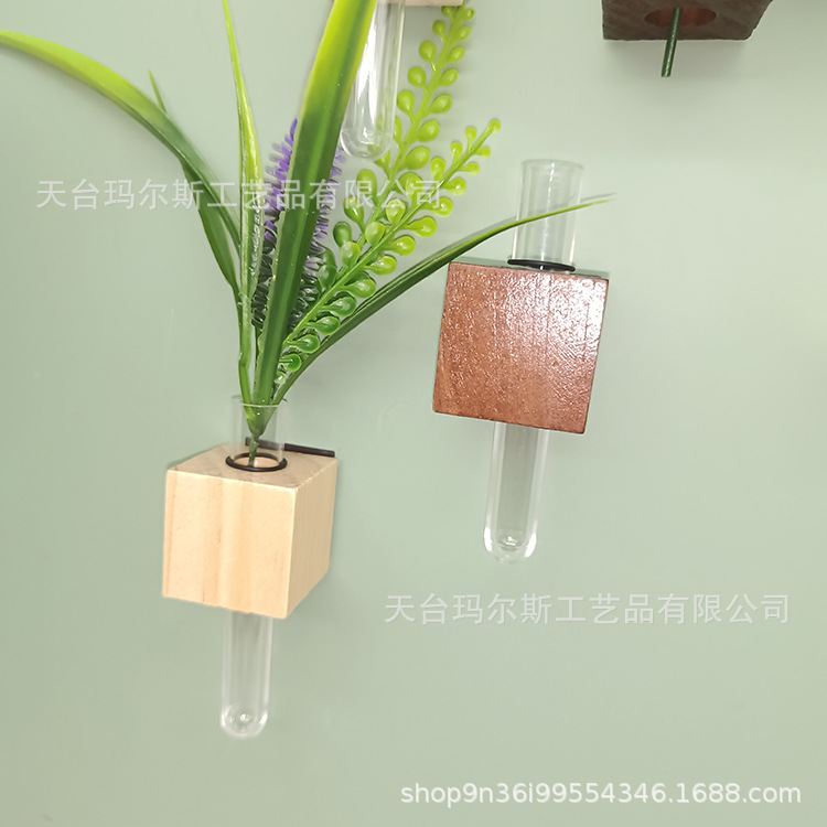 원목 꽃꽂이 냉장고 자석 2025 신제품 창의적 장식 자석 시험관 자카 꽃병 고급스러운 느낌