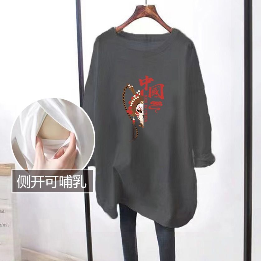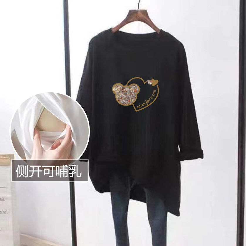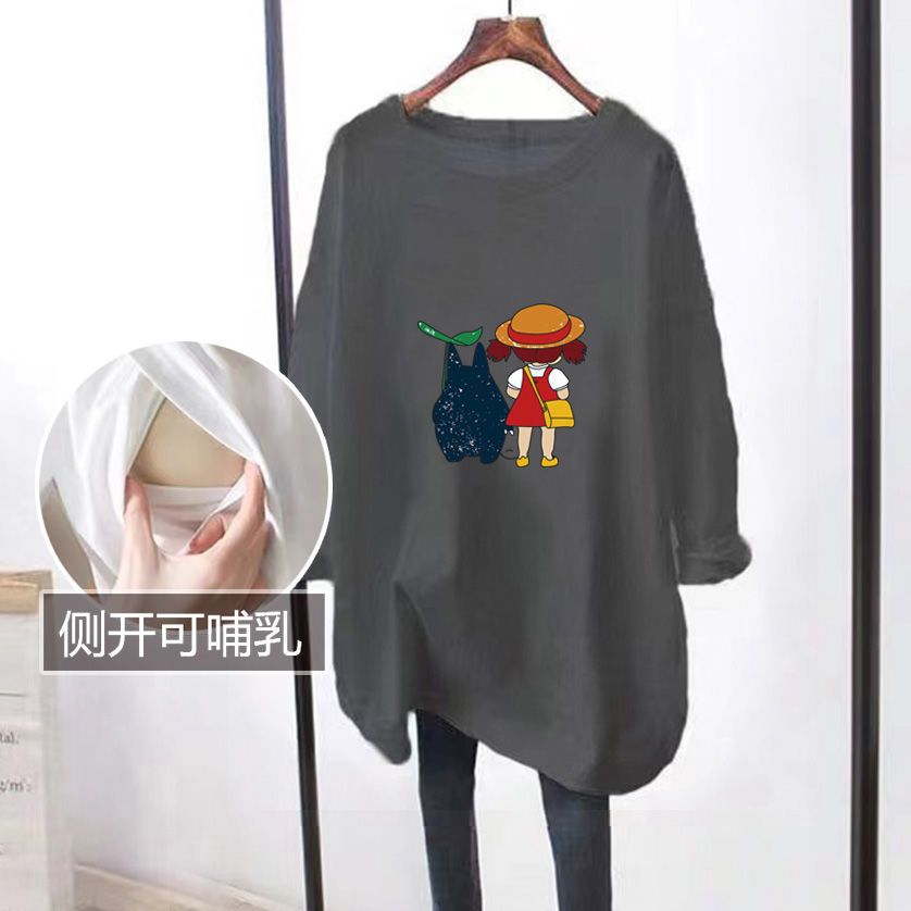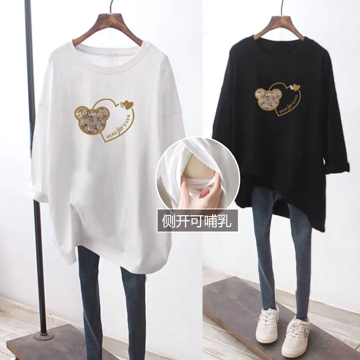 수유 상의, 가을 긴팔 외출복, 핫맘 패션 수유복, 루즈한 플러스 사이즈 임부복, 수유 가능