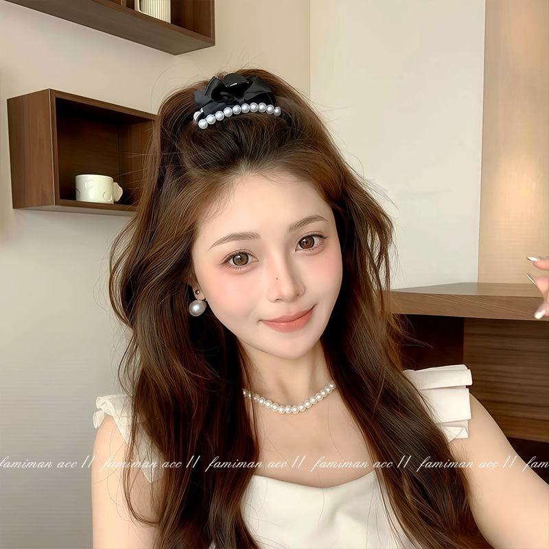 진주 활 작은 그랩 클립 여성의 높은 두개골 탑 얼굴 작은 깨진 머리 클립 여성 사이드 뱅 헤어 클립 머리 주소