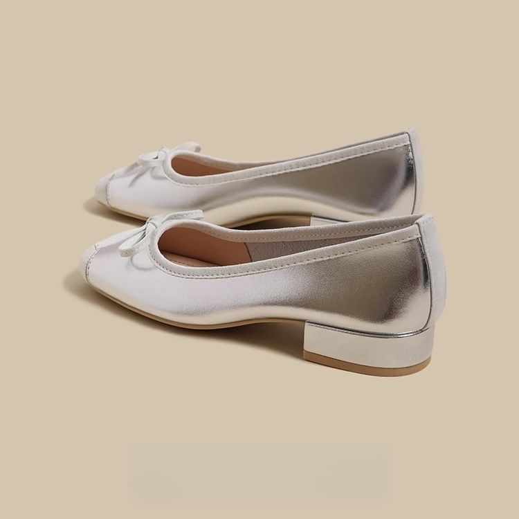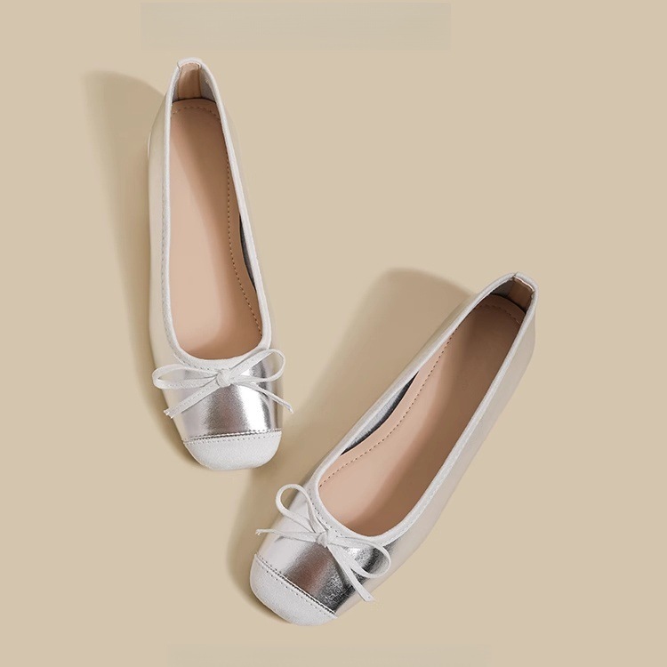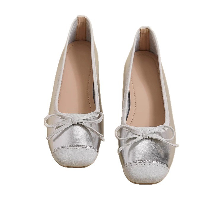 실버 신발 여성 2025 봄 새로운 레트로 프랑스 스타일 스퀘어 토 플랫 활 발레 얕은 입 메리 제인 신발