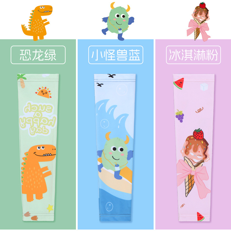어린이 만화 아이스 실크 슬리브 선스크린 아이스 슬리브 팔 프로텍터 여름 야외 스포츠 선스크린 소매 팔 슬리브