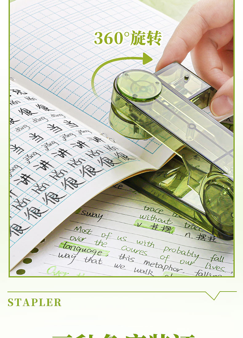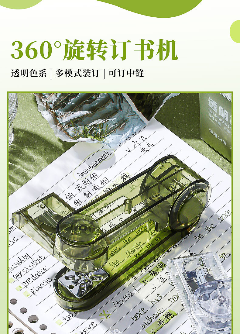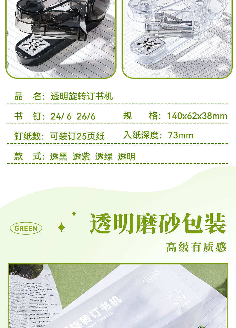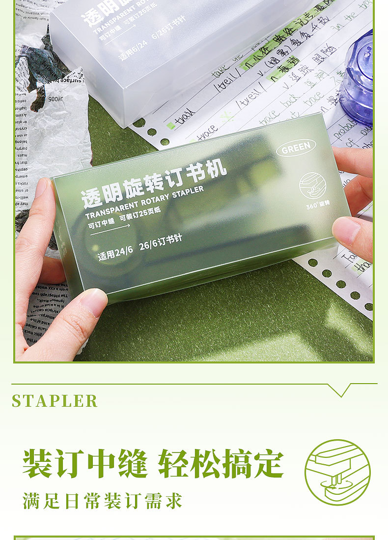 대형 사이즈 회전 가능 [투명 녹색 + 투명 검정색] 무료 스테이플 800개