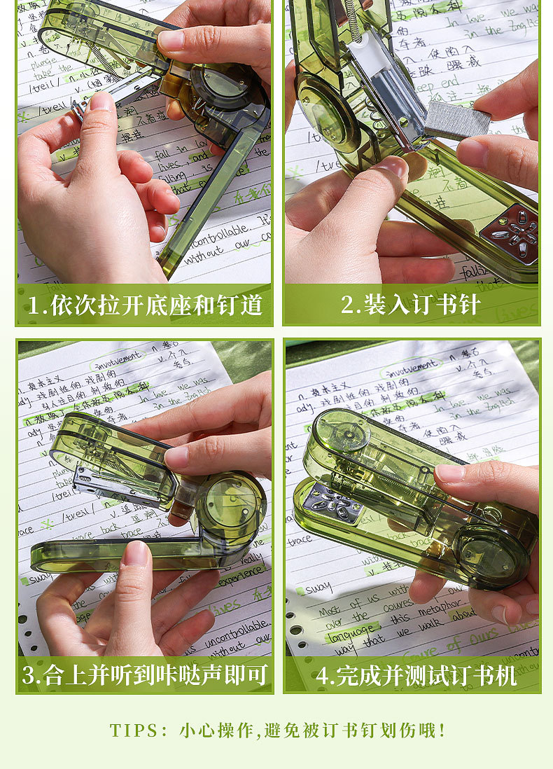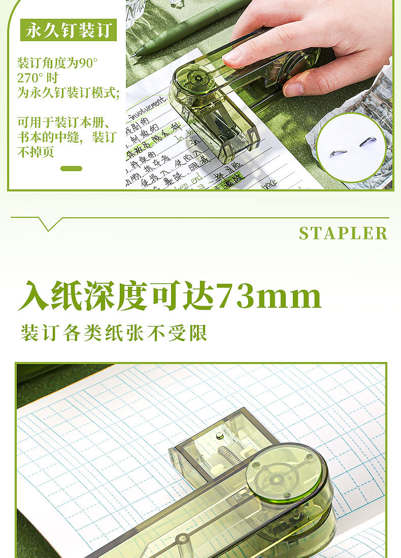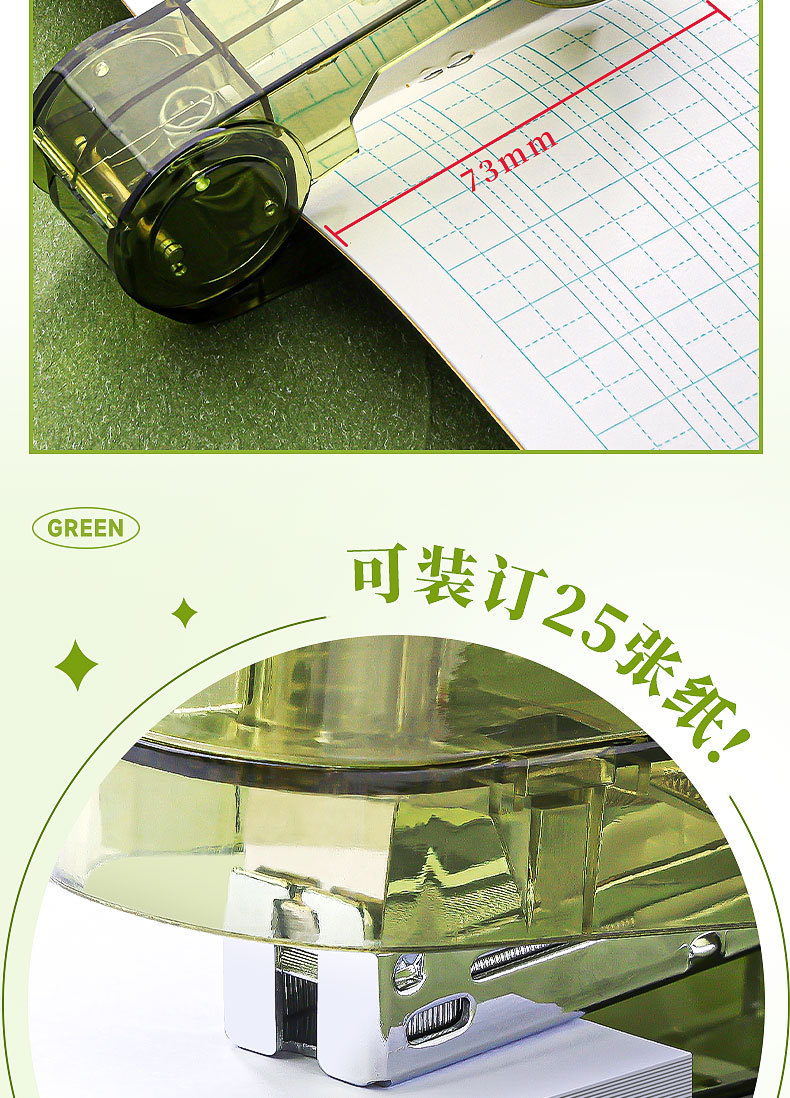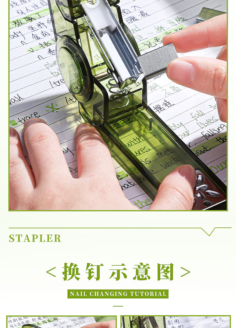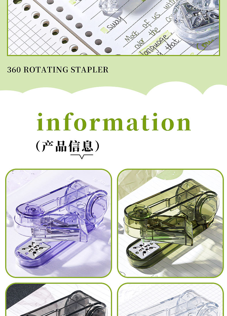 대형 사이즈 회전 가능 [투명 녹색 + 투명 검정색] 무료 스테이플 800개