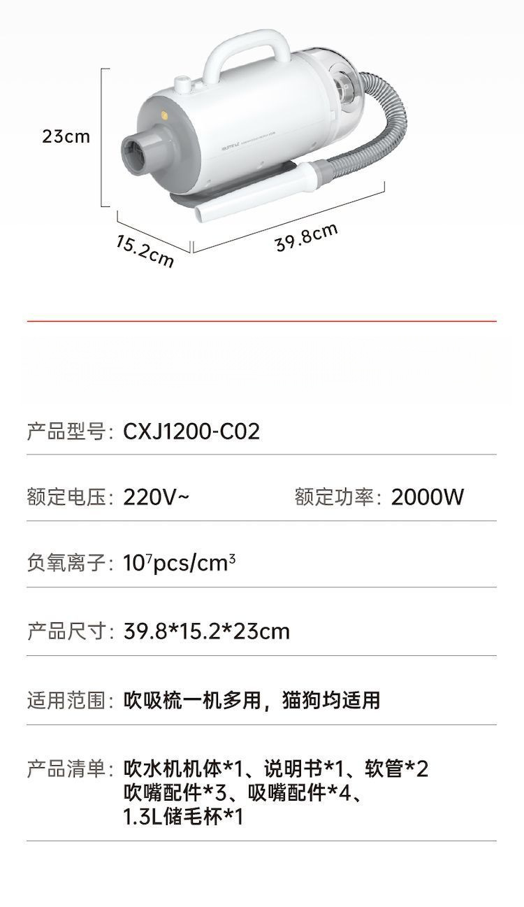 애완 동물 물 송풍기 개 헤어 드라이어 고양이 헤어 흡수 고출력 헤어 블로잉 및 모발 흡수 통합 큰 개