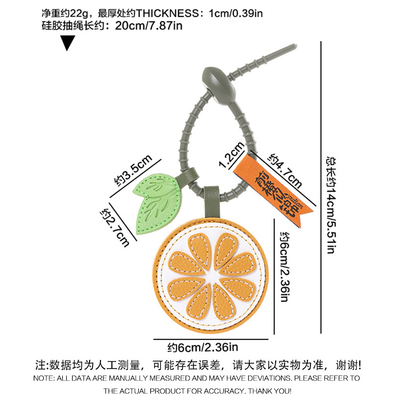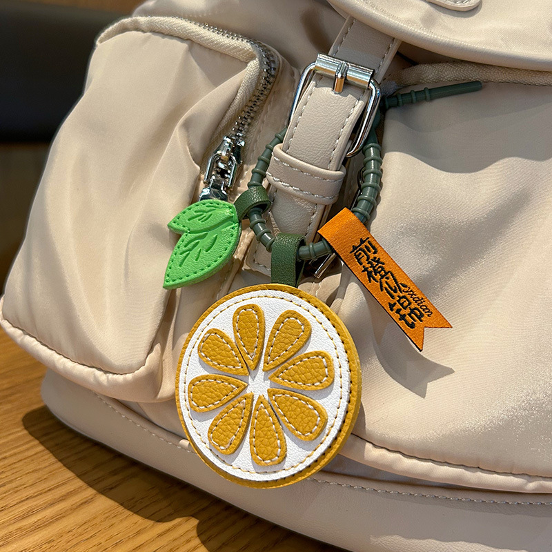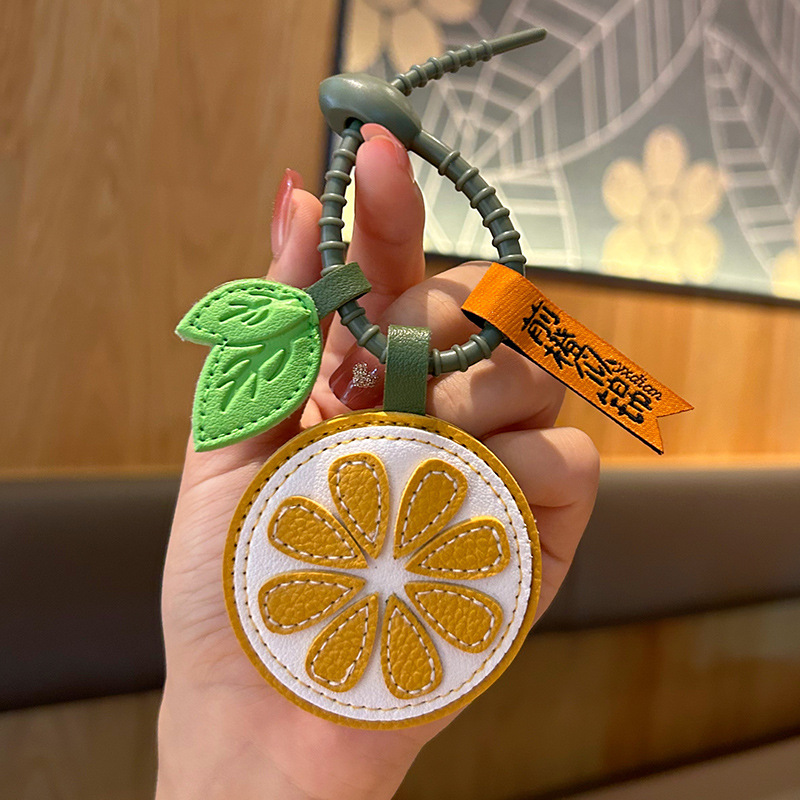 오리지널 정품 가죽 프론트 오렌지 키 체인 오렌지 작은 신선한 학생 커플 가방 펜던트 액세서리 선물