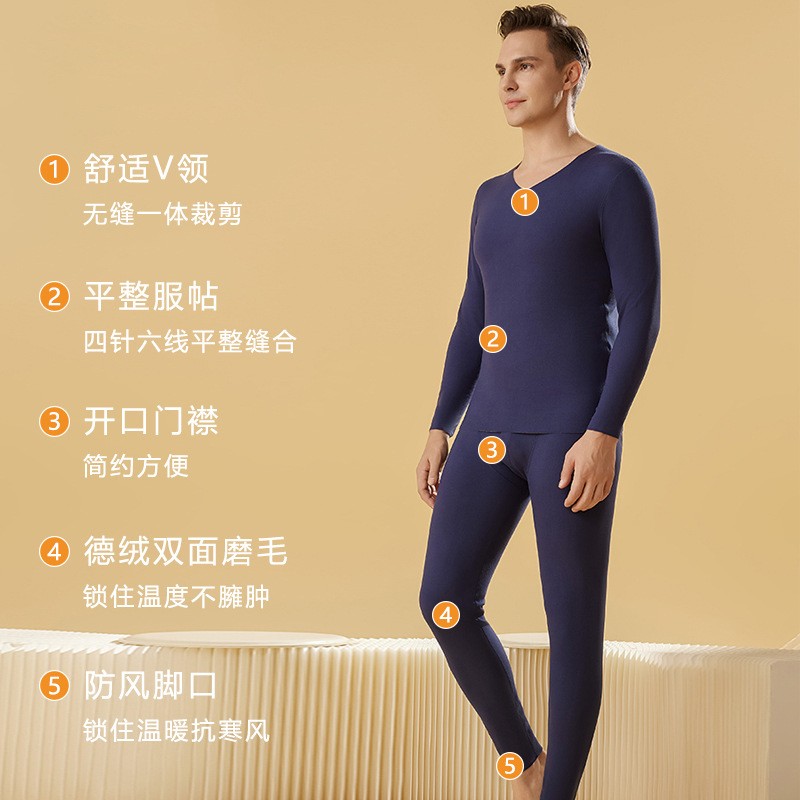 500g 남성용 보온 속옷 세트, 얇은 가을 옷과 긴 바지, 심리스, 편안함, 고탄성, 따뜻하고 피부 친화적인 이너웨어