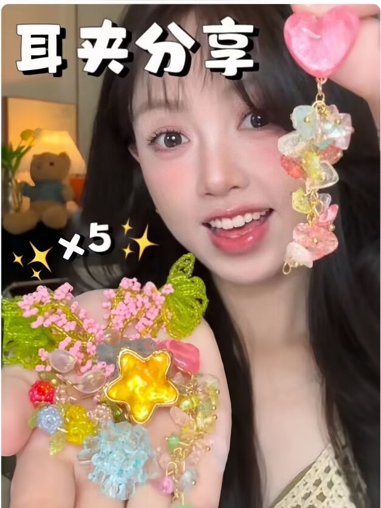 정사각형 얼굴 컬러 귀 클립에 매우 적합합니다! 가득 찬 여름 분위기! 귀없는 구멍 스타 소수 귀 클립 귀걸이