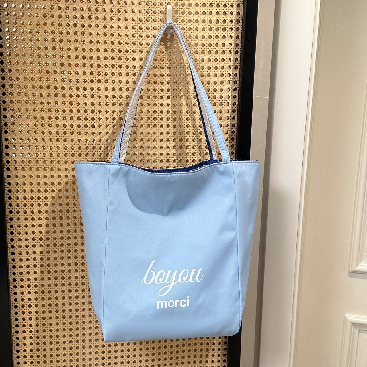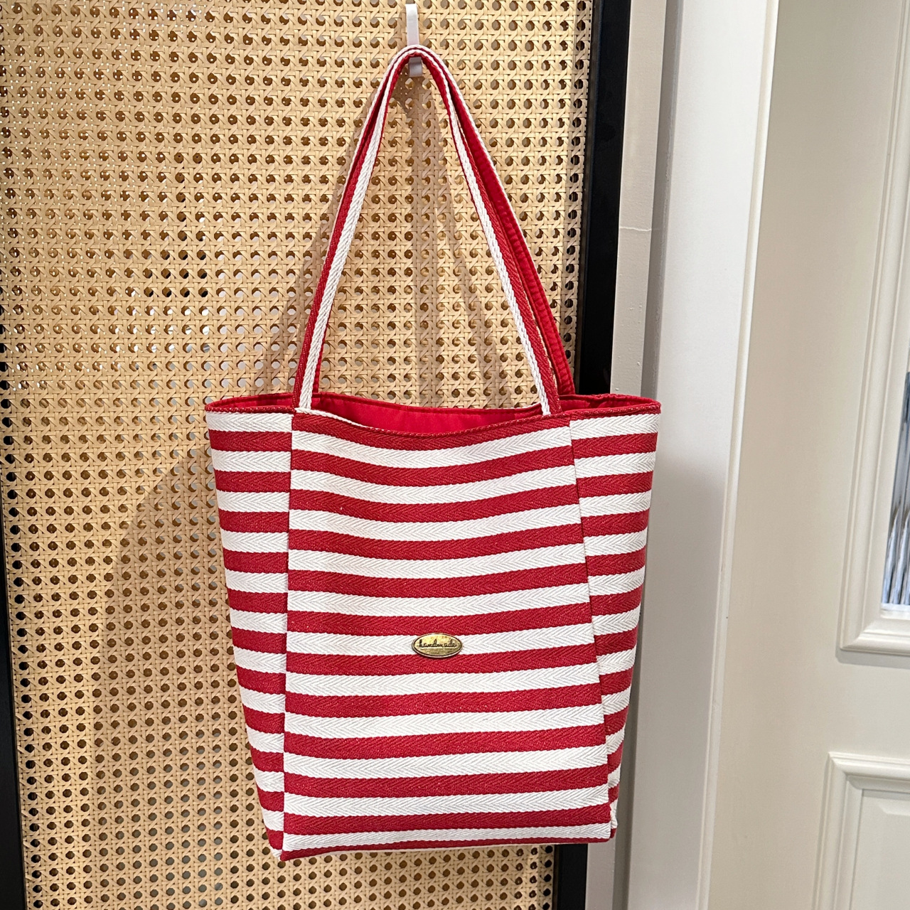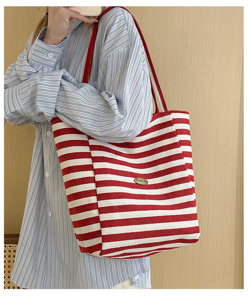 줄무늬 캔버스 양면 어깨 가방 2025 새로운 겨드랑이 가방 캐주얼 간단한 게으른 스타일 대용량 토트 백