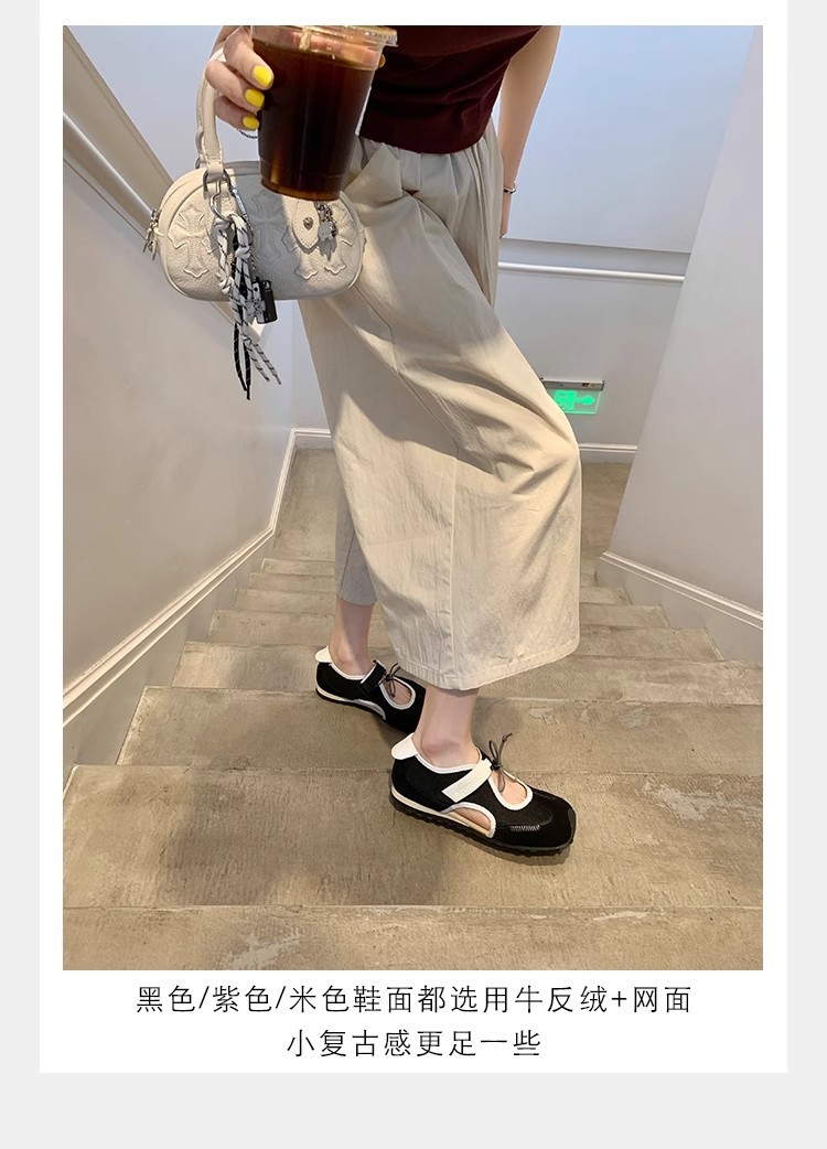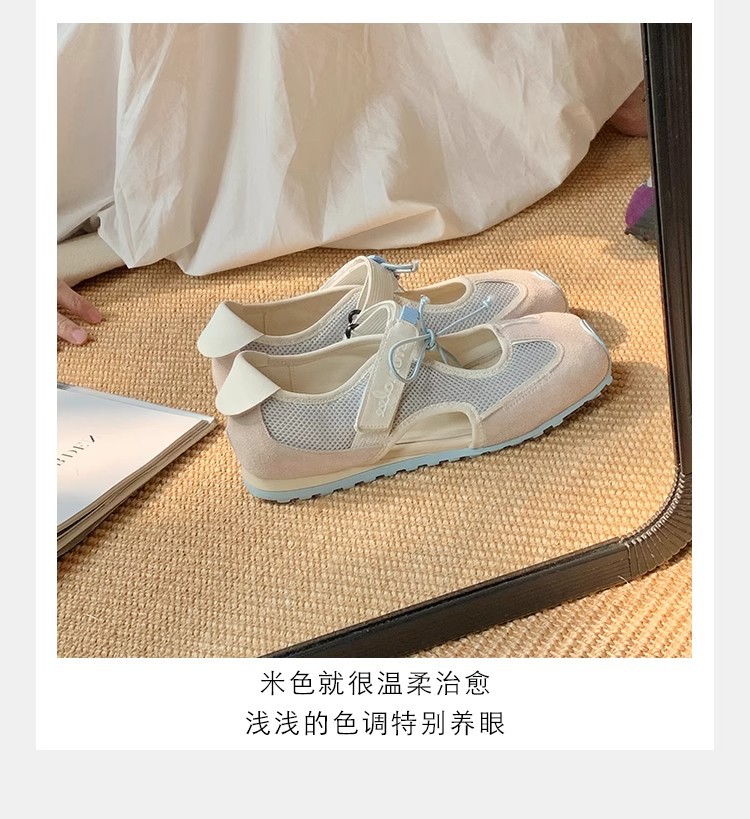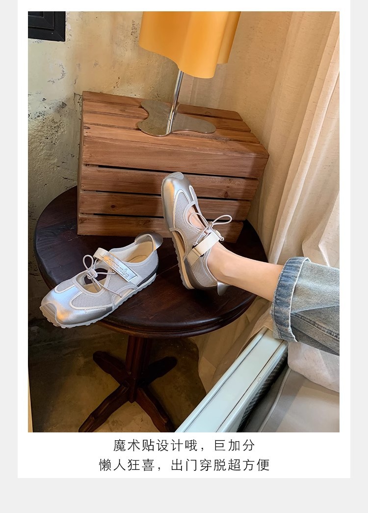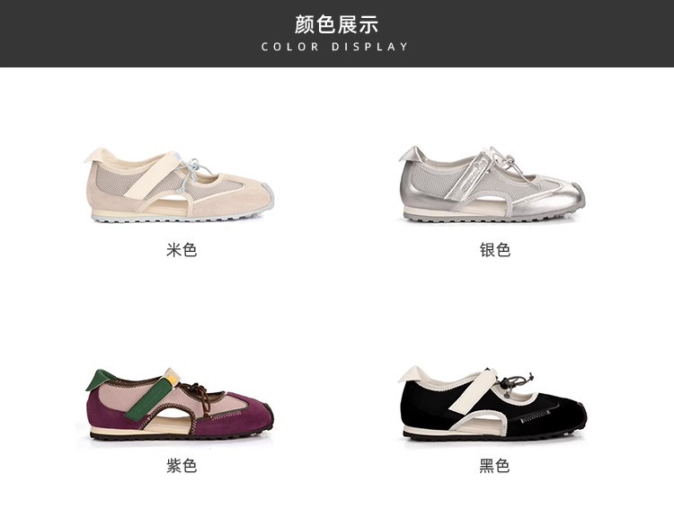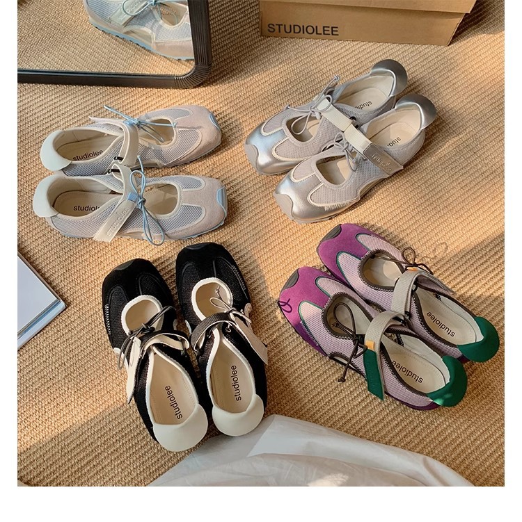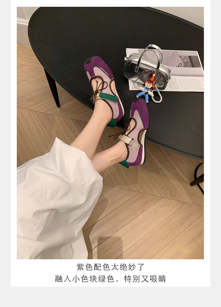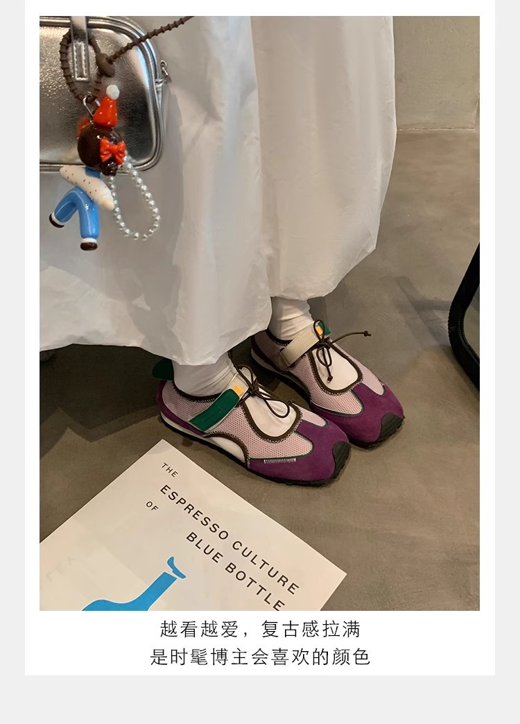 여성용 봄 여름용 포도 엄마와 같은 스타일의 못생긴 귀여운 벨크로 대비 색상 드로스트링 소프트 솔 스포츠 및 캐주얼 메리 제인 슈즈의 양가죽 버전