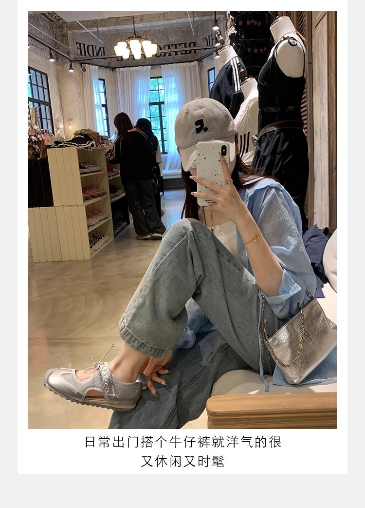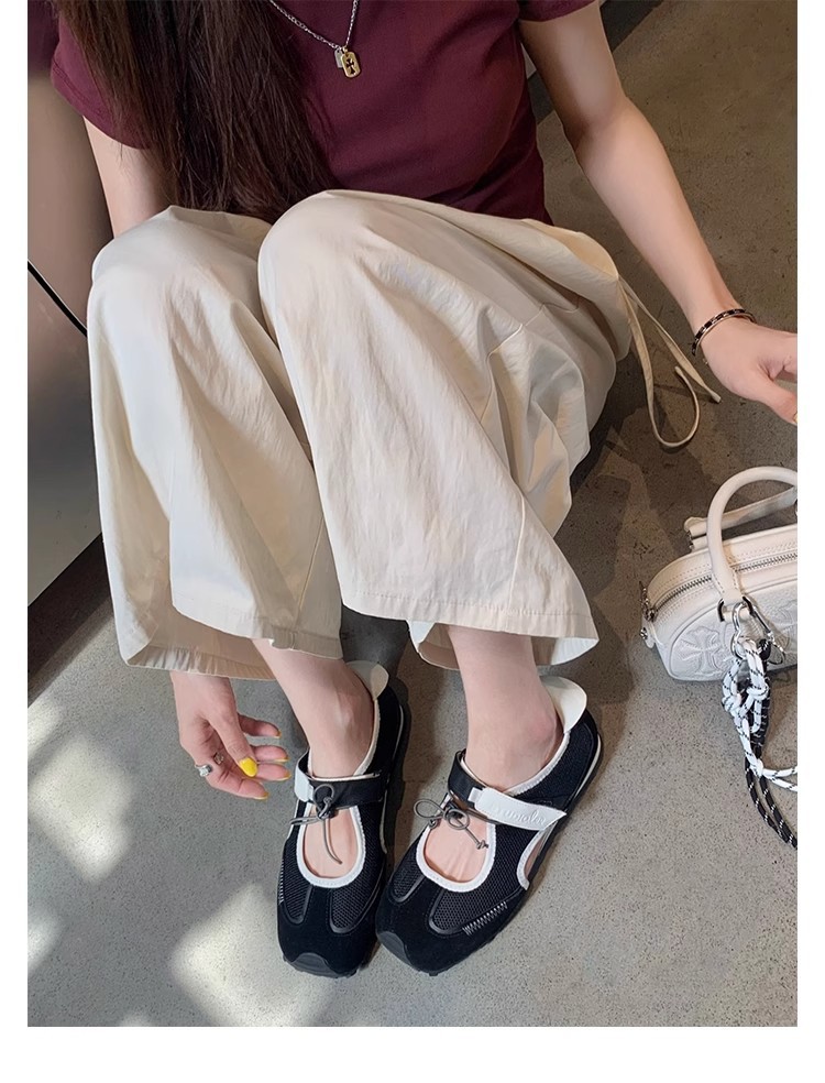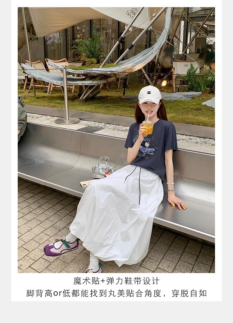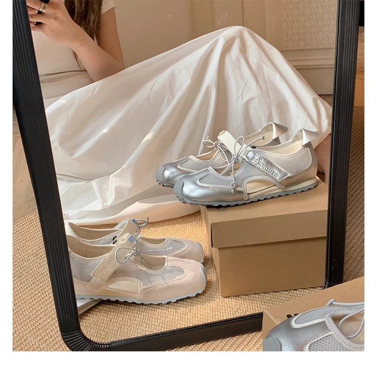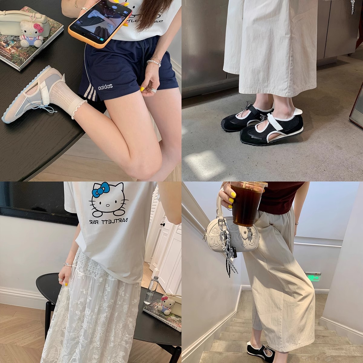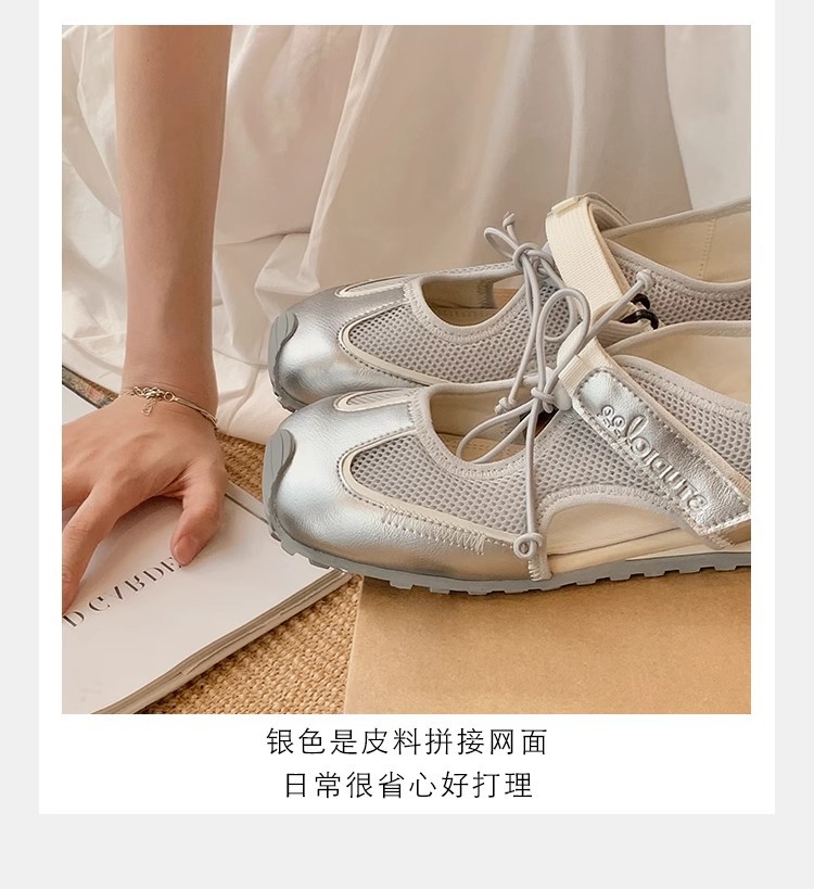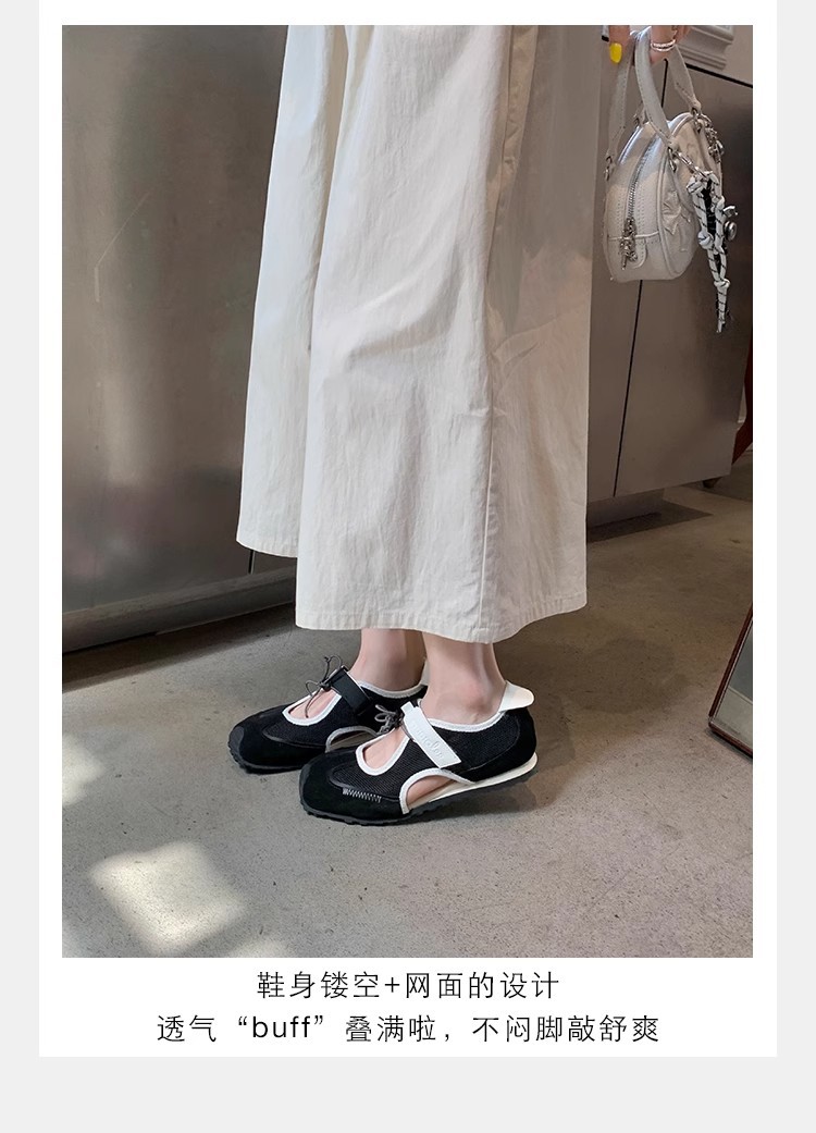 여성용 봄 여름용 포도 엄마와 같은 스타일의 못생긴 귀여운 벨크로 대비 색상 드로스트링 소프트 솔 스포츠 및 캐주얼 메리 제인 슈즈의 양가죽 버전