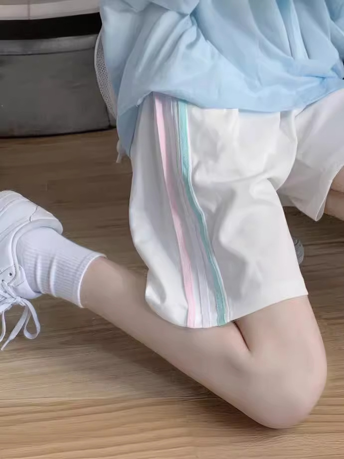 스포츠 반바지 여자 여름 루즈 인 트렌디 한 아우터 러닝 한국 스타일 캐주얼 하이 허리 Bf 스타일 바지 스트레이트 하프 길이 바지