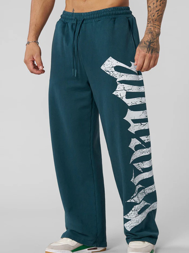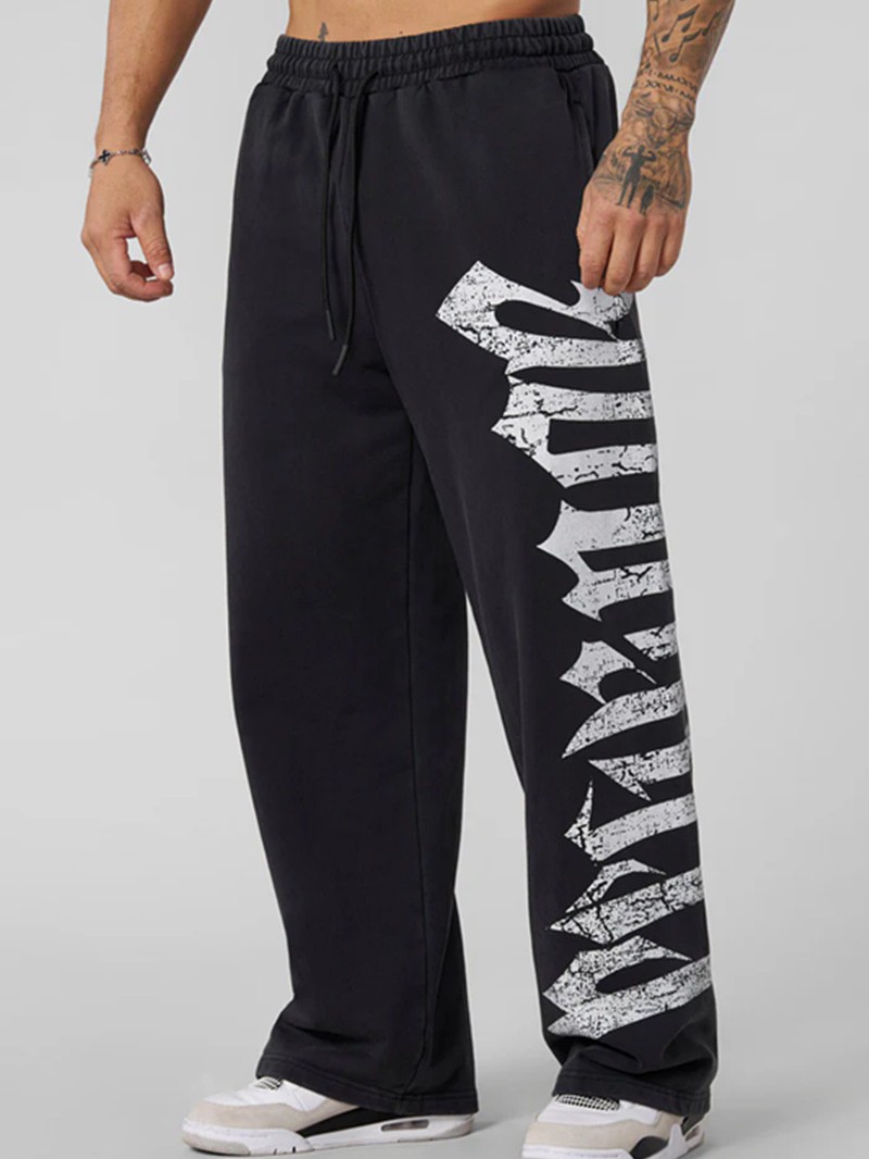 YOUNGLA 2025 새로운 미국 스포츠 바지 체육관 보디 빌딩 달리기 훈련 바지 면 인쇄 넓은 다리 바지 남자