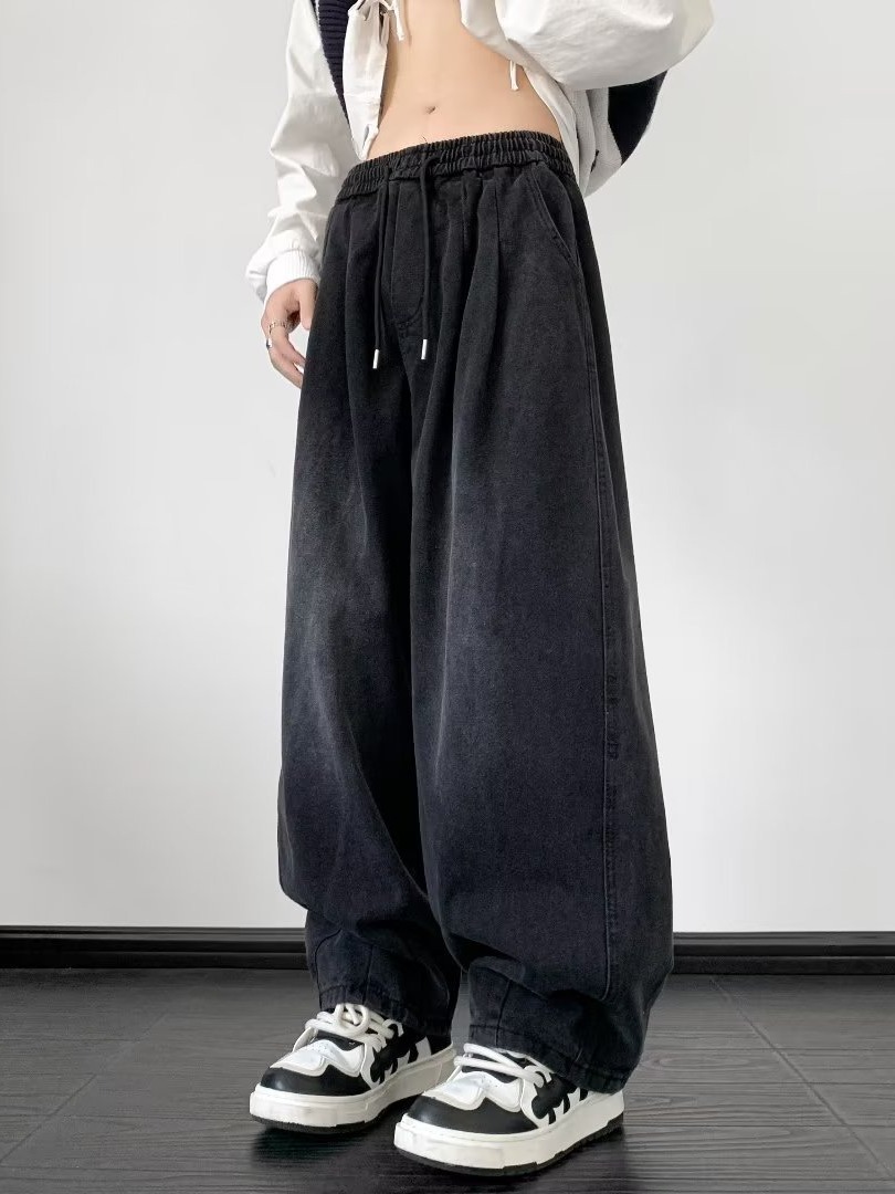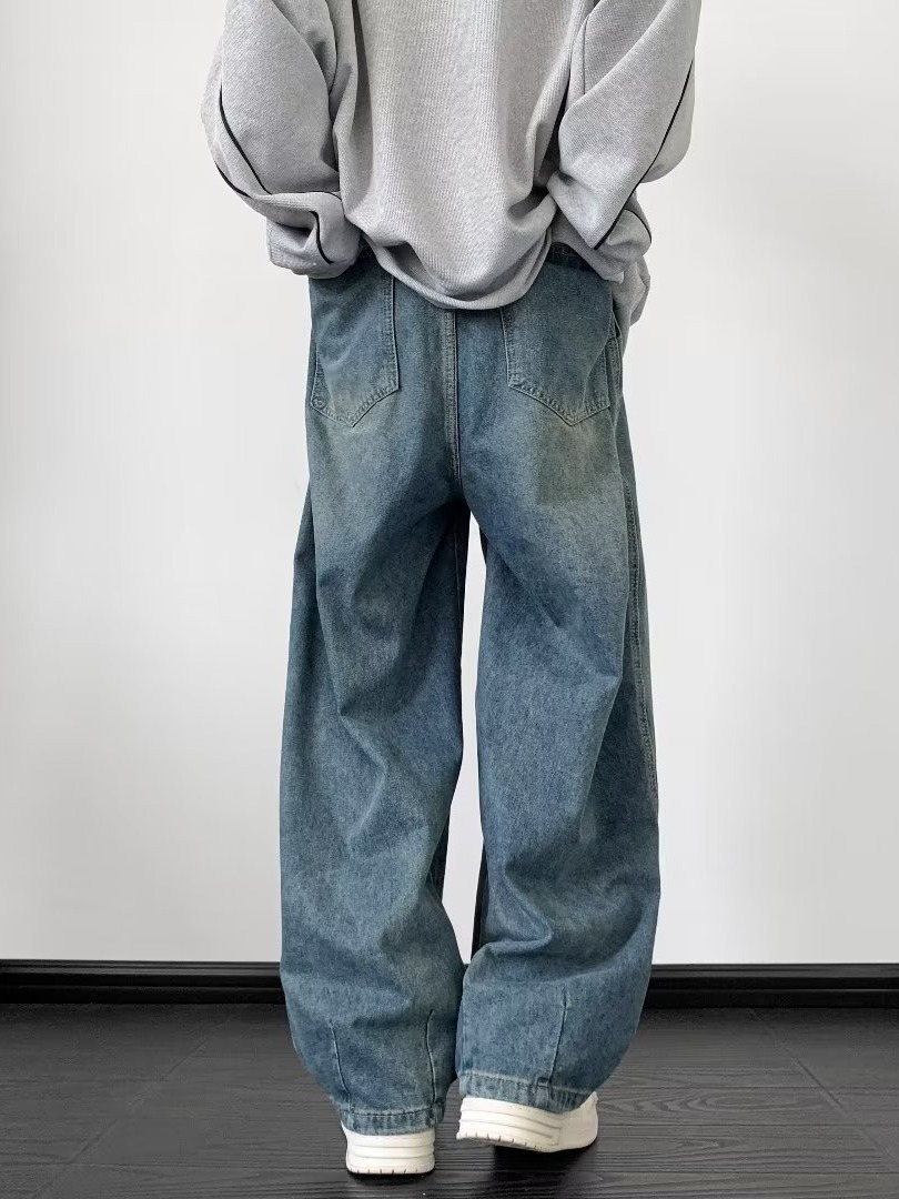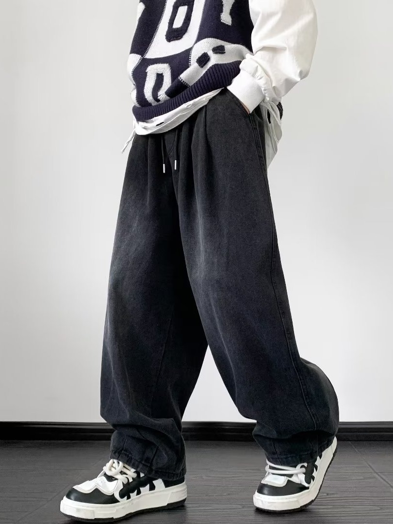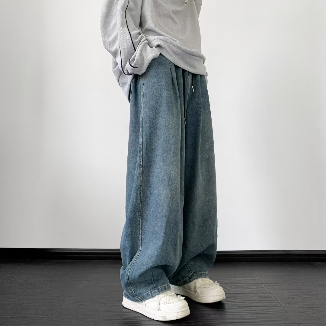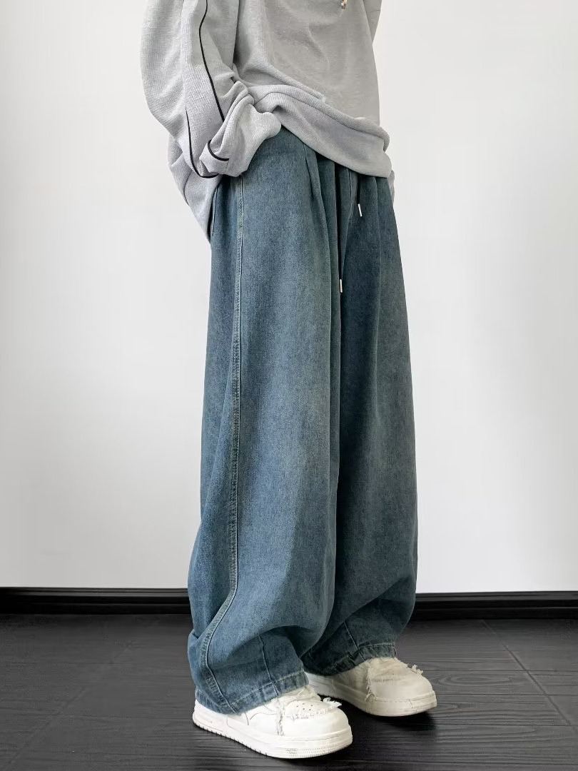 아메리칸 레트로 타이 청바지 남성 트렌디 브랜드 루즈 스트레이트 팬츠 하이 스트리트 와이드 레그 소년 신축성 있는 허리 캐주얼 바지