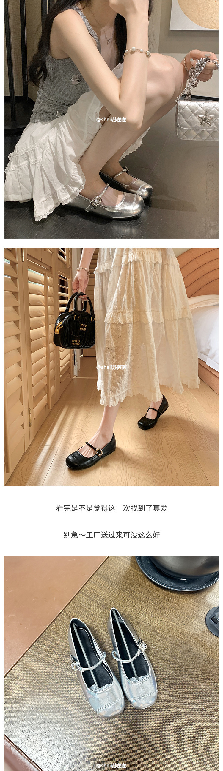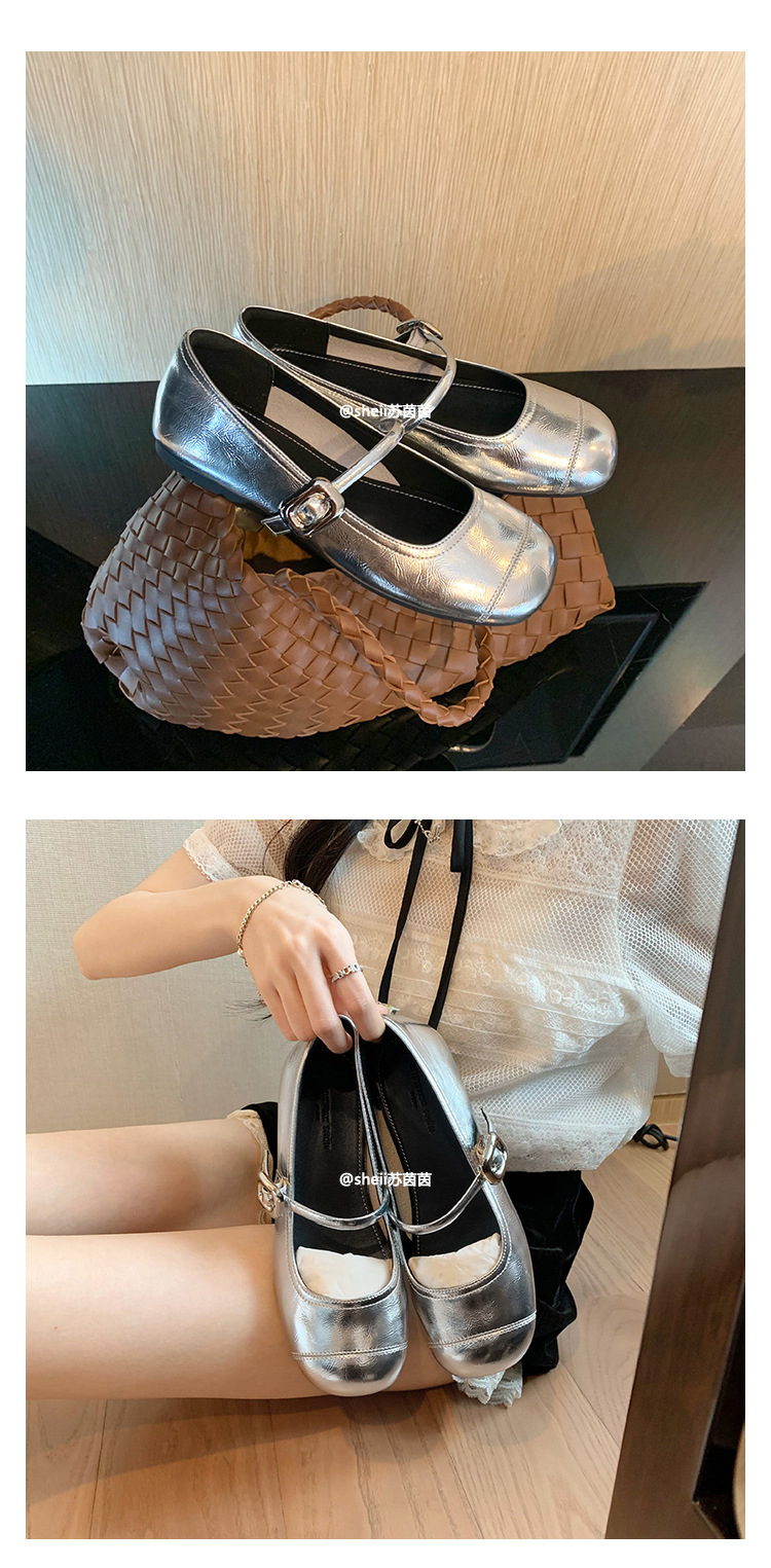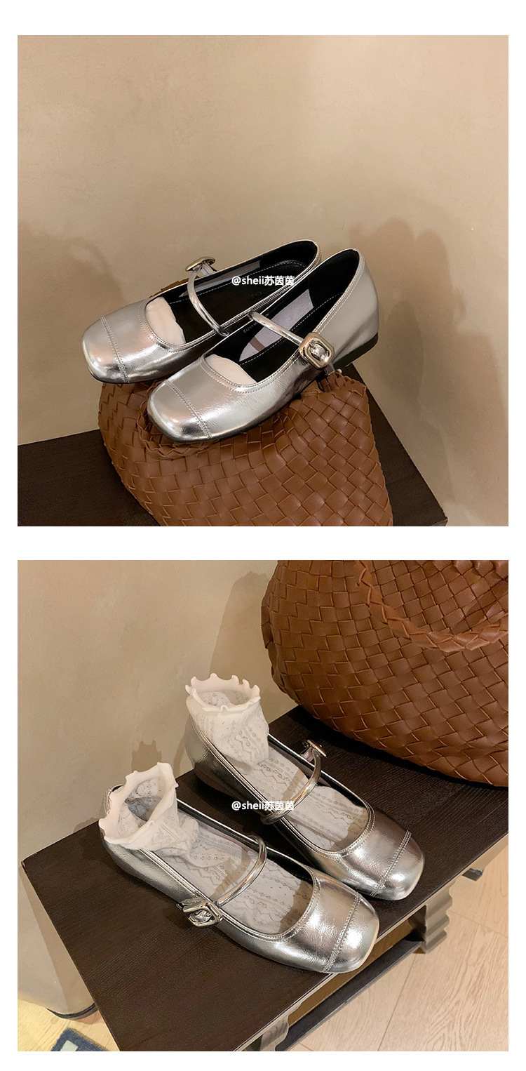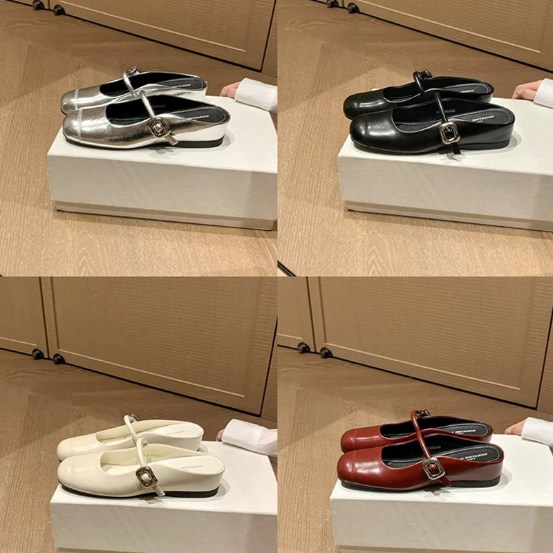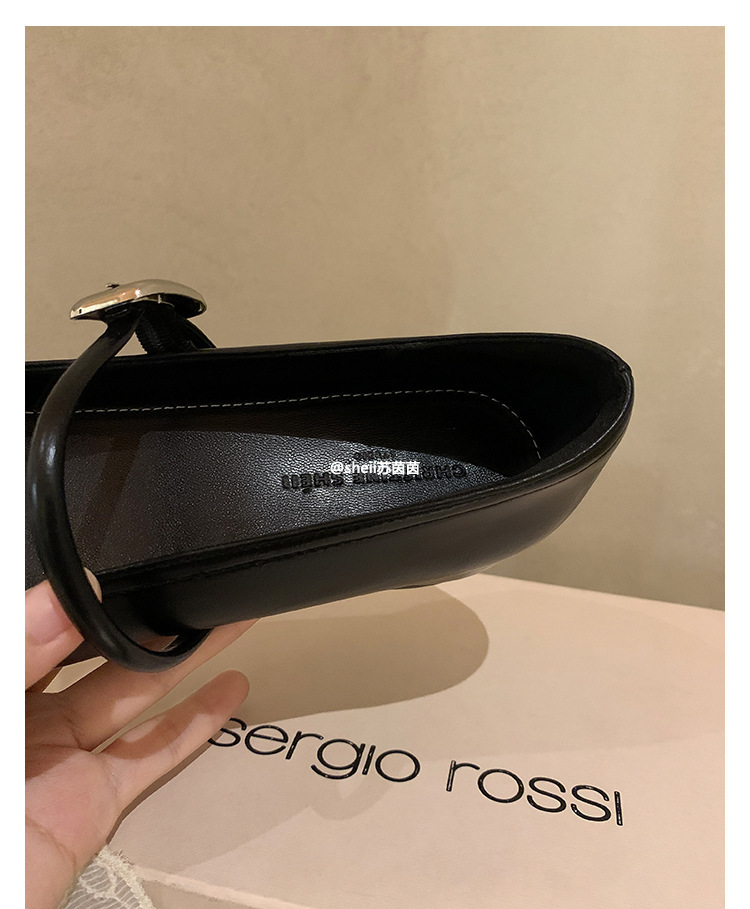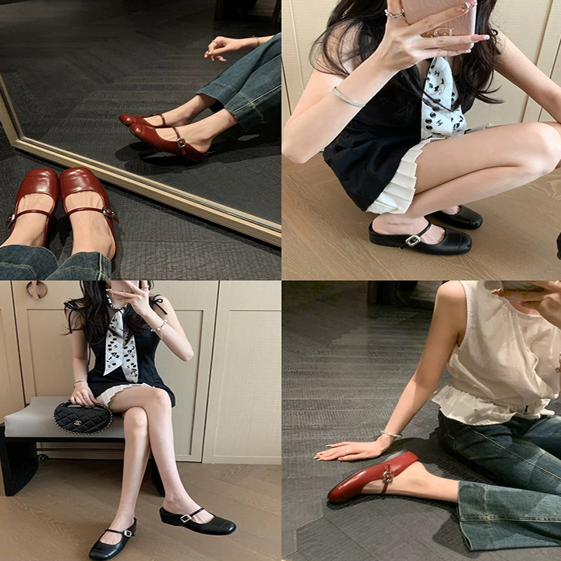 은색 스퀘어토 얕은 굽 35mm 키높이 초부드러운 프렌치 스퀘어 버클 플랫 발레 슈즈 여성용 2025 메리제인 슈즈