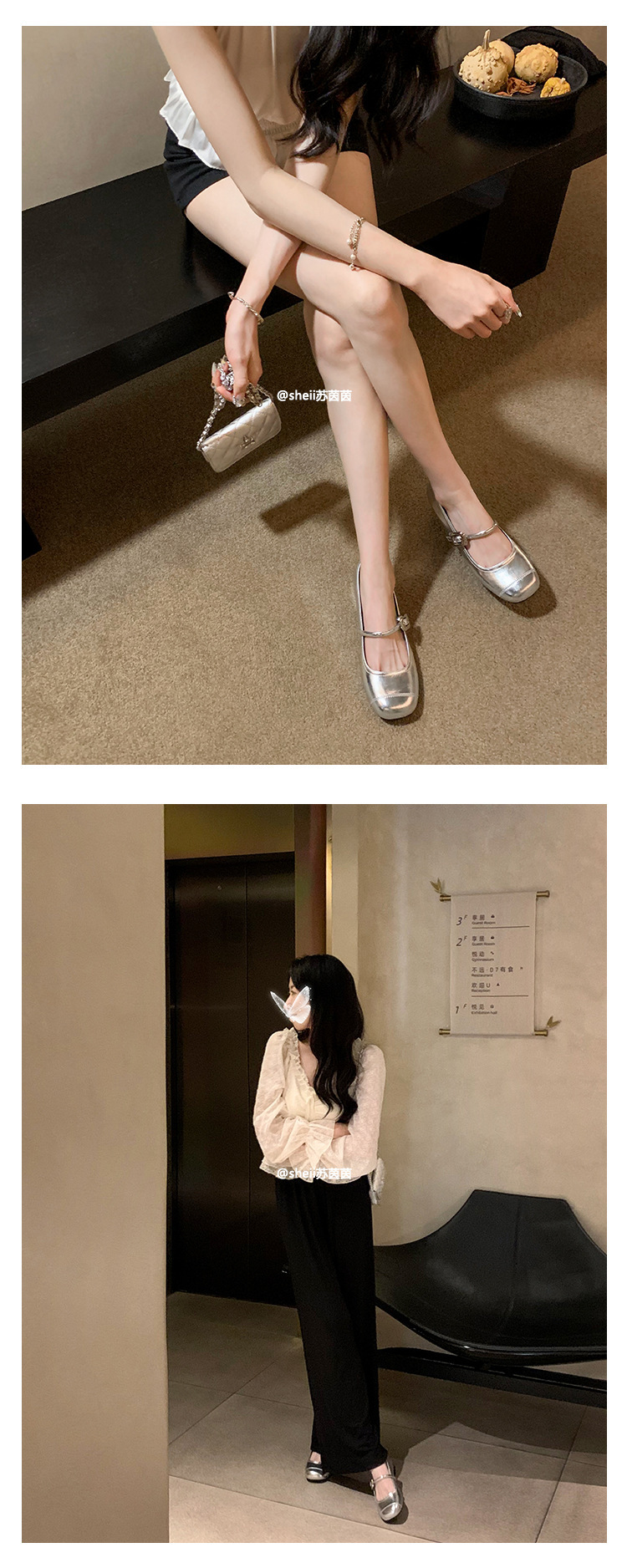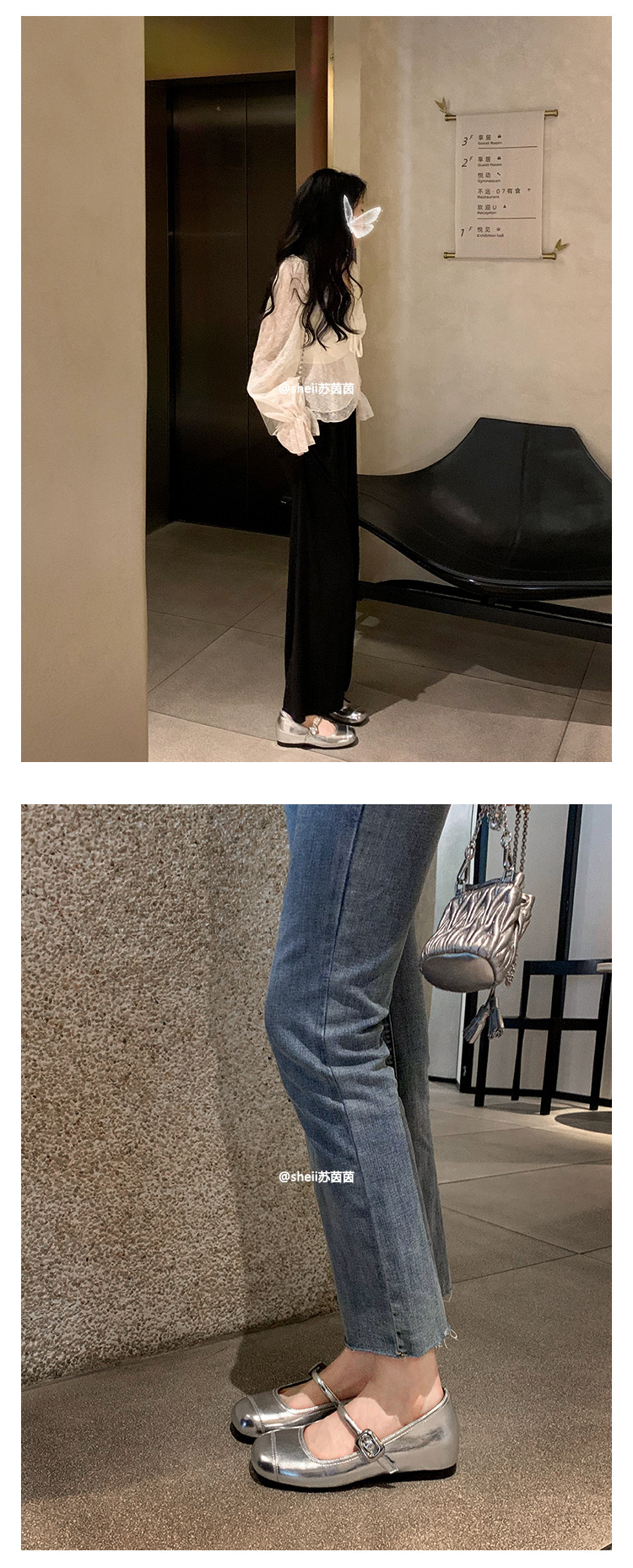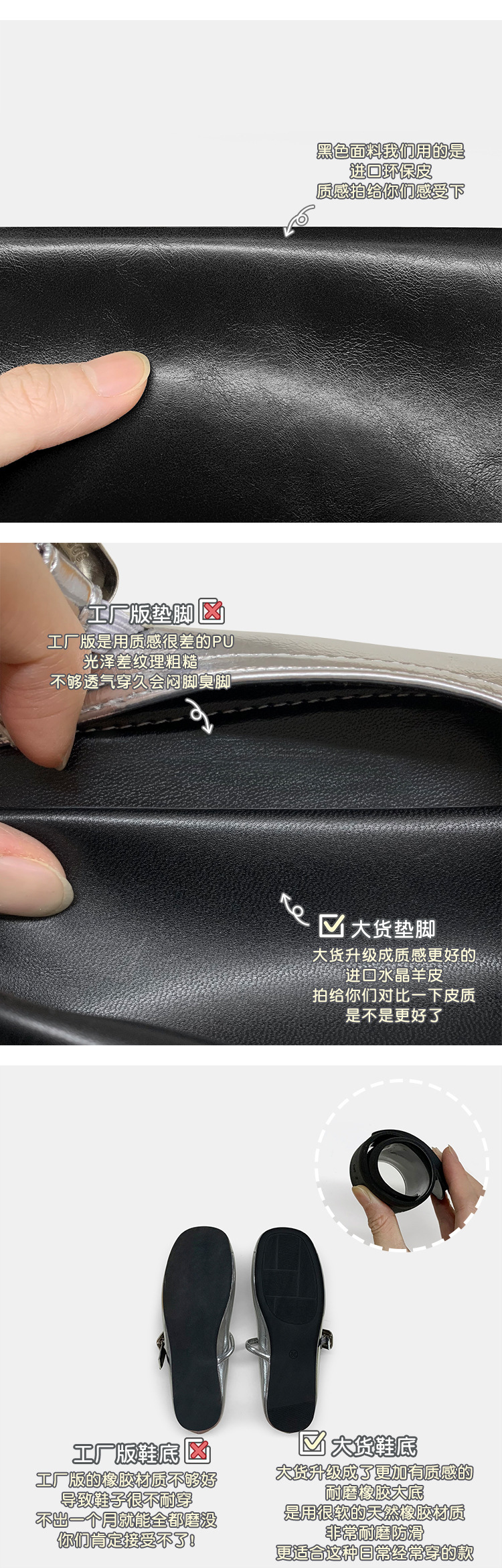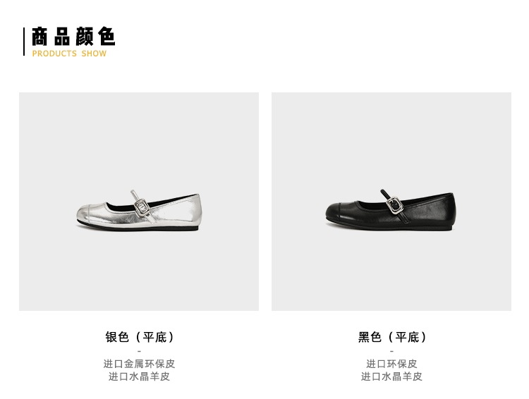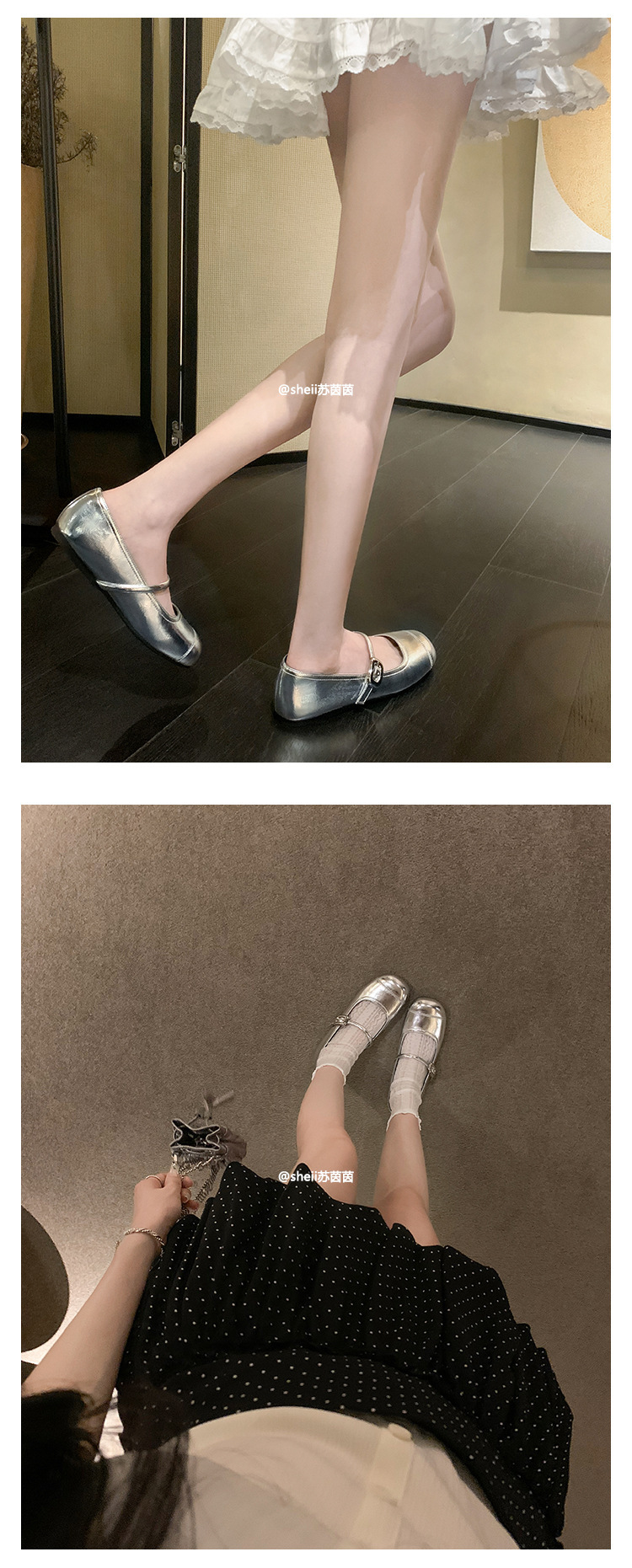 은색 스퀘어토 얕은 굽 35mm 키높이 초부드러운 프렌치 스퀘어 버클 플랫 발레 슈즈 여성용 2025 메리제인 슈즈