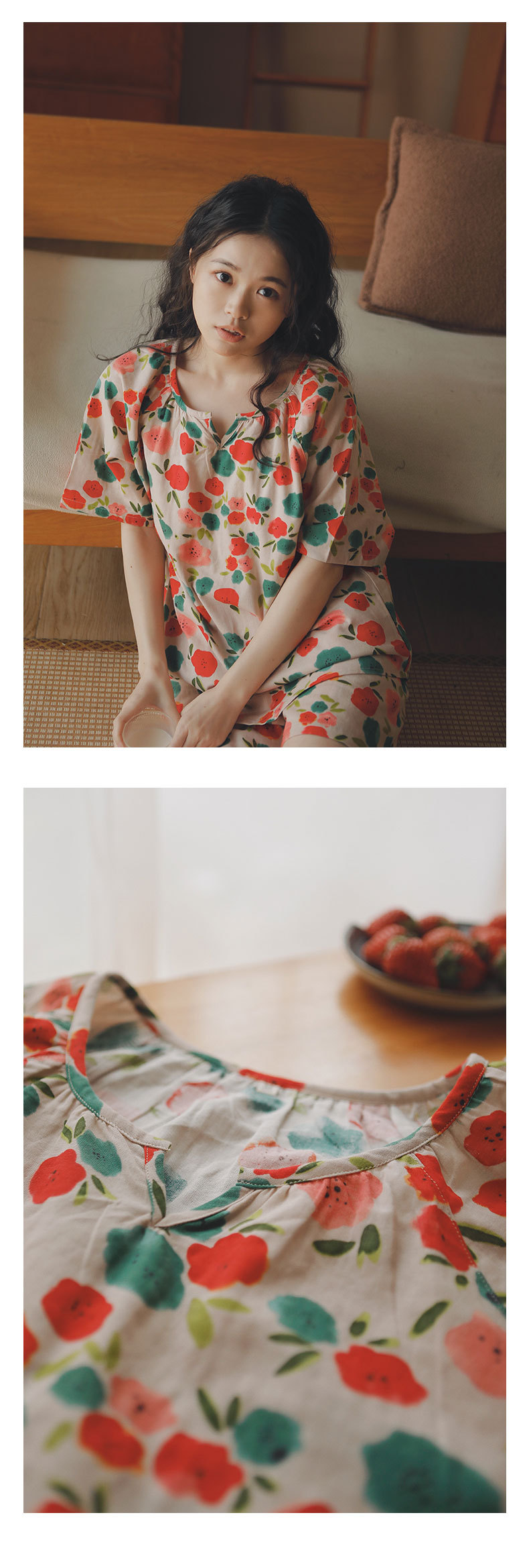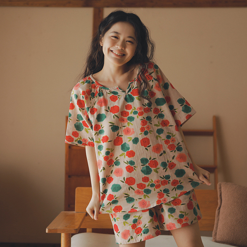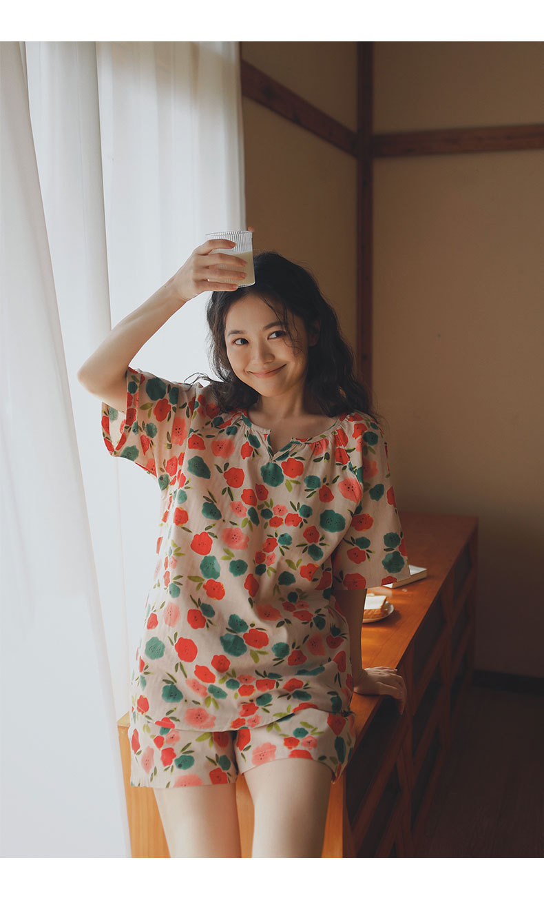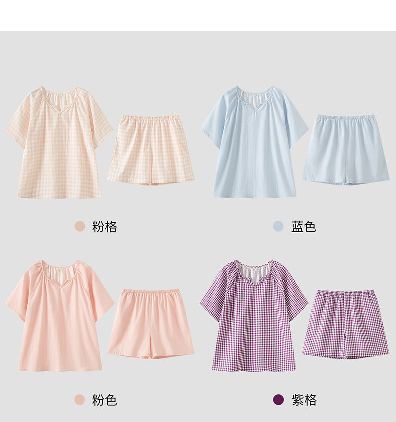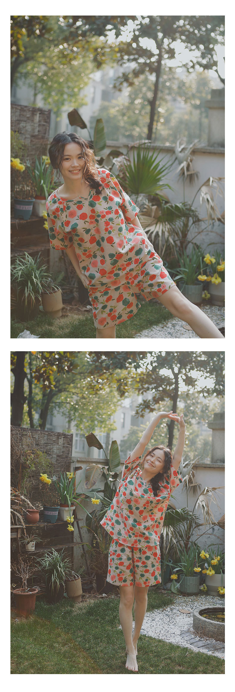 써니 63-풀오버 잠옷 여성면 짧은 소매 반바지 홈 의류 세트 면 거즈 착용 가능