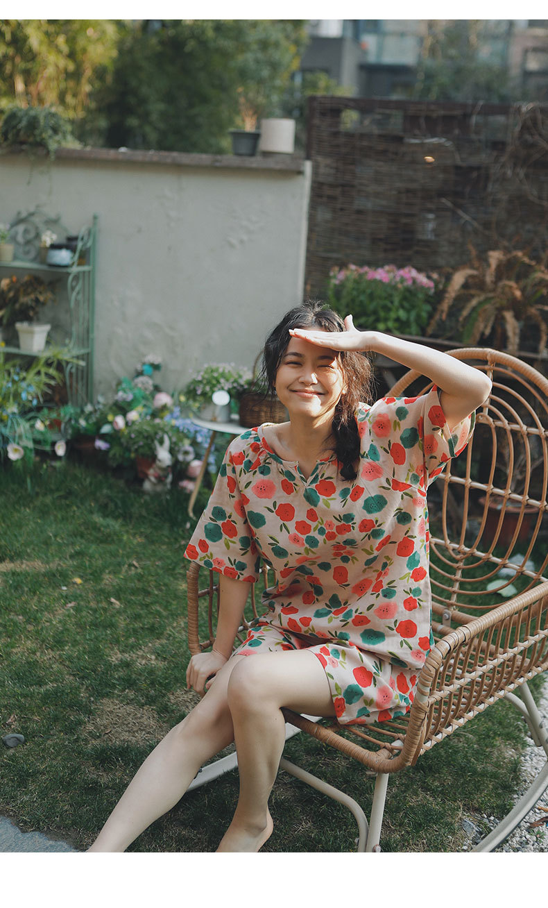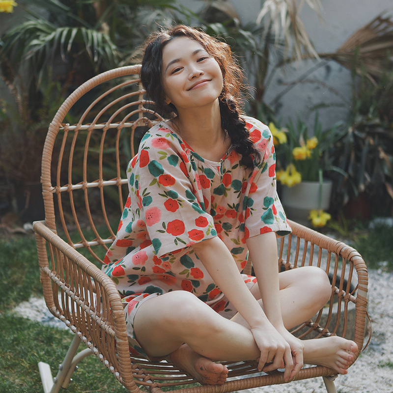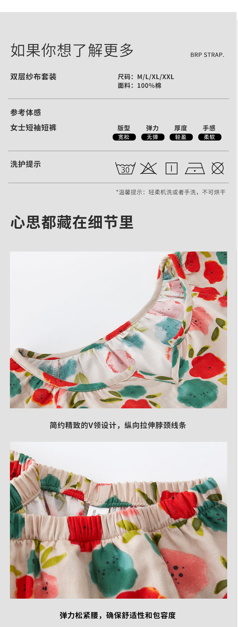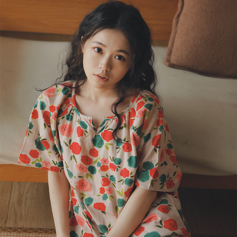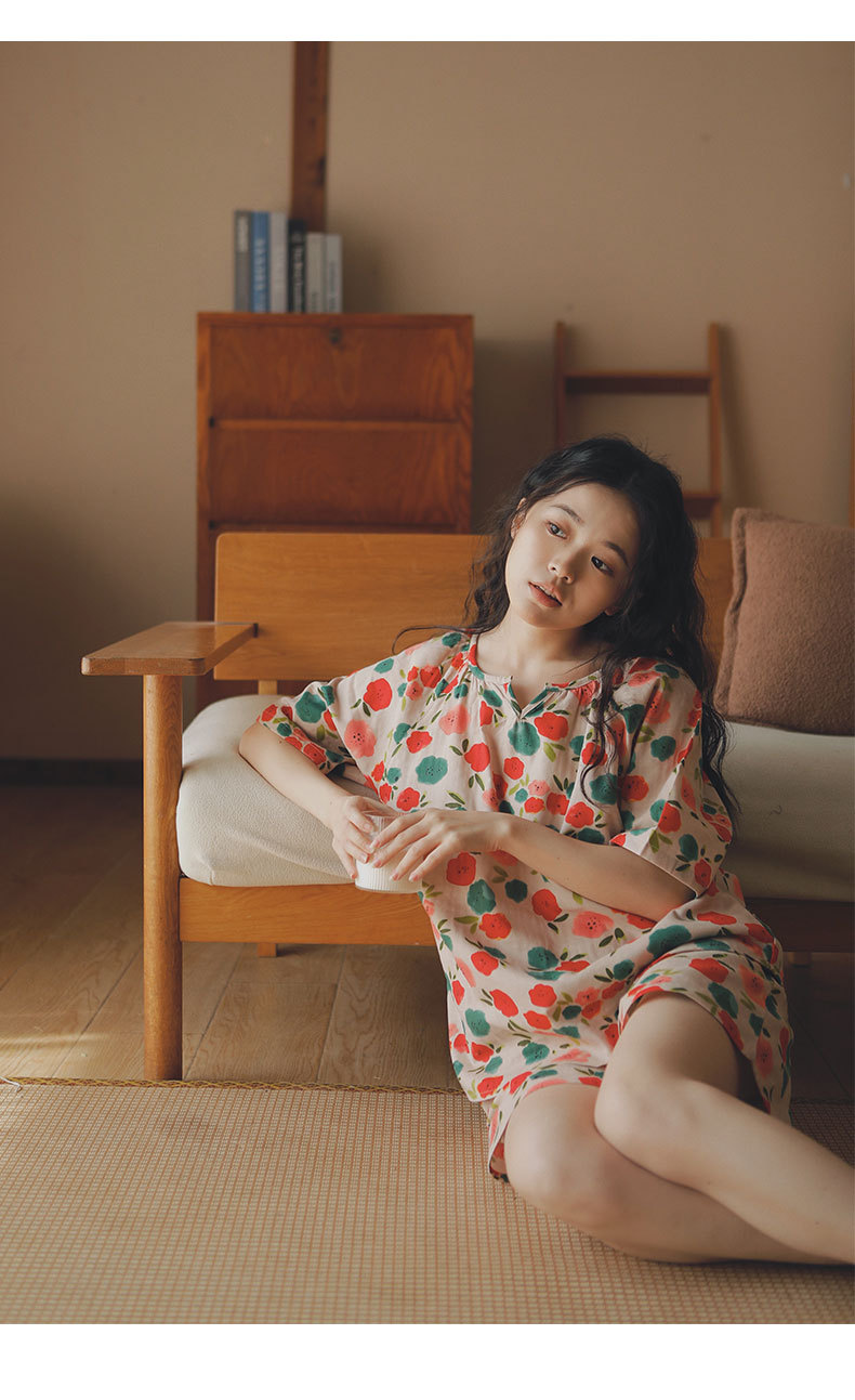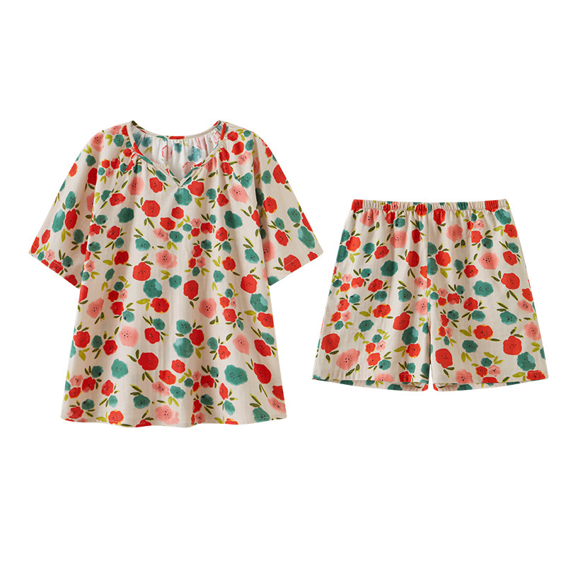 써니 63-풀오버 잠옷 여성면 짧은 소매 반바지 홈 의류 세트 면 거즈 착용 가능