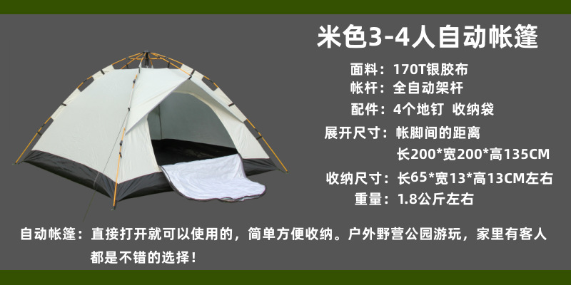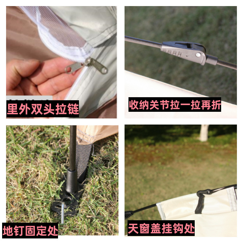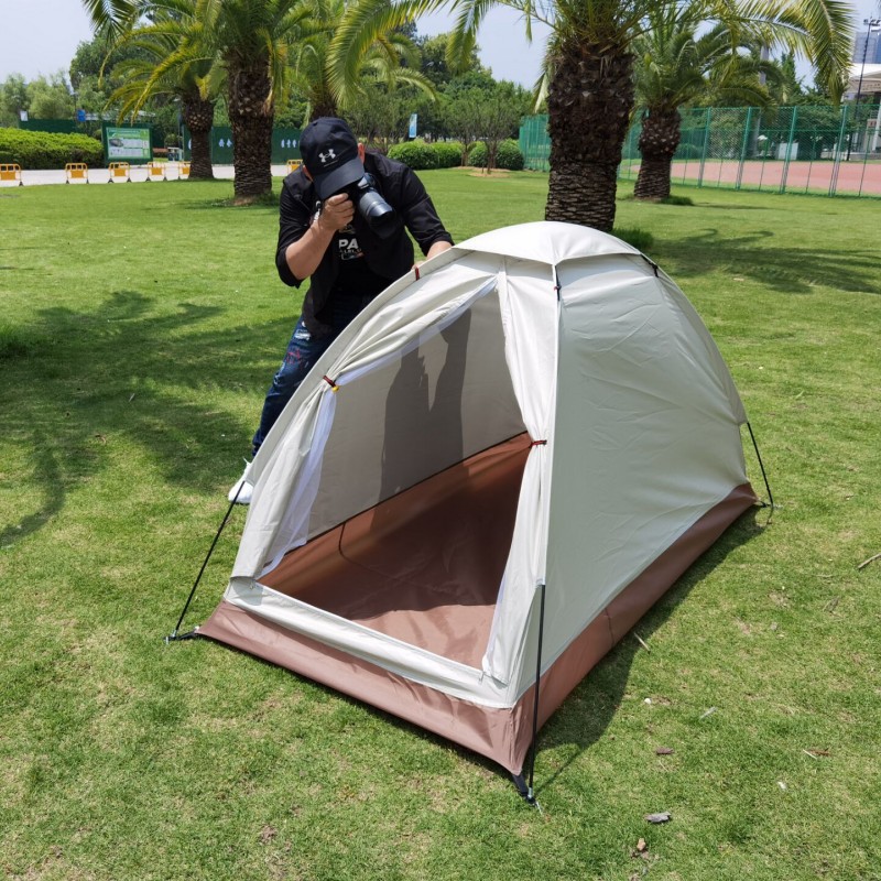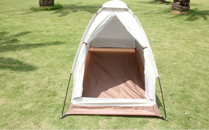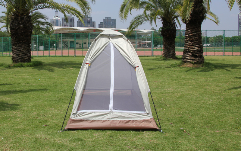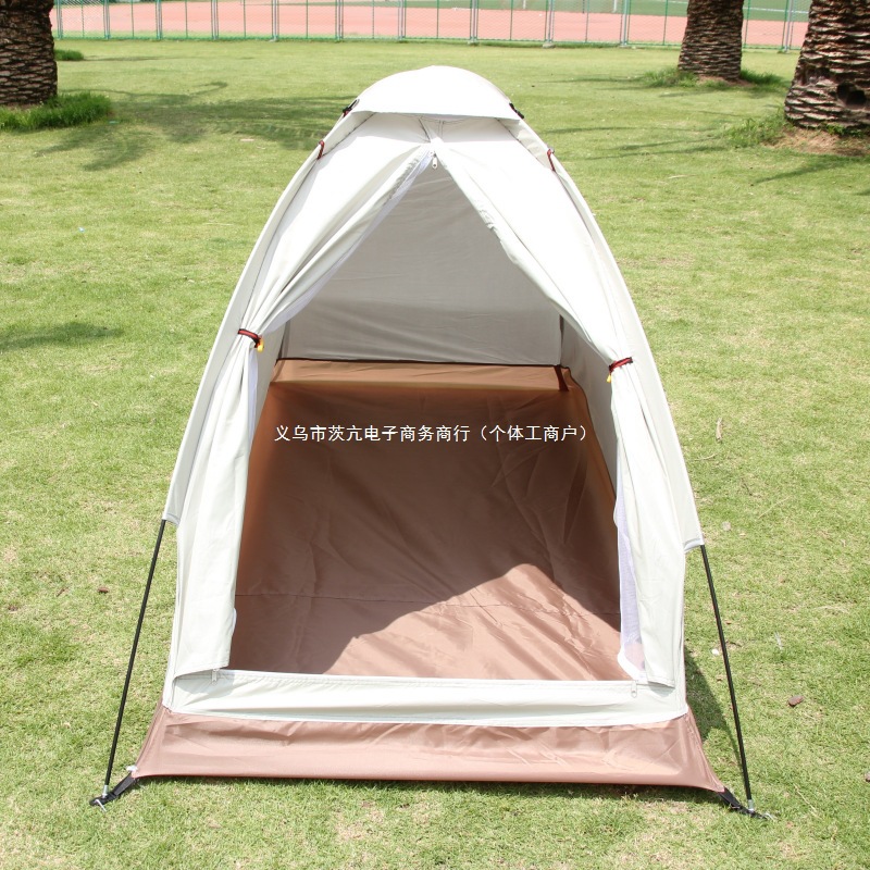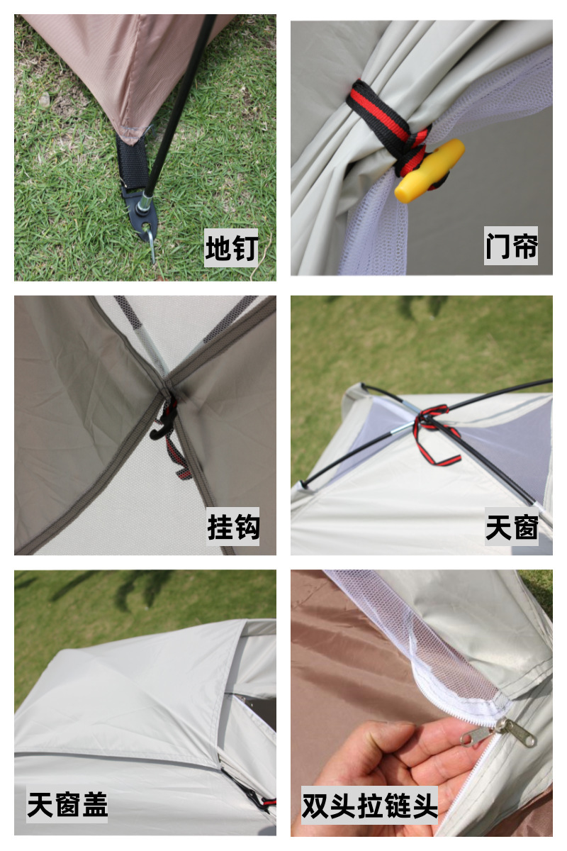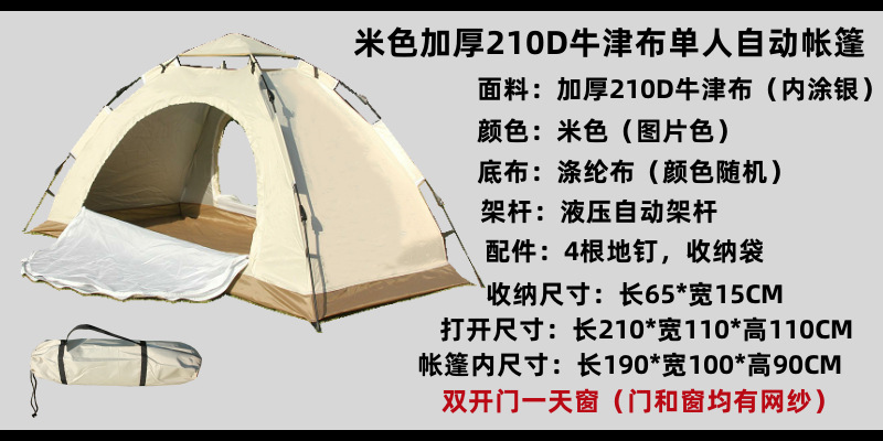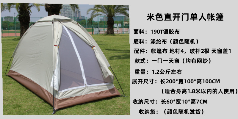 米色直开门手搭单人帐篷,门是双层的,一层网纱,一层布,我们还为亲准备了各自套装,需要的朋友选择好要的套装拍下来就有的。