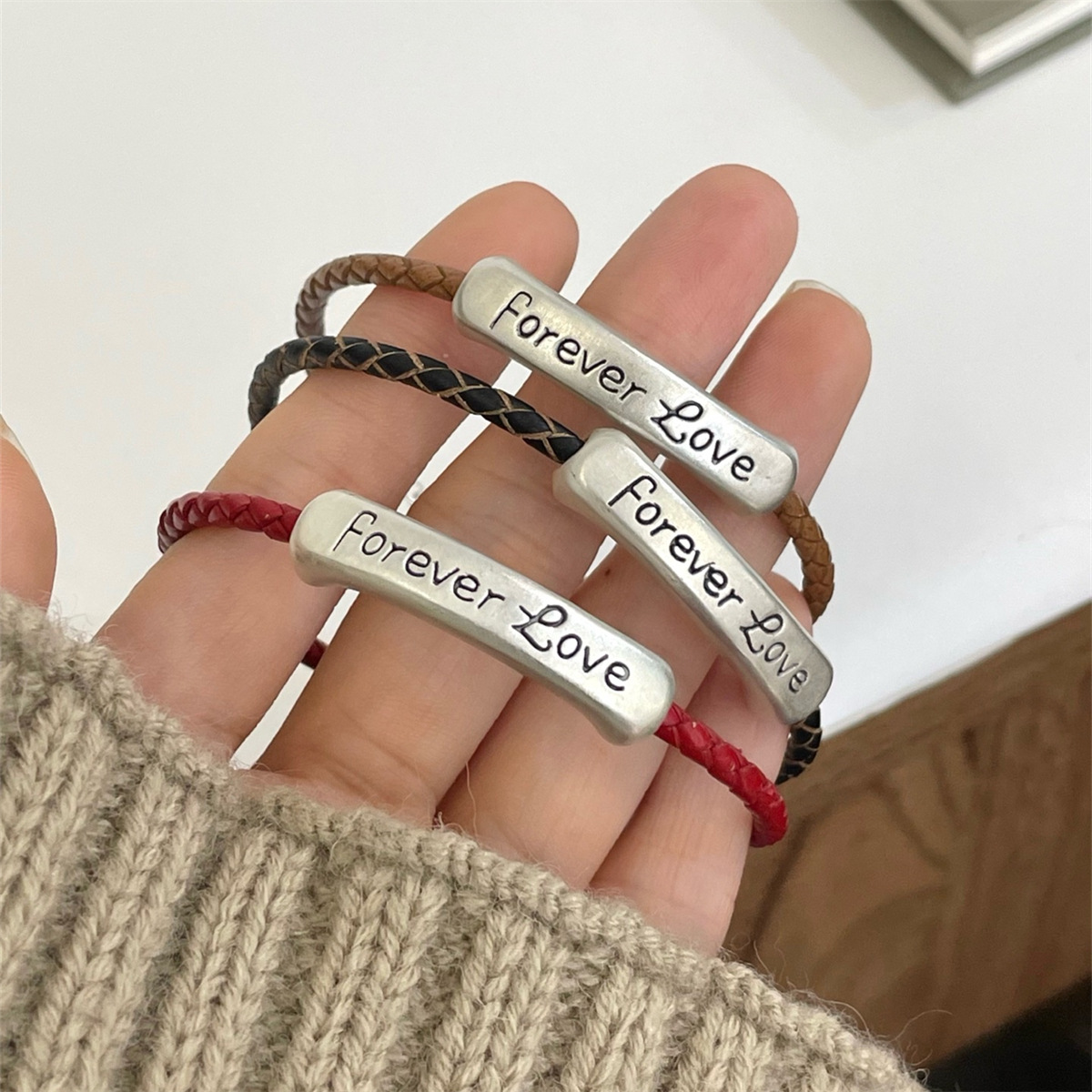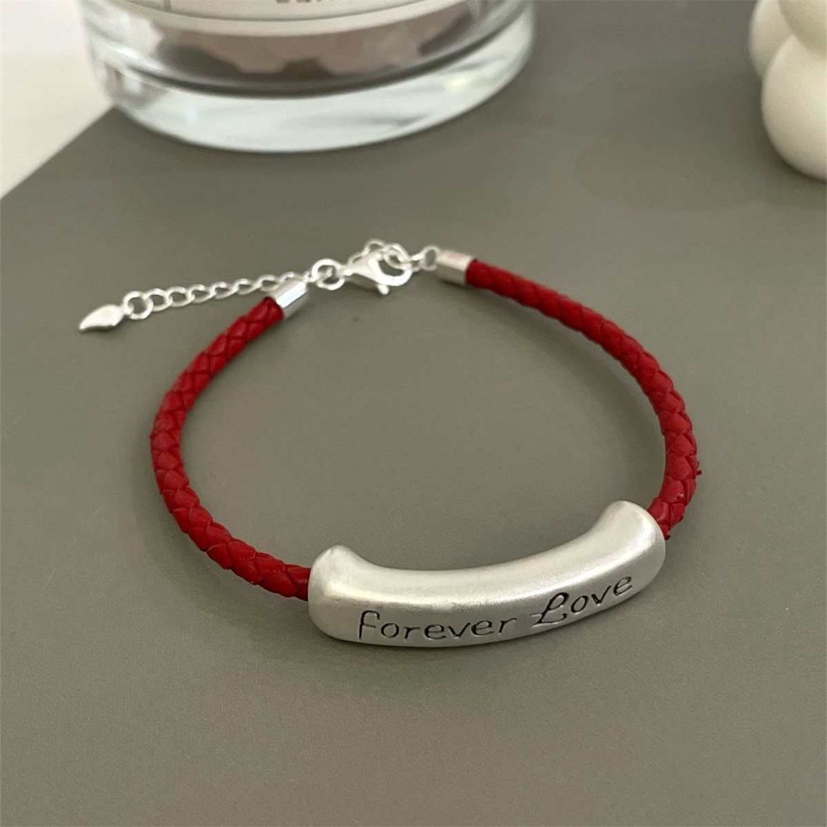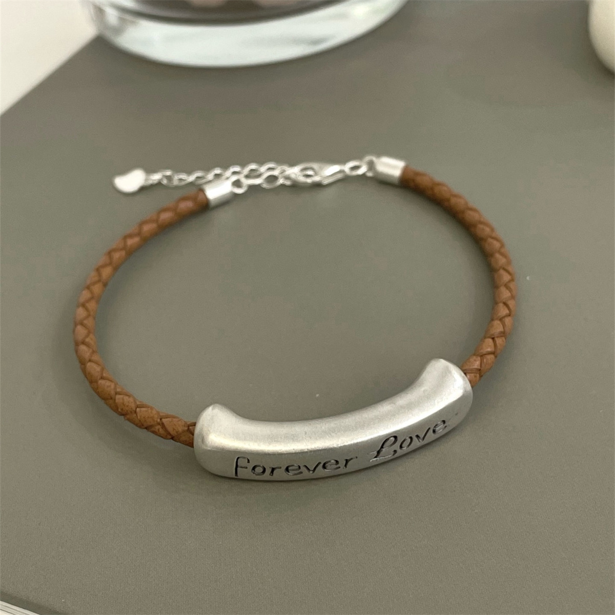 도매 S999 순수 실버 천연 1층 소가죽 커플 포에버 러브 팔찌 심플한 고급 다용도 아이템