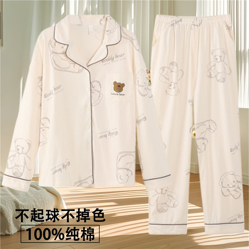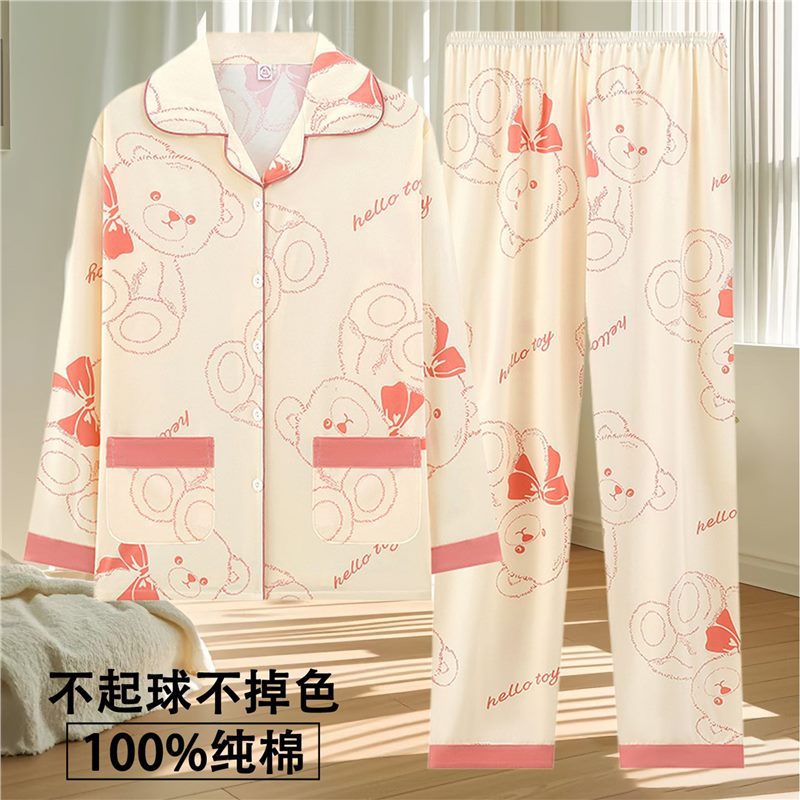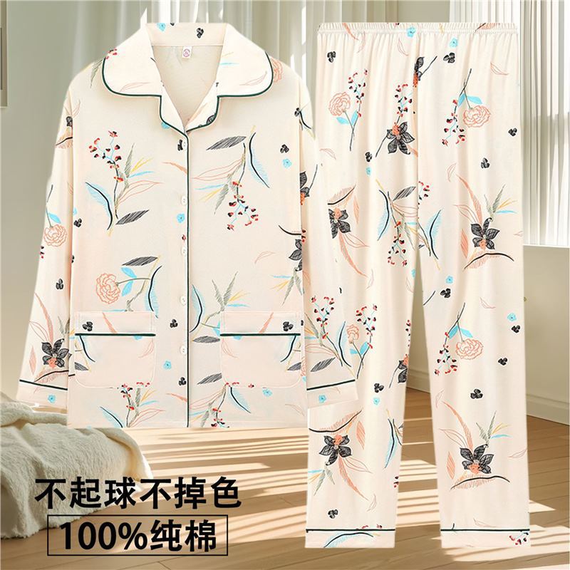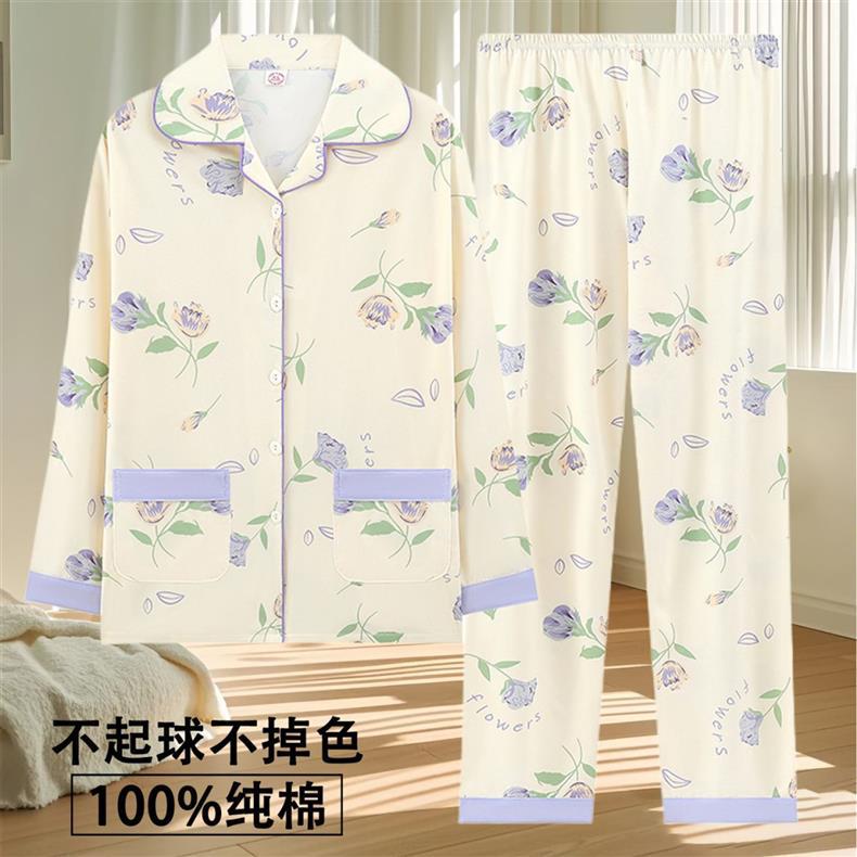고급 여성 순면 잠옷 봄, 가을 새로운 긴팔 가디건 가벼운 럭셔리 홈웨어 투피스 슈트