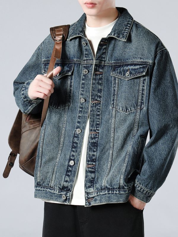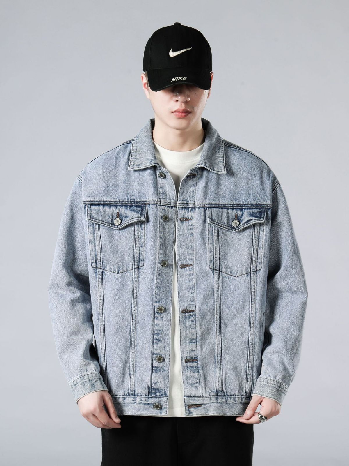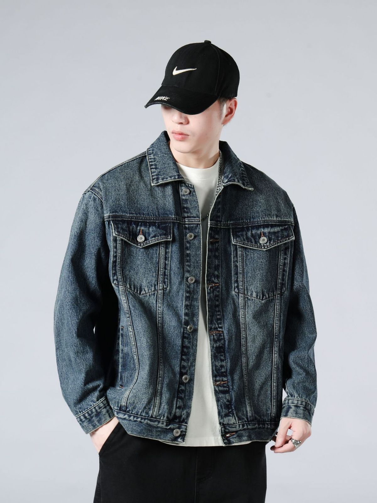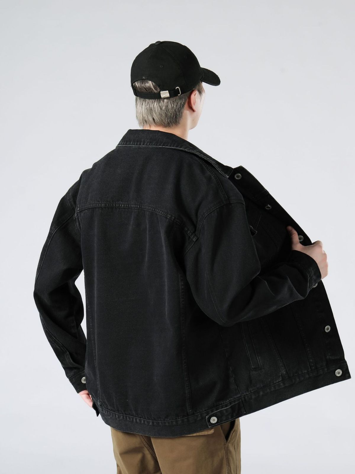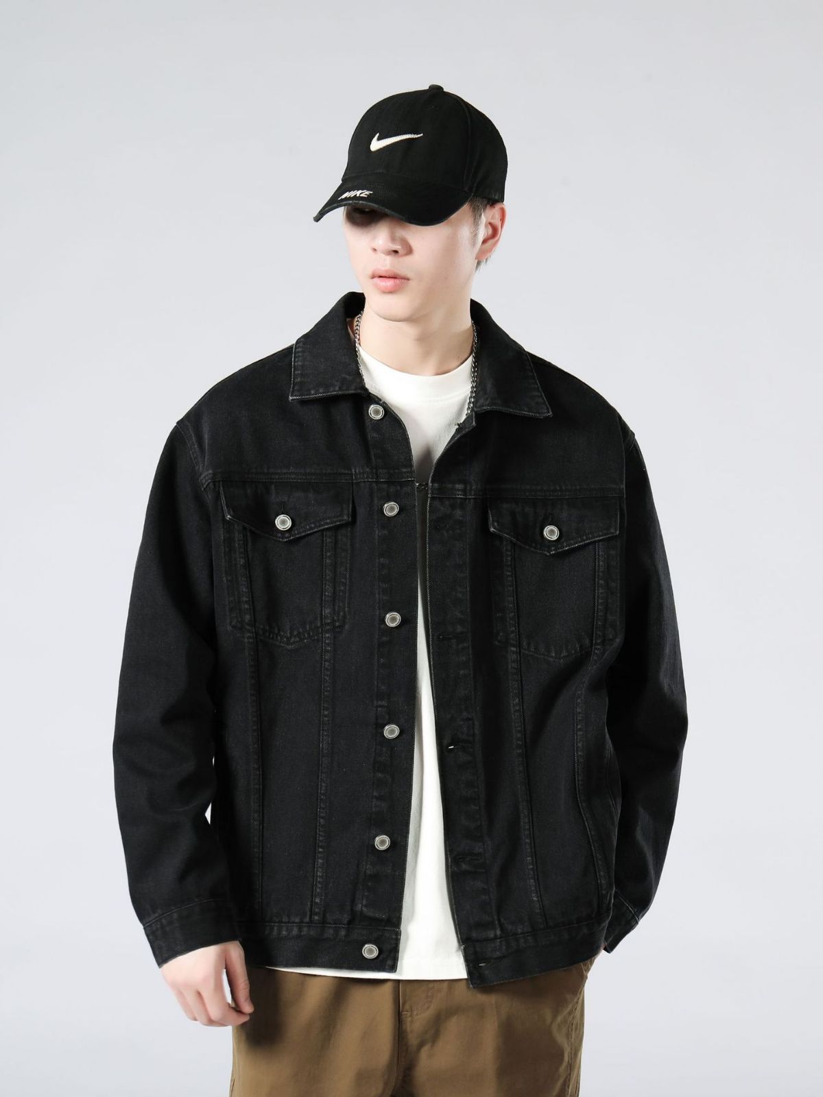 LKTM 남자 # 가을 블랙 데님 재킷 남자 한국 루스 패션 브랜드 레트로 올 매치 워크 탑