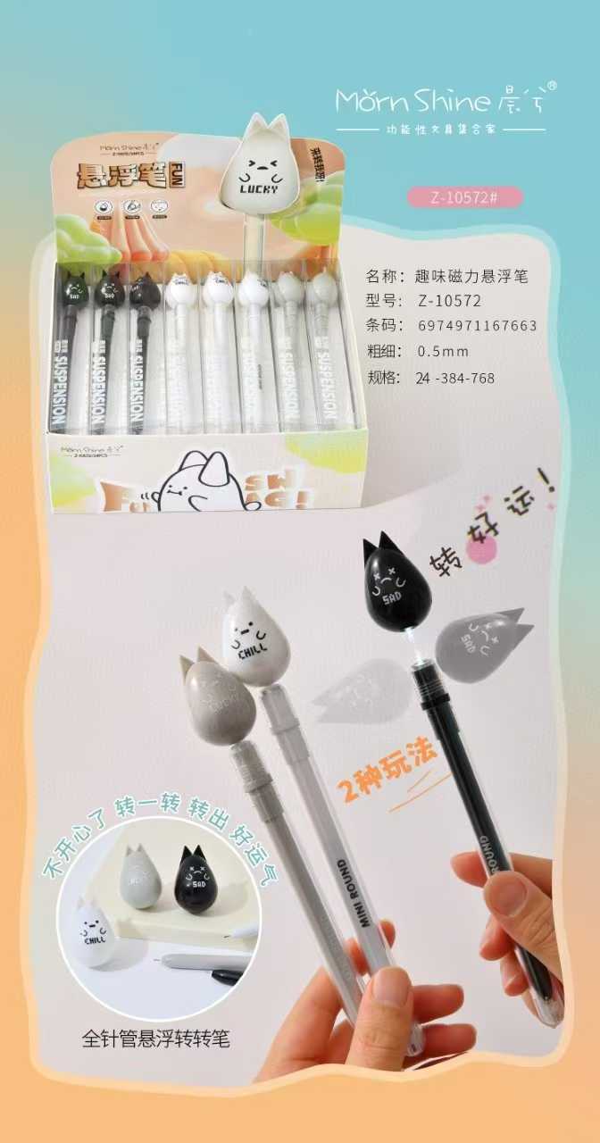 Chenxi 자기 부상 펜 치유 및 스트레스 감소 3 색 스타일 0.5mm 긴 펜 캡 젤 펜 학생 유니버설