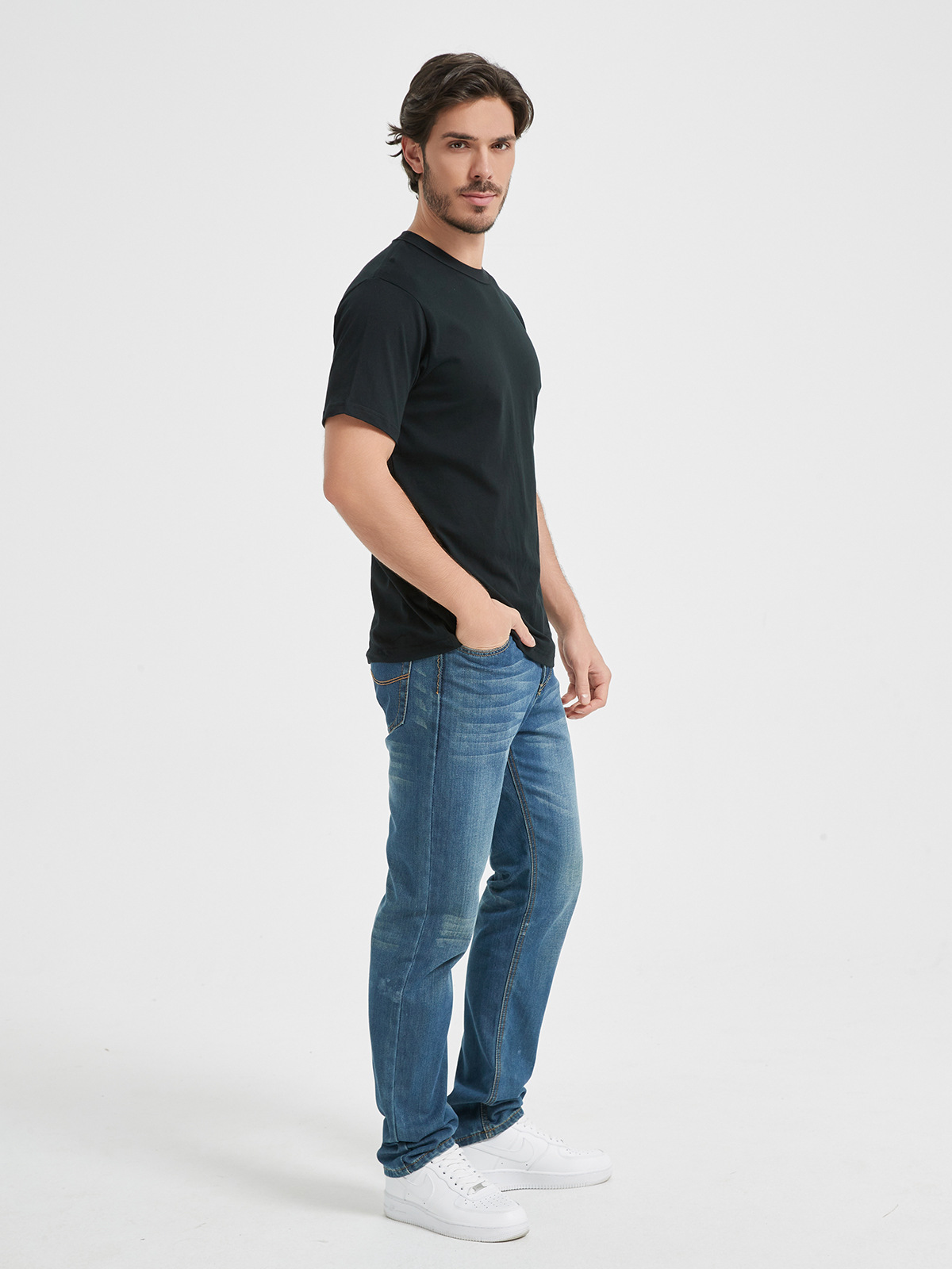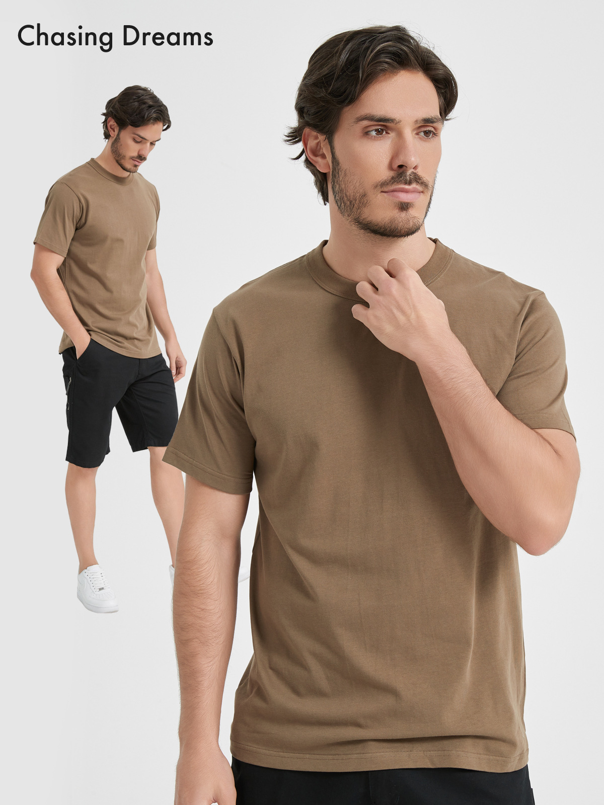 고급 삼바늘 신장면 헤비급 순면 반팔 티셔츠 솔리드 컬러 남성용 오른쪽 어깨 여름 바닥 셔츠 남성용 도매